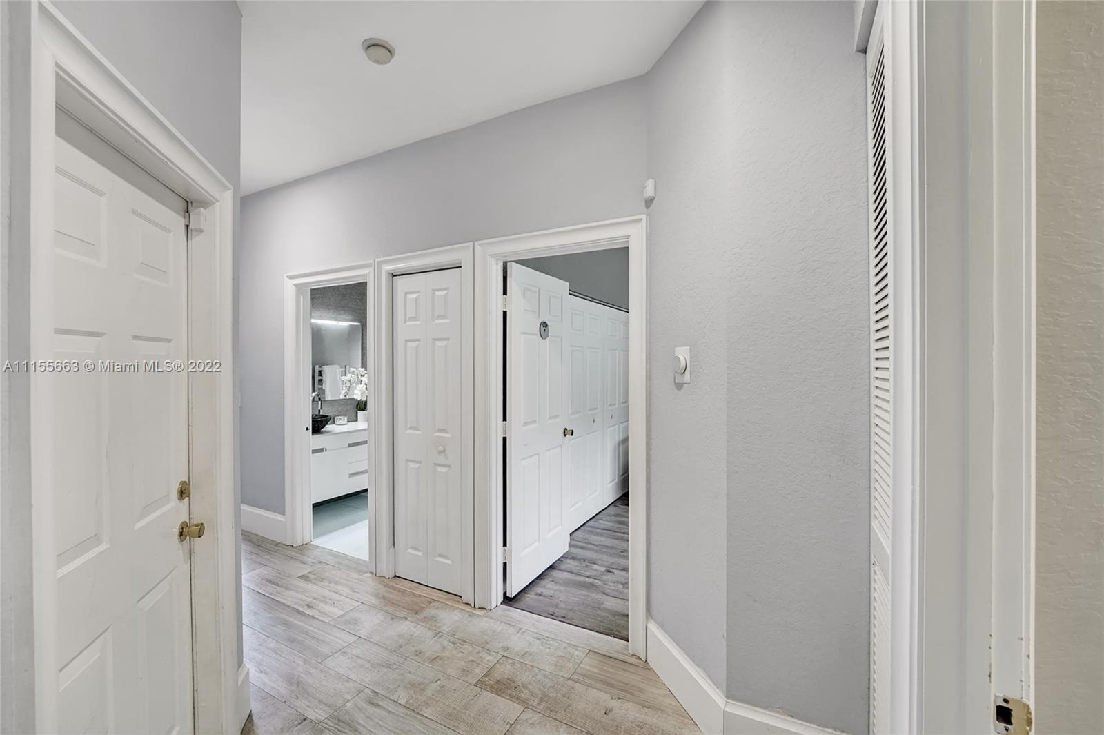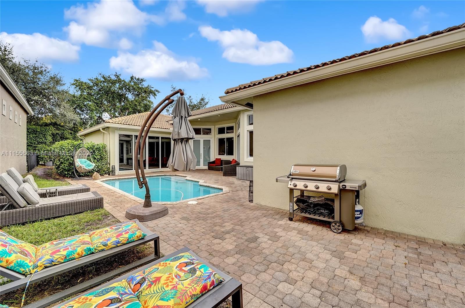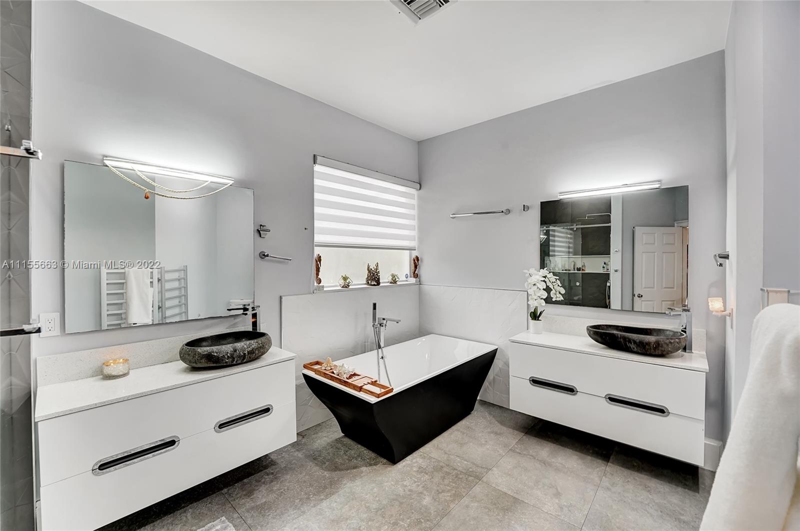 This luxuriously updated courtyard home features an open concept and decorator finishes throughout, perfectly blending natural light and modern luxury to add warmth, function and style. The primary suite is banked by sliding doors on both sides, maximizing indoor-outdoor living, and a spa style bath, complete with vessel sinks, a free standing tub and heated towel racks. The open chef's kitchen features marble countertops, custom cabinets, a Sub-Zero refrigerator and wine fridge. The 4th bedroom features barn doors and a full wall of storage -ideal as a bedroom or flex space. Porcelain wood plank floors throughout connect the split floor plan. A courtyard sits in the center of the home with a sparkling pool and private garden. Located in a prime neighborhood with resort style amenities.