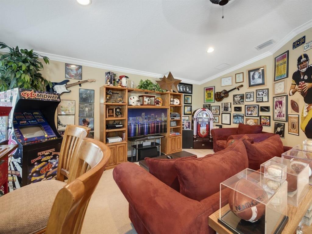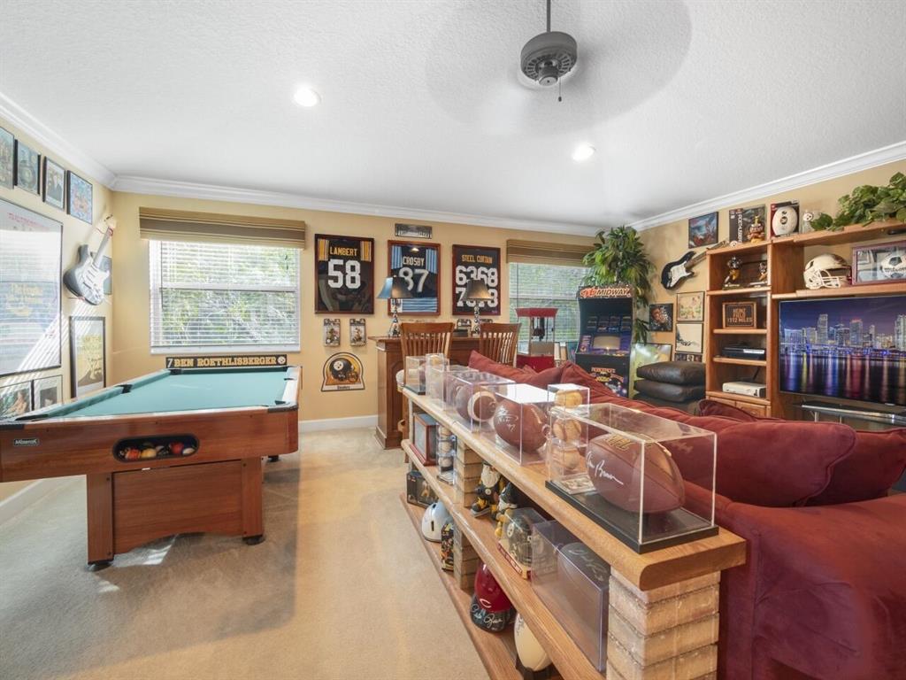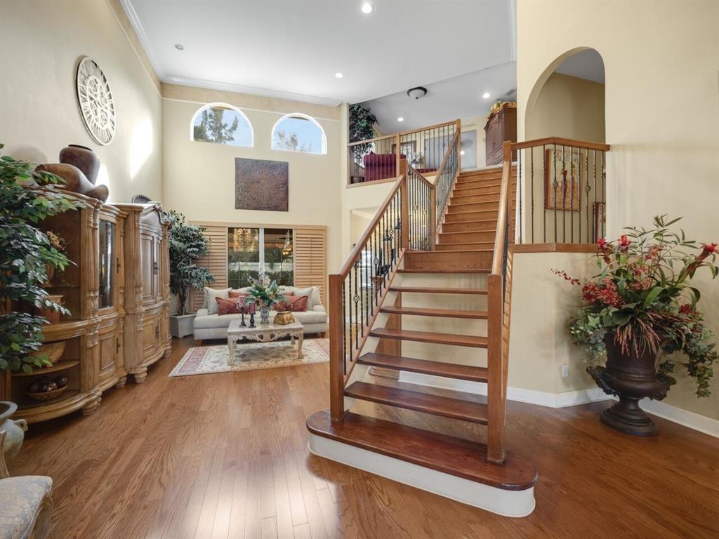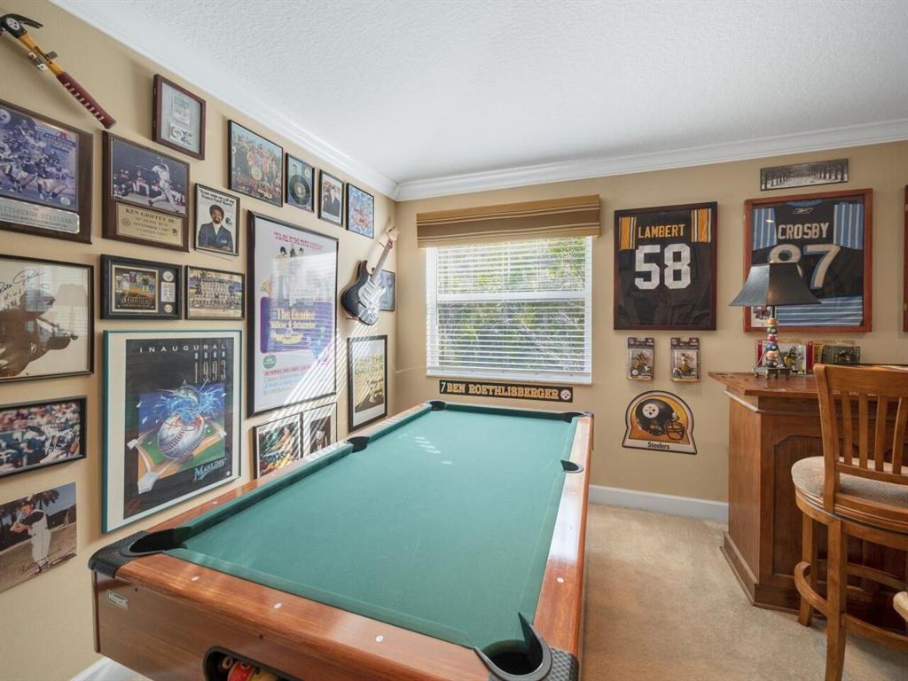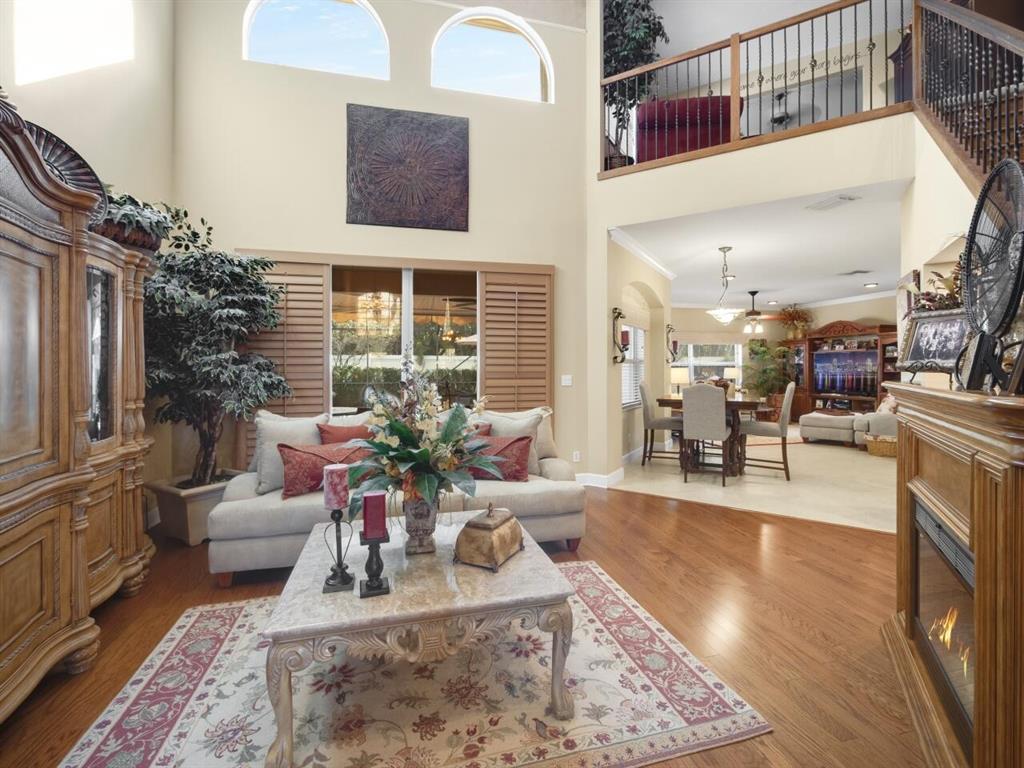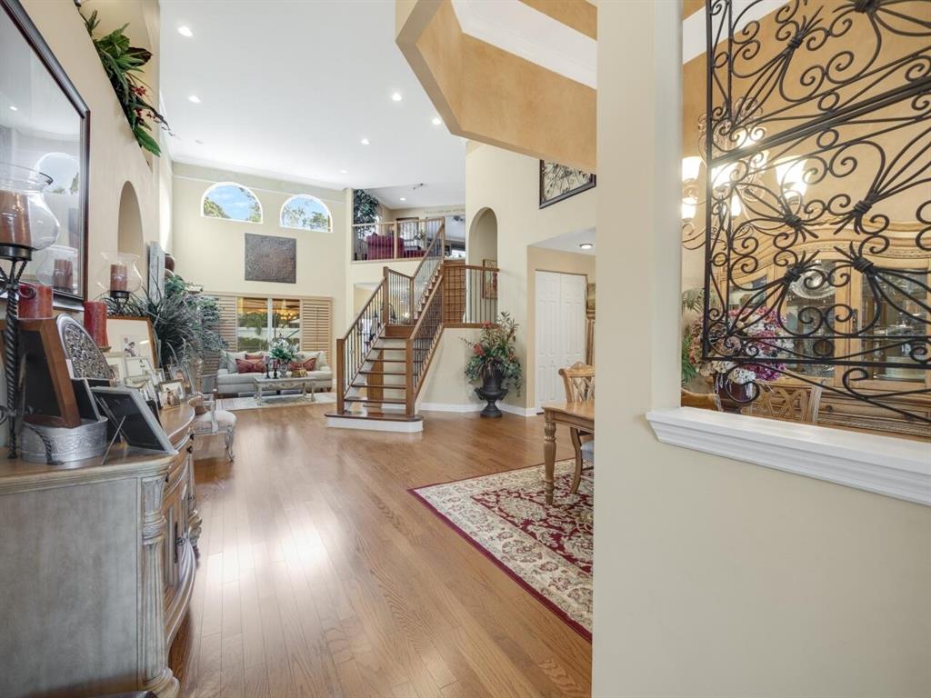 Look no further, this home has it all! Tucked away in the back of the private, gated community, of Stonehaven Estates with a preserve in its backyard and a golf course beyond that, this lovingly maintained 5/3 pool home has a WOW FACTOR that is second to none. Walk up to the cozy porch to find beyond the front door a grand wrought iron and wood staircase that anchors the volume ceilings of the entryway. Complete with a wet bar, double ovens and open concept kitchen, this home was made for entertaining. You'll be pleasantly surprised to find a rarely seen downstairs master suite and guestroom with custom-built Murphy bed. In addition the home boasts plantation shutters, smart home features and accordion storm shutters on the second floor. With a large loft space that could easily be