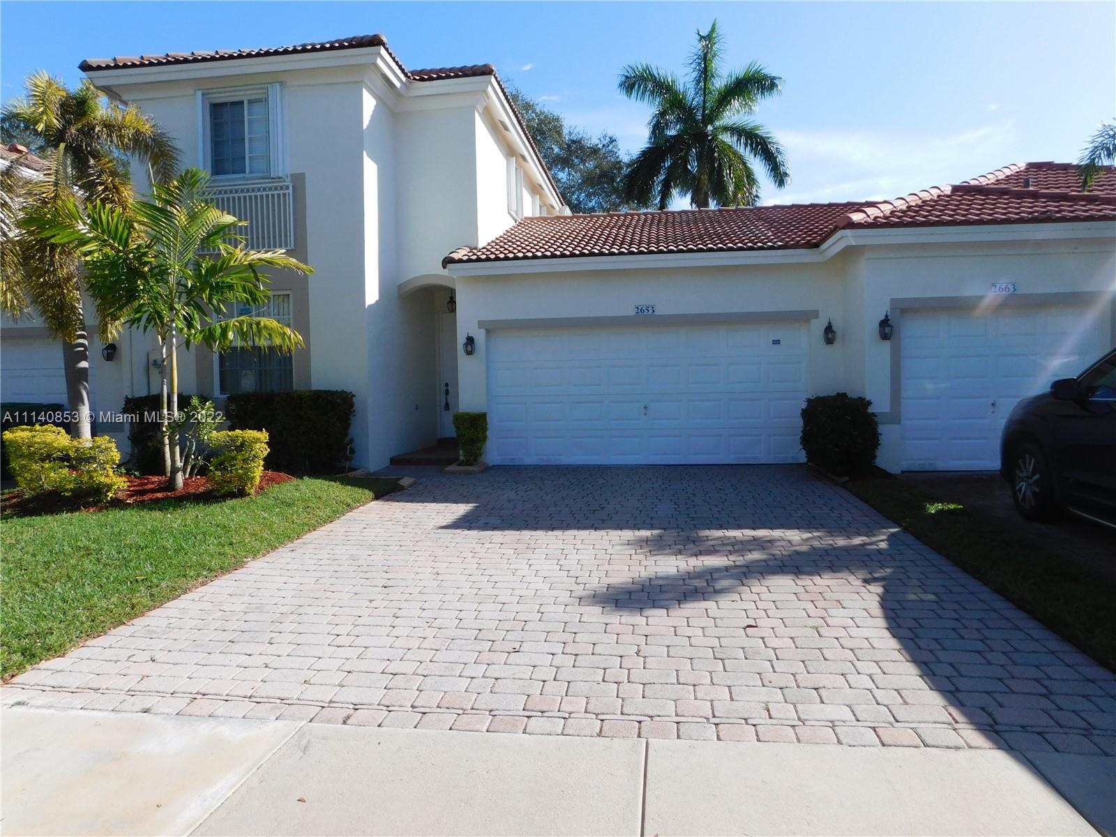 LARGE 3BED / 3 (FULL) BATH / 2 CAR GARAGE TOWNHOME IN DESIRABLE SUNSETLAKES / GRAND KEY COMMUNITY. THIS POPULAR MONTEGO MODEL FEATURES: 1 BEDROOM ON GROUND FLOOR, 2-CAR PAVER DRIVEWAY, NEW PAINT, UPGRADED KITCHEN CABINETS & COUNTERS, BRAND NEW STOVE AND DISWASHER, NEWER A/C, WATER-HEATER, GARAGE DOOR OPENER, IMPACT WINDOWS, OPEN SEMI-PRIVATE BACK PATIO. WELL-KEPT GATED COMMUNITY WITH CLUBHOUSE, POOL, TENNIS, FITNESS AND MORE. WILL NOT LAST!