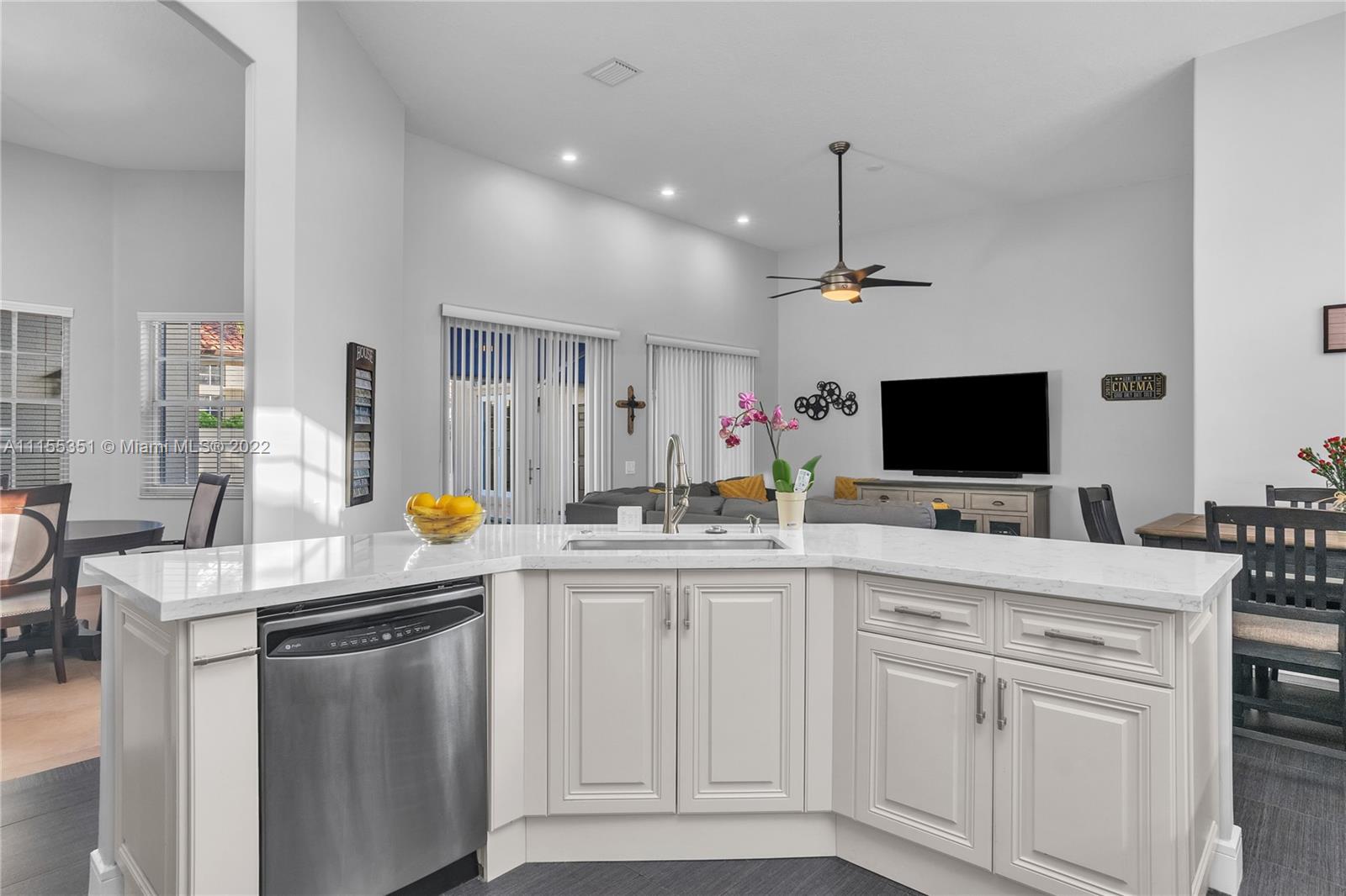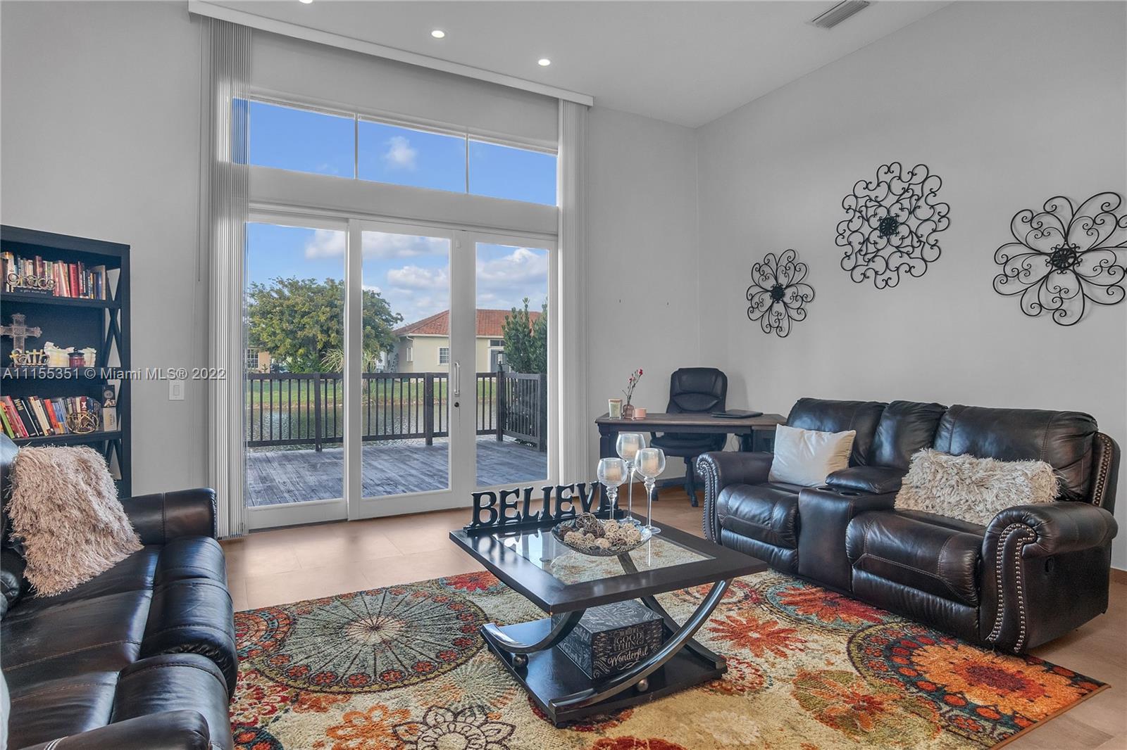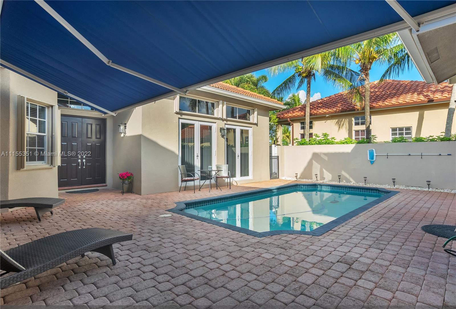 Enter this remarkable 3/2 home through a welcoming courtyard with a saltwater pool & retractable awning to shade you. The separate & completely upgraded 1/1 in-law suite is to your right. Step through the front door to a beautiful chandelier & living area with a wonderful view of your wooden deck & the canal out back. In a safe, gated community, this home boasts a family area, separate dining area, nicely upgraded kitchen & bathrooms, high ceilings with fans throughout, impact doors and shuttered windows. The master has shower & bath, dual sinks & a perfect view of the courtyard & pool. 2 garage spaces are complemented with a curved driveway that accommodates at least 8 more for that family get together! Spacious laundry with basin. Near to 175, shopping, restaurants & great schools.