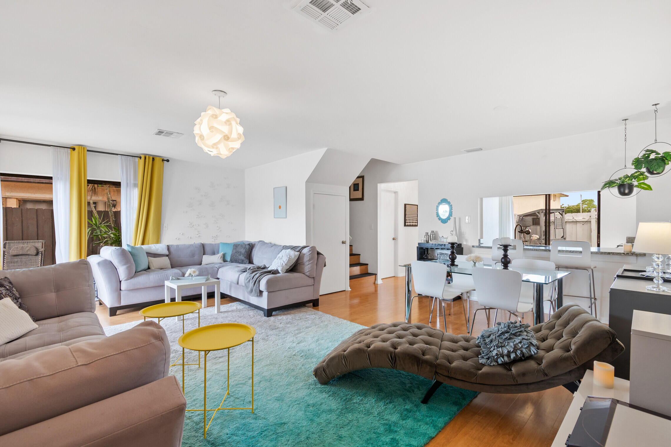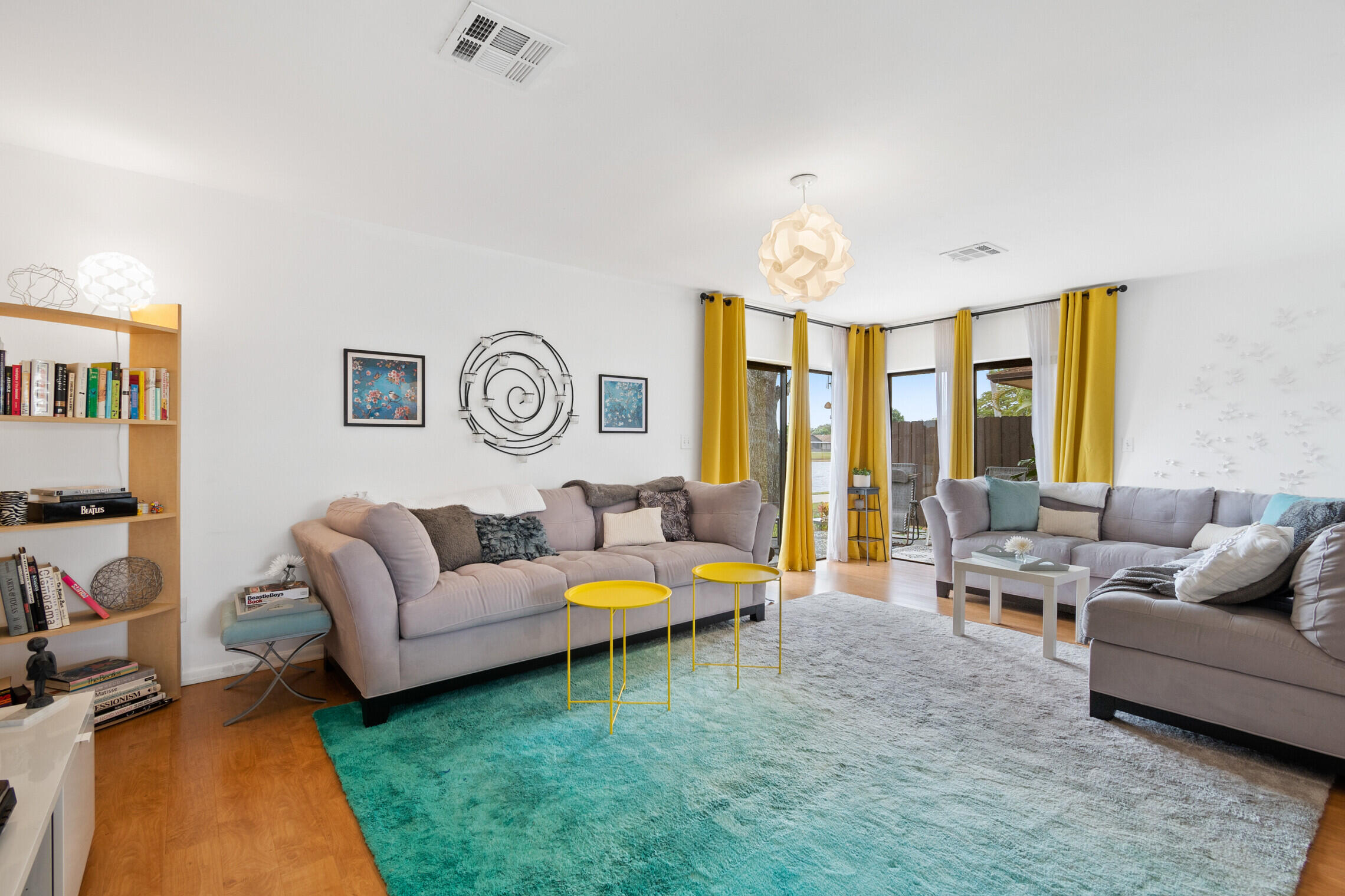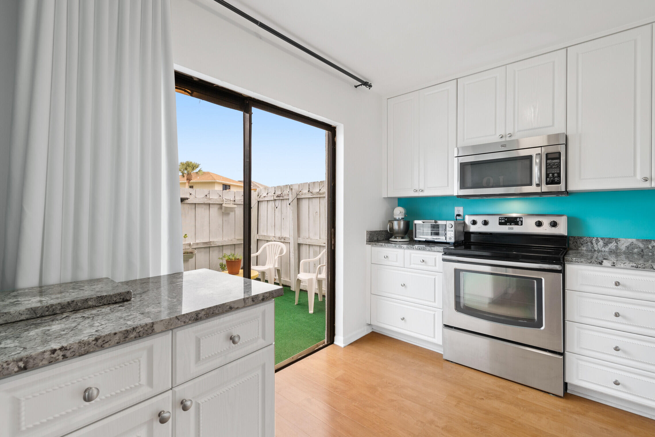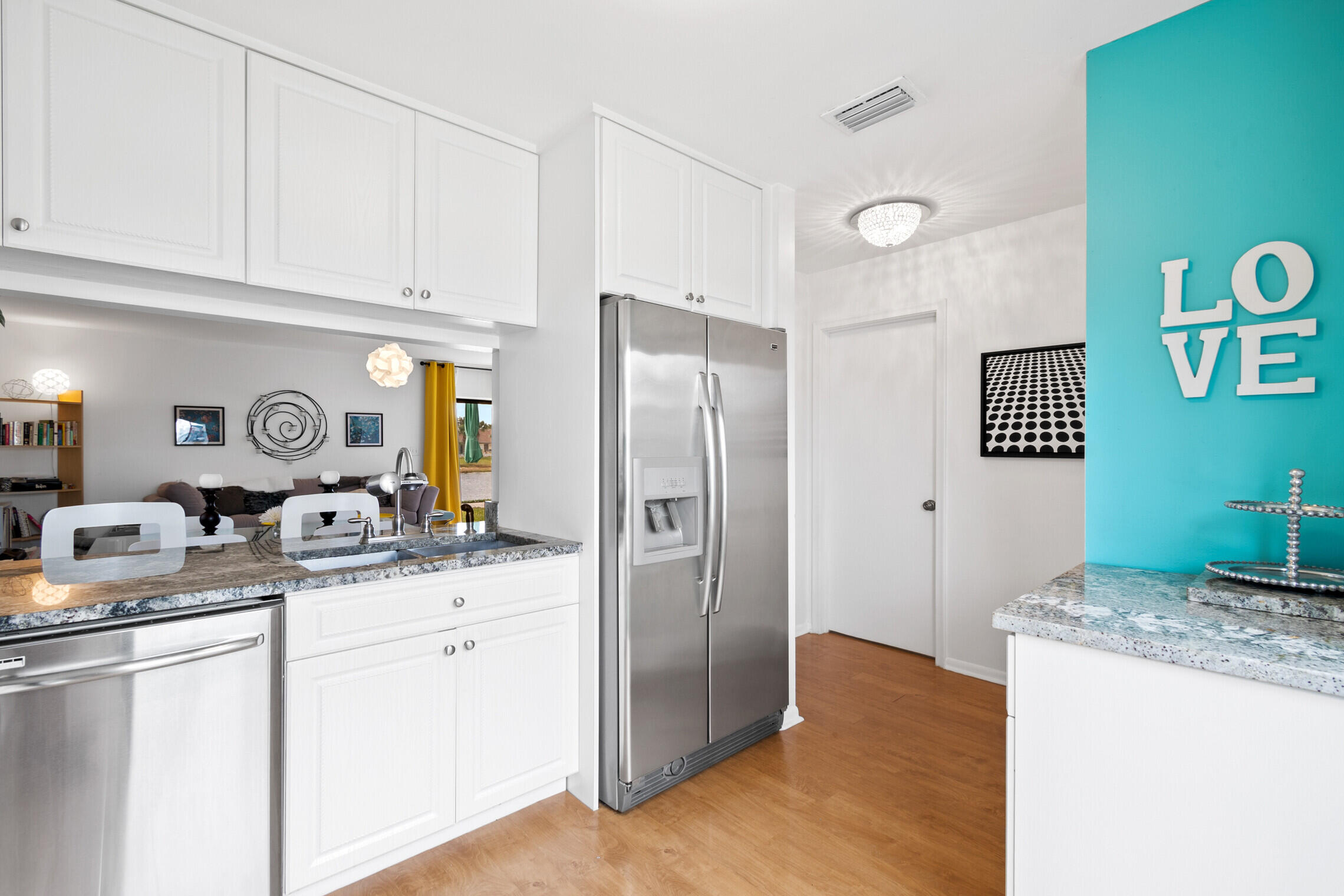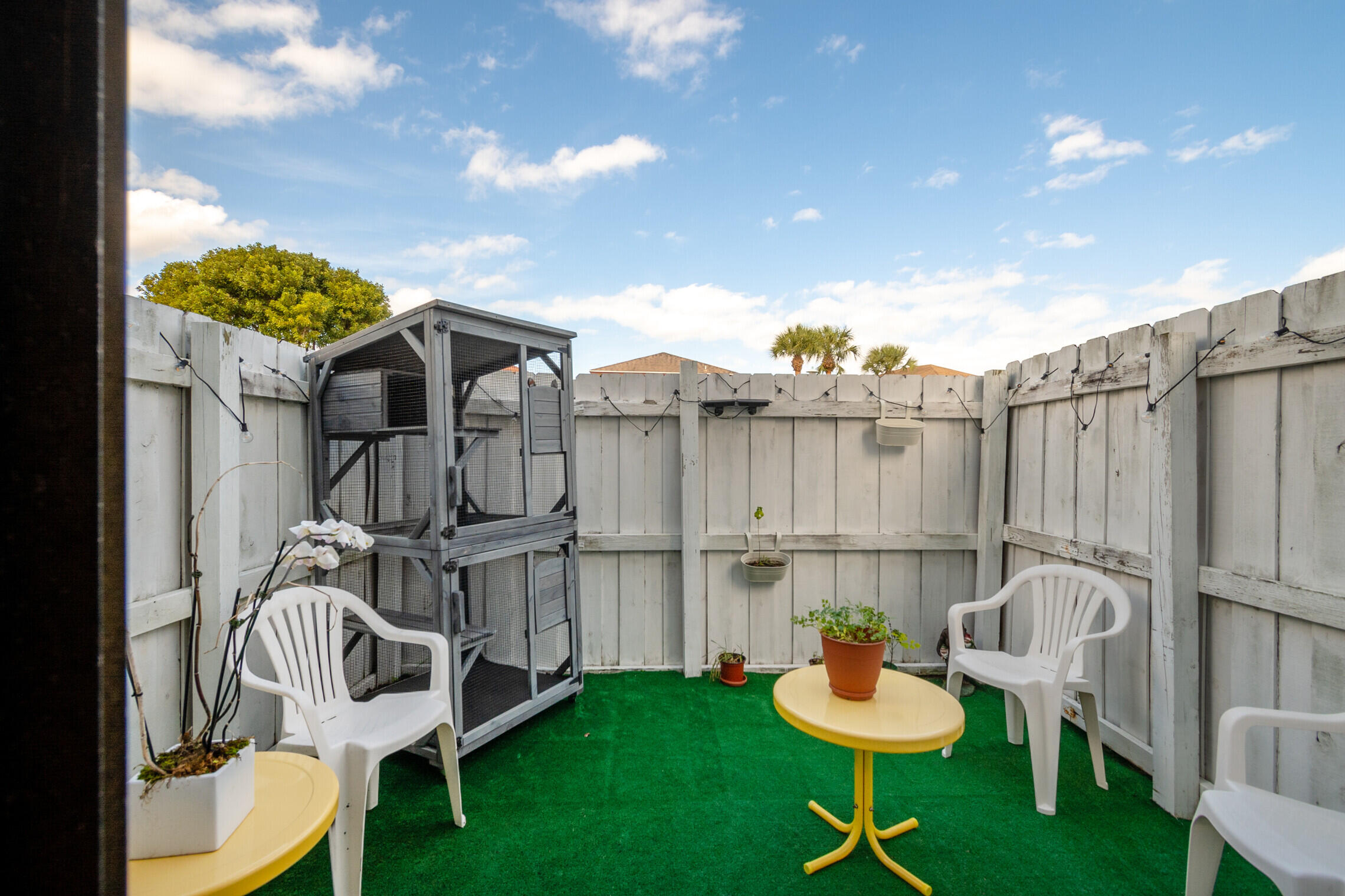 Move right into this waterfront townhome offering private courtyard, multiple upgrades & plenty of storage! Renovated home boasts a remodeled Kitchen w/ White cabinets, Granite Counters, energy efficient SS appliances & a mobile island. Matching White cabinets also compliment all bathrooms including downstairs powder room. Upstairs features 2 Primary Bedrooms w/walk in closets, a Juliet balcony & 2 full bathrooms. Laminate flooring thru out. Exterior offers a nice sitting area w/ serene views of a the community lake, additional storage & privacy gate. Panel shutters. Front Loading washer/dryer. Furnishings are negotiable. 2019 AC. Quaint community is well kept with amenities including walking trails, pool, club house, dog park & roaming security. SHOWINGS ONLY 2/19 1pm-5pm w/Realtor.