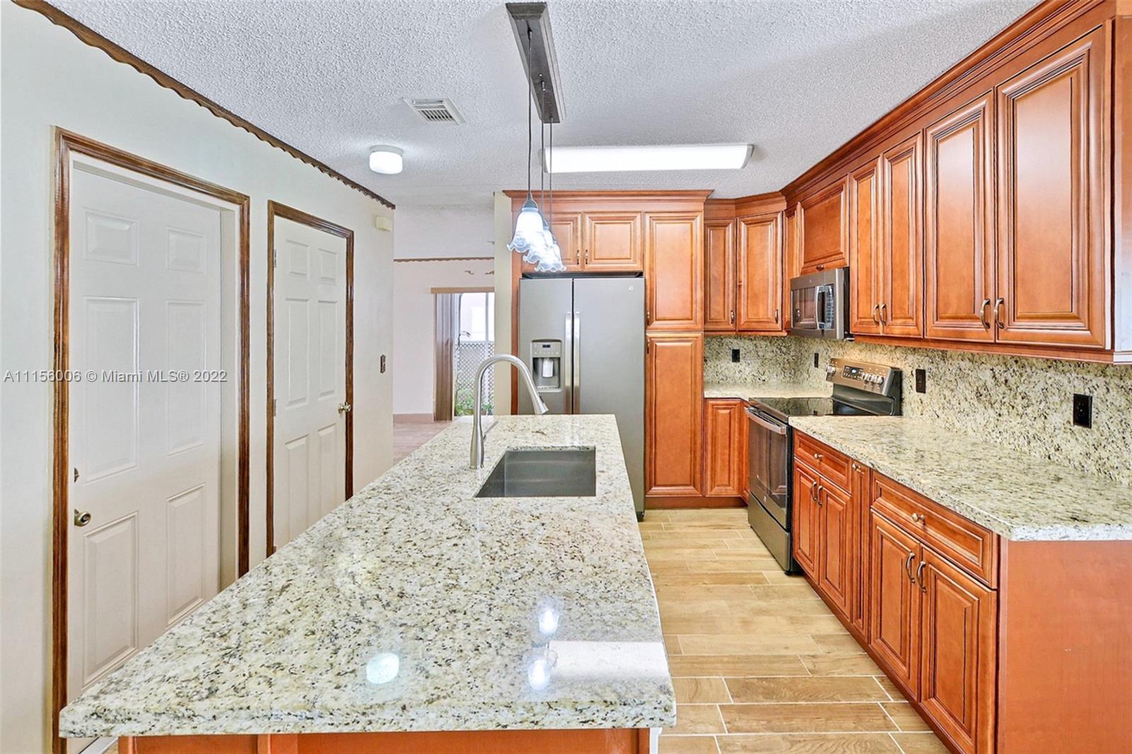 BEAUTIFUL 4 BED 2.5 BATH HOME ON A PREMIUM LAKEFRONT LOT IN DESIRABLE TANGLEWOOD COMMUNITY OF PEMBROKE PINES. AN ELEGANT DOUBLE DOOR ENTRY OPENS INTO A WELCOMING LIVING ROOM WITH MASSIVE WINDOWS & SOARING CEILINGS. A STUNNING IRON STAIR RAILING MAKES A LOVELY FOCAL POINT. FULLY REMODELED KITCHEN OFFERS CHERRY STAINED CABINETRY, STAINLESS STEEL APPLIANCES, AND GRANITE COUNTERTOPS. OFF THE DINNING ROOM IS A BRIGHT AND AIRY FLORIDA ROOM W WITH SERENE VIEWS OF THE GLISTENING LAKE. ALL BEDROOMS ARE UPSTAIRS INCLUDING THE SPACIOUS PRIMARY SUITE FEATURING A RENOVATED BATHROOM WITH GORGEOUS VANITY AND ENCLOSED GLASS SHOWER. AN OVERSIZED FENCED BACKYARD HAS DIRECT LAKE ACCESS & PLENTY OF SPACE FOR A POOL. DEDICATED LAUNDRY SPACE AND TWO CAR GARAGE.