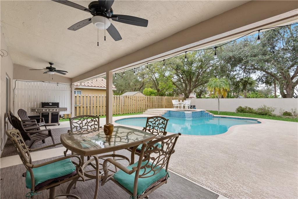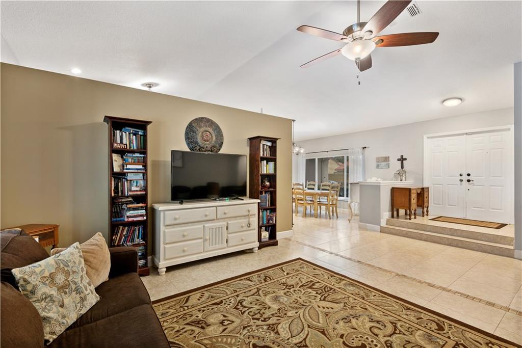 Welcome to this beautiful and immaculate condition 4-bedroom 2.5 bath home nestled on a 1/4-acre lot. Elegant and bright floor plan with vaulted ceilings has neutral tile throughout. Double door entrance to foyer and formal living & dining rooms. Tastefully upgraded kitchen with an island, granite countertop and stainless-steel appliances. Spacious primary suite. Impact windows. Cozy family room. Amazing private covered patio and pool area, just perfect for your enjoyment and entertainment. Great location, near shopping, dining and highways.