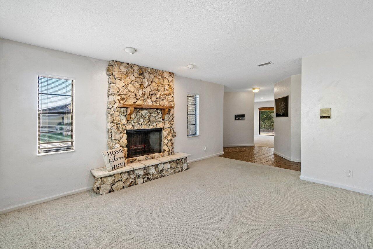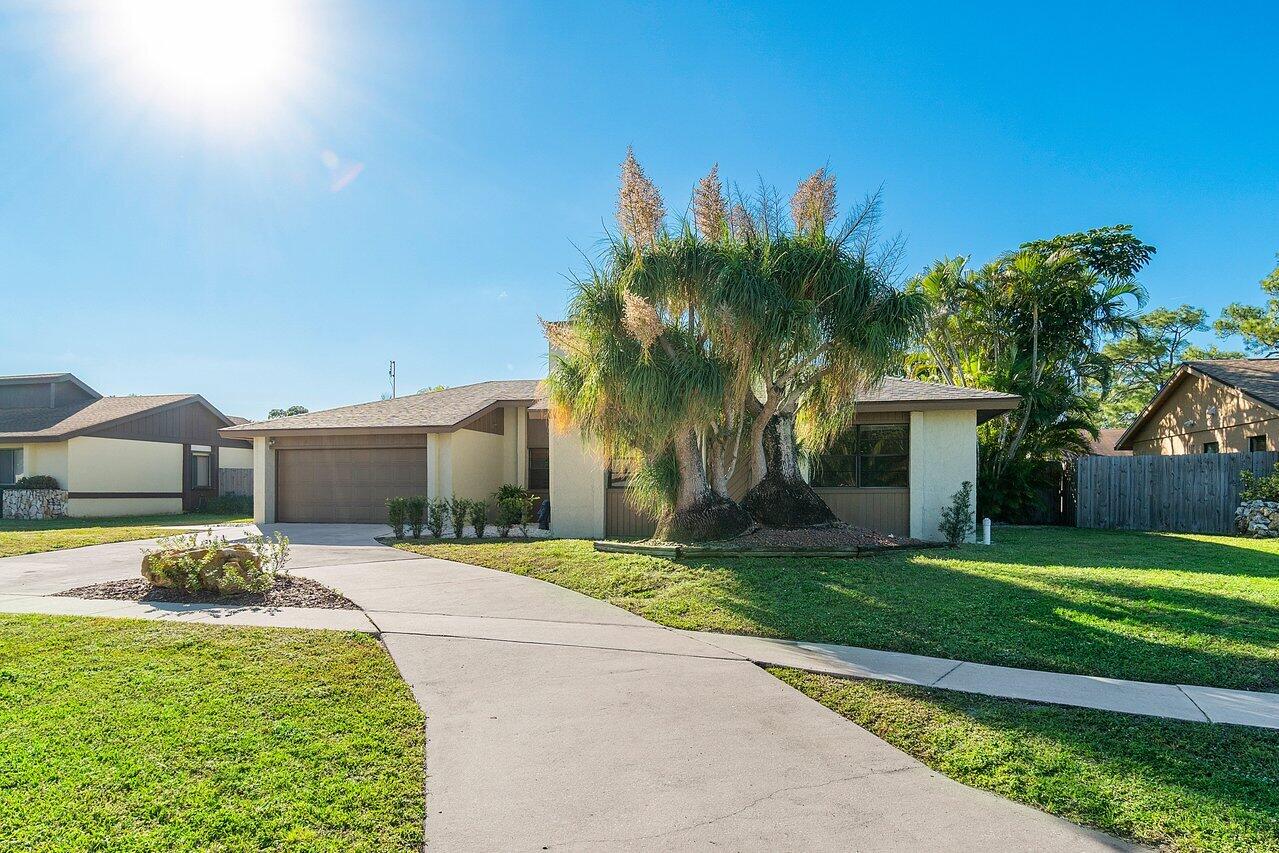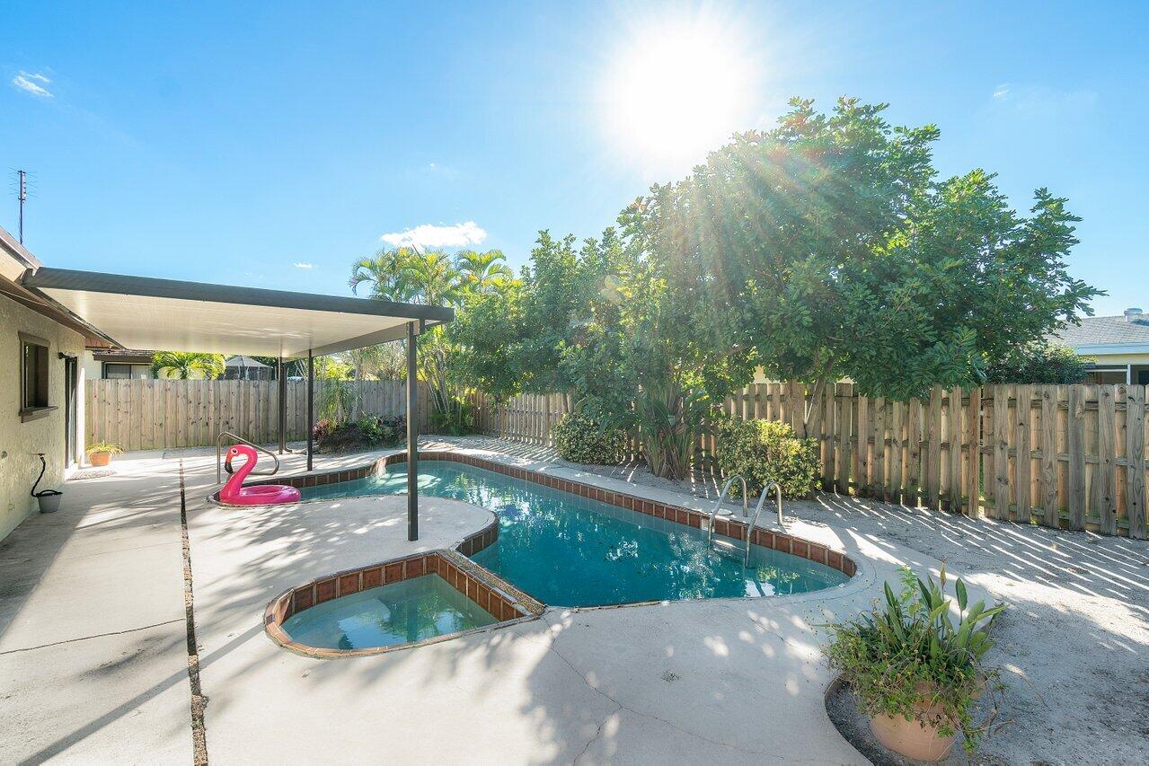 WELCOME HOME This one owner home with a BRAND NEW ROOF features a pool and spa, (3) bedrooms, (2) full baths, (2) car garage and NO HOA OR FEES! ENTERING this gem you will discover a convenient circular driveway, freshly painted exterior, spacious living areas, lovely coral fireplace, large eat in kitchen with a beautiful sink window overlooking the pool, pantry, glass backsplash and cabinets galore. And passing through you will discover; knockdown ceilings, hi-hat lighting, storage, pool views from virtually every room, upgraded walk-in master shower and new bidet. STEPPING OUTSIDE into the BRAND NEW 28' x 12' covered lanai brings you to the sparkling pool, spa, 30'x60' patio, spacious outdoor area, fully fenced private backyard, mature ponytail palms, bird of paradise, staghorn (click)