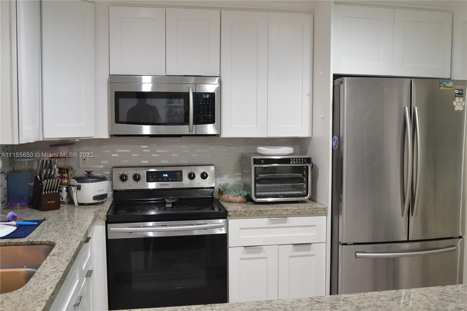 Immaculately kept 3 bedroom, 2.5 bathroom; 2-story, townhouse in the Bella Vista Villas Community. Unit was totally redone in 2019. Large marble tile flooring on ground floor and laminate wood on the 2nd. Impact windows throughout, Impact rear french doors, Front door is not impact resistant. LED high hats throughout. White kitchen cabinet with white counter combined with stainless steel appliances. Exterior patio ready for family gatherings and entertaining. Exterior laundry room closet. Townhouse is centrally located within all major points of interest, highways, shopping and entertainment, including major roads and highways. Condo does not have reserves therefore needing 20% to 25% down payment. Price is firm and not subject to appraisal. Easy to show. Read Broker remarks.