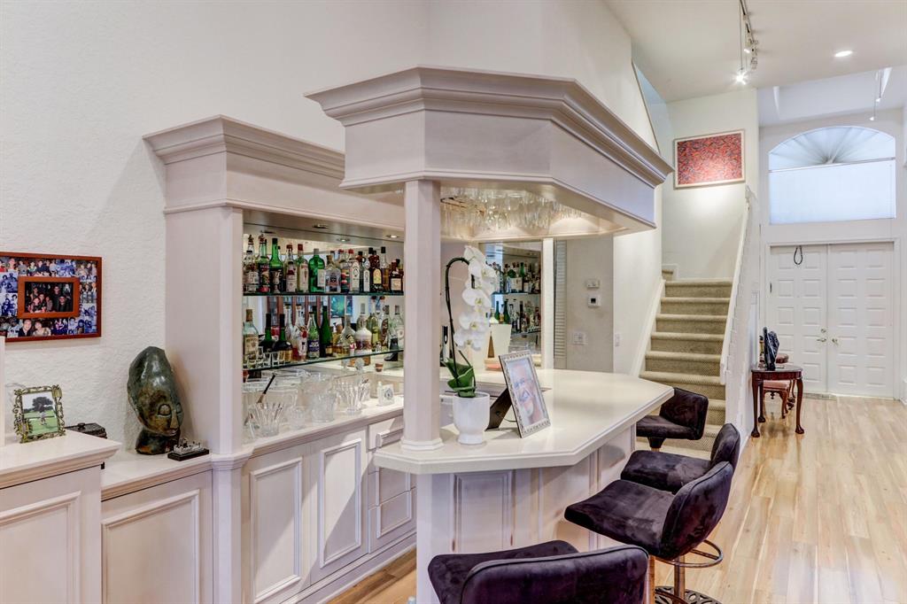 Banana trees lead to the front door that opens into a beautiful lake view the moment you enter. The floor plan offers the Master Suite plus an office & 1 1/2 baths down & 3 bedrooms, a loft up & 2 baths. Features of this lovely home include volume ceilings with LED lighting; neutral laminate tile floors & carpeting; decorative Living Room columns; Family Room entertainment center; inviting built-in bar; an open kitchen with 42'' light blonde wood cabinetry with roll-outs, corian countertops & newer sink, oven & microwave. Sliding glass doors open to a charming open patio with a tranquil long lake view.