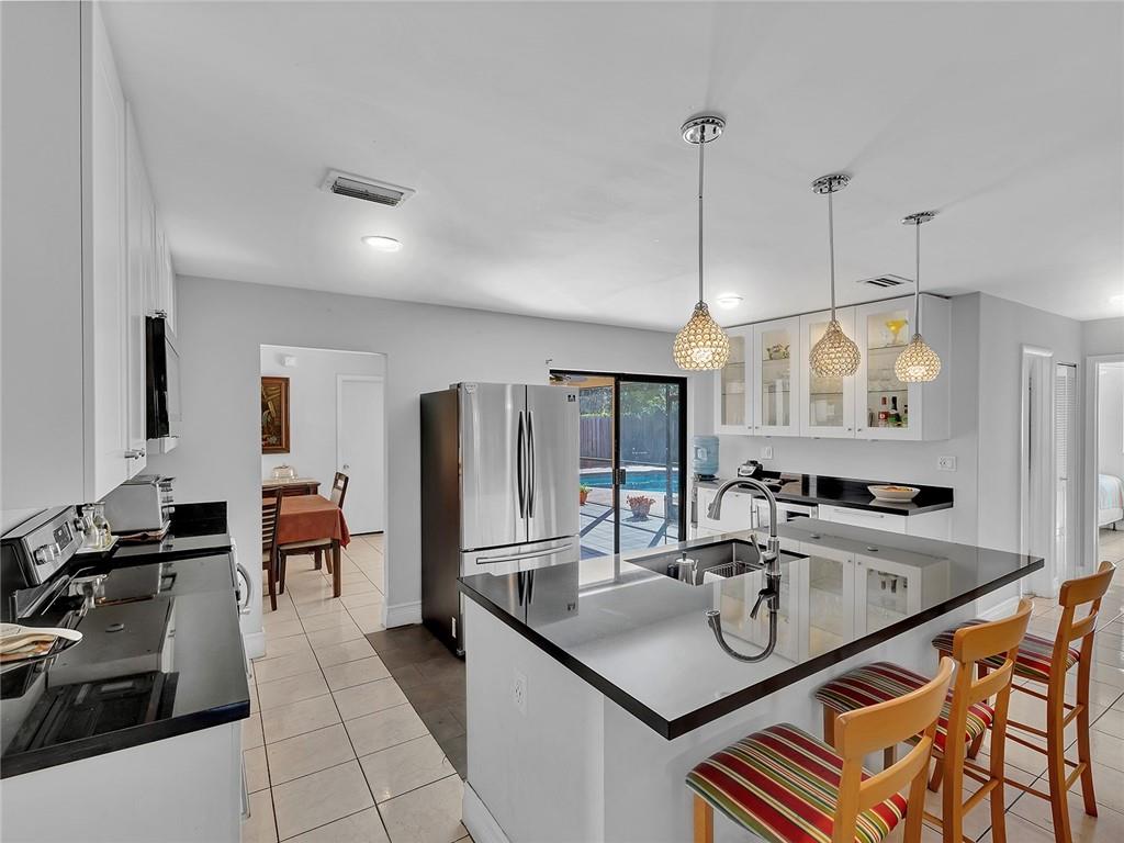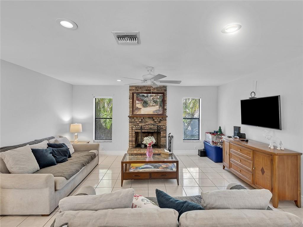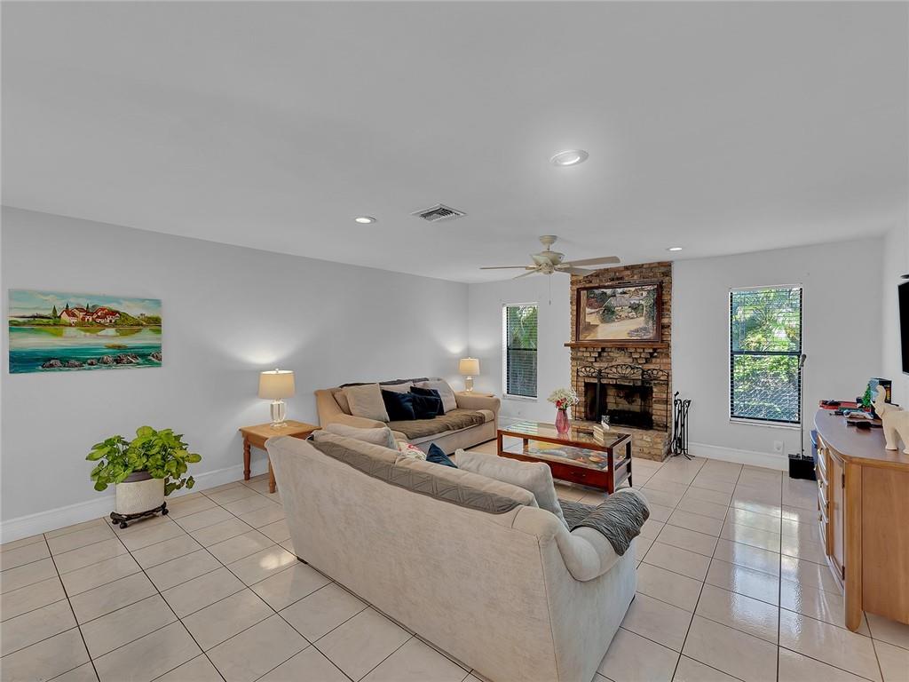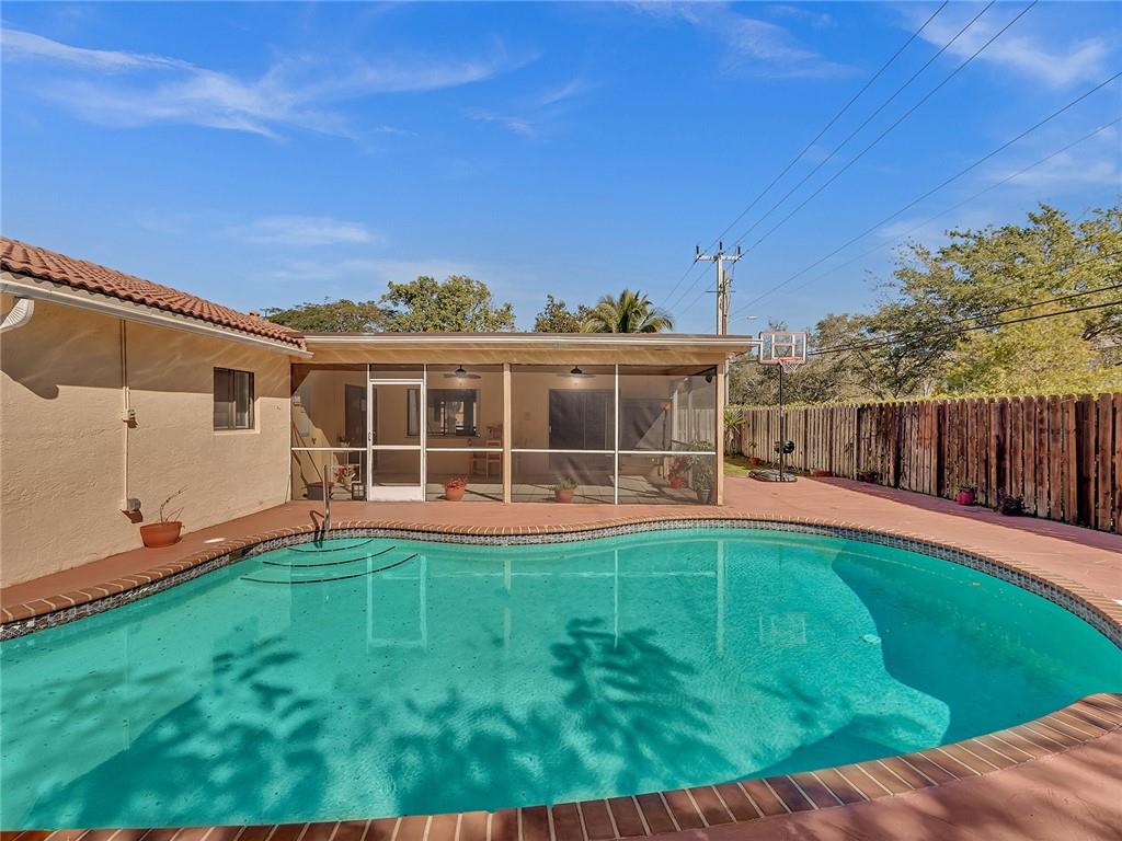 With over 1800 sq ft, this 3BR/2BA split floorplan pool & corner lot home is one of the larger models in the area. Greet guests in foyer which opens to formal living & dining areas. Great floorplan for entertaining offering expanded indoor-outdoor living via 312 sq ft screened porch overlooking pool & yard. Renovated kitchen features white cabinets, granite counters, island with snack bar & additional storage with beverage fridge all open to grand family room showcasing fireplace. Cabana bath makes access to pool easy! Volume ceilings make home feel even bigger. Tile throughout. Good-sized primary bedroom has access to patio. AC 2017. Close to hospital, shopping, restaurants, parks, City Hall & more! No HOA! Occupied & shown by Appt only. Request your private tour today!