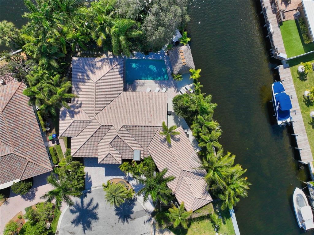 Spectacular, Lush, One of a Kind Waterfront Estate property w/ Tropical expansive decks surrounding Pool and poolside Tiki Hut, short walk to beautiful Beaches, Restaurants and LBTS Town Square. Contemporary style w/ 4 lg bedrooms /3 lovely baths, triple split plan. 2 amazing Master Suites: #1 = 1000sqft w/ 2 huge California walk-ins / Royal Master Bath, #2 = Large, en-suite w/ Pool view. Polished Marble and Wood Floors throughout the home. Stylish Kitchen w/ panoramic property views, open to Spacious Family Room. Whole house Generac w/warranty. Impact Windows / Doors, Custom Front Door, Garage impact door, new Level 2 Charging Station. Point lot, 240 ft of waterfront, 55 ft dock w/ electric & water, a Boater's Dream! Located on a cul-de-sac in The Landings, ULTIMATE Privacy, A RARE FIND!