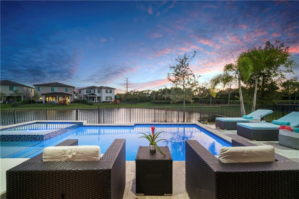 Upgraded & Contemporary 5 Beds + Huge Loft, 4 Baths Dream Home On Cul-De-Sac! Resort Style Patio Area w/Upgraded Pool & Heated Spa, Extended Paveres w/Retractable Screens Perfect For Entertaining & Taking In Amazing Sunsets! Fenced-In Yard Ideal For Your Children! Open Floor Plan, One Full Bed & Cabana Bath Downstairs, On-Suite Bed & Bath w/Balcony Upstairs. Loft Perfect For Cinema Or Game Room, Gym Area, Or Office. Impact Windows/Doors, Custom Window Treatments, Built-In Closets, Large Family Room, Spacious & Modern Kitchen w/Island, Quartz Counters, Stainless Steel Appliances, Oversized Private Primary Bed w/Sitting Area, Walk-In Closets, Luxurious Bath w/Separate Tub & Shower, A-Rated Schools, Guard Gated, 2 Resort-Style Clubhouse Amenities, Better Than New Construction! HURRY!