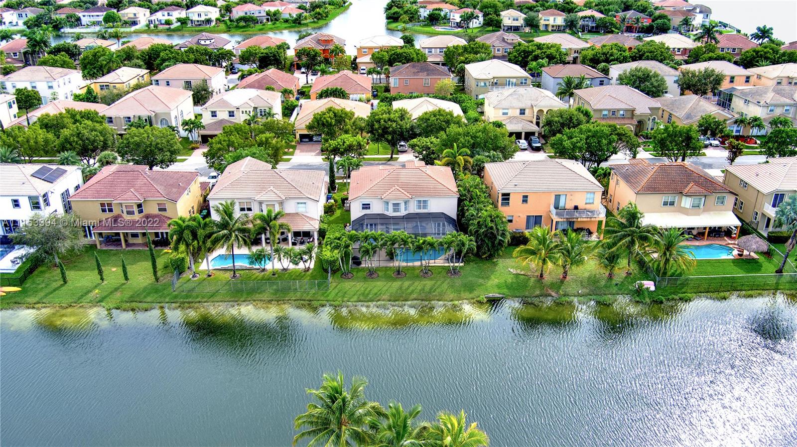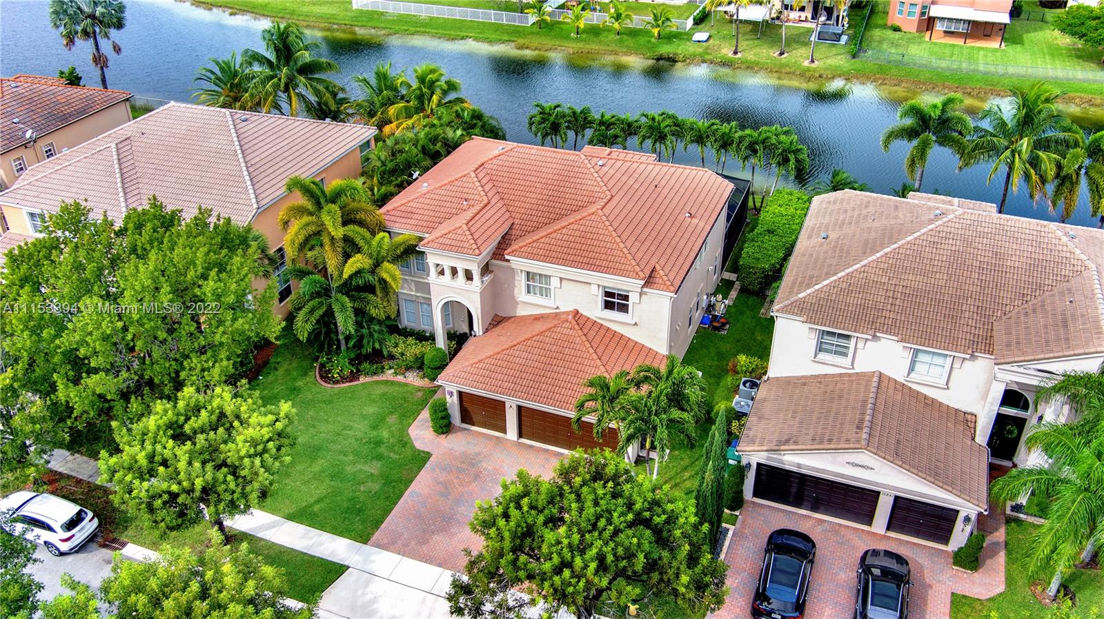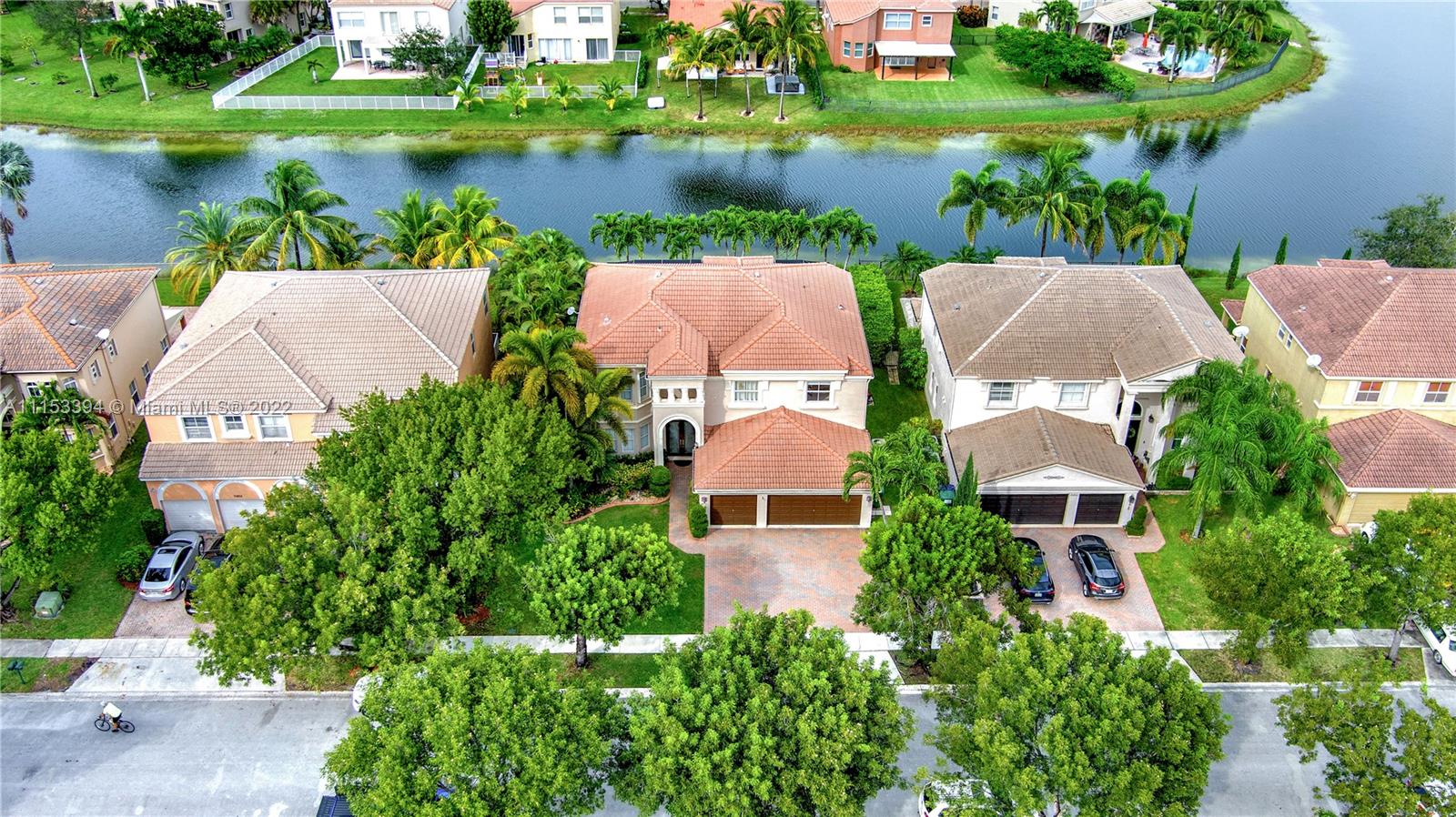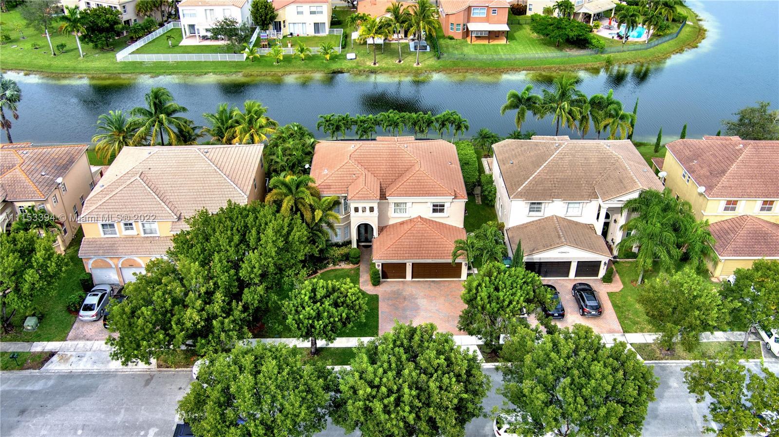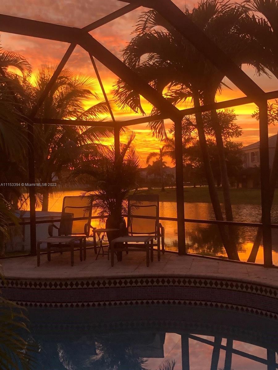 GORGEOUS waterfront house w/upgrades enhancing your living lifestyle. In the community of Riviera Isles. Beautiful Crème de Marfil marble on the first floor. w/marble inlay designs. Large kitchen w/beautiful granite countertops, stainless-steel appliances & maple wood cabinets. Spacious living & dining areas. Open kitchen & family room w/views of the pool & lake. Four bedrooms including a spacious Master Bedroom w/lake views. Three full bathrooms w/upgrades. Den area upstairs w/hardwood flooring that can be converted to a fifth bedroom. Ascending a gorgeous spiral wooden oak staircase you are greeted to an all tile second floor. Spectacular Salt-Water pool w/design artistic pavers for entire patio area w/views of the lake & astonishing sunset’s. Three car garage w/space for storage.