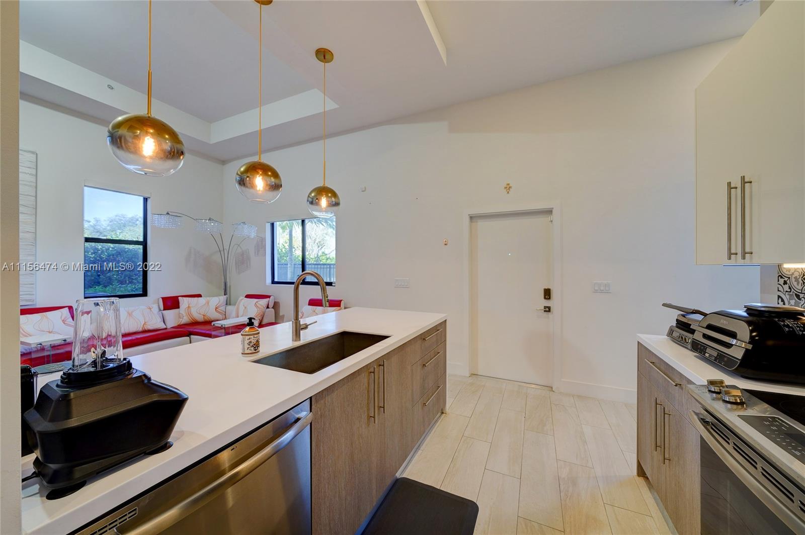 Beautiful townhome located in a gated community that is FHA and VA approved. This Thorin model is a corner unit that allows for entrance privacy and a short walk to the pool and gym. It has 3 bedrooms (all upstairs), 2.5 baths, patio that is accessible from the main living area, high ceilings, nest thermostat and security cameras. High quality, contemporary, state of the art designer accents, custom window shades throughout unit. The kitchen has stainless appliances, European cabinetry and signature island. Ceramic and wood floors throughout. Master bedroom has 2 walk in closets and balcony. Garage is oversized with ultra high ceilings for storage. IMPACT WINDOWS AND DOORS throughout. Clubhouse amenities include pool, fitness center and billiard room.