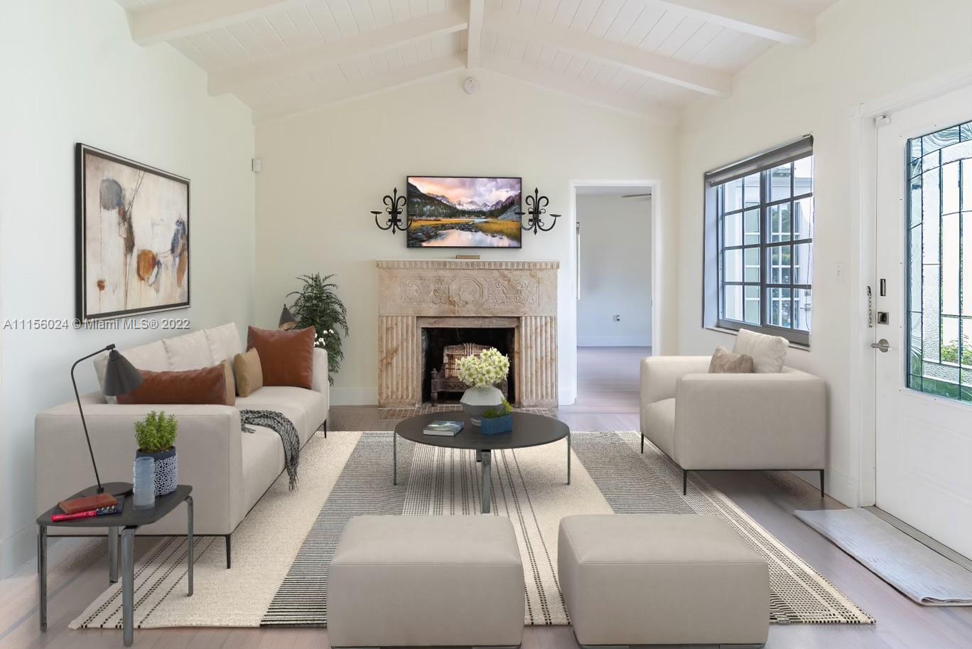 Gorgeous layout, completely renovated, and meticulously maintained home on approx. 10,000 SF corner lot, centrally located in Miami Shores. Move-in ready 3bd-rm & Den, 2bath 1800 sq.ft. w/ new roof & impact windows. Features carved stone fireplace and sunny cozy den boasts a quarry-tile floor w/ wrap-around windows. Living room & adjoining dining room open-up to a brand-new kitchen w/ speckled grey granite counters, white high gloss wood cabinets, stainless-steel new appliances, Air fry & convection range. Split bedroom plan includes a spacious master bedroom, an ensuite brand-new bath w/ a multi-showerhead tower. Two additional large bedrooms, 2nd brand new bathroom, and cedar-lined walk-in closets. Plenty of storage space, fenced private backyard, 2-car garage. Room for a pool.