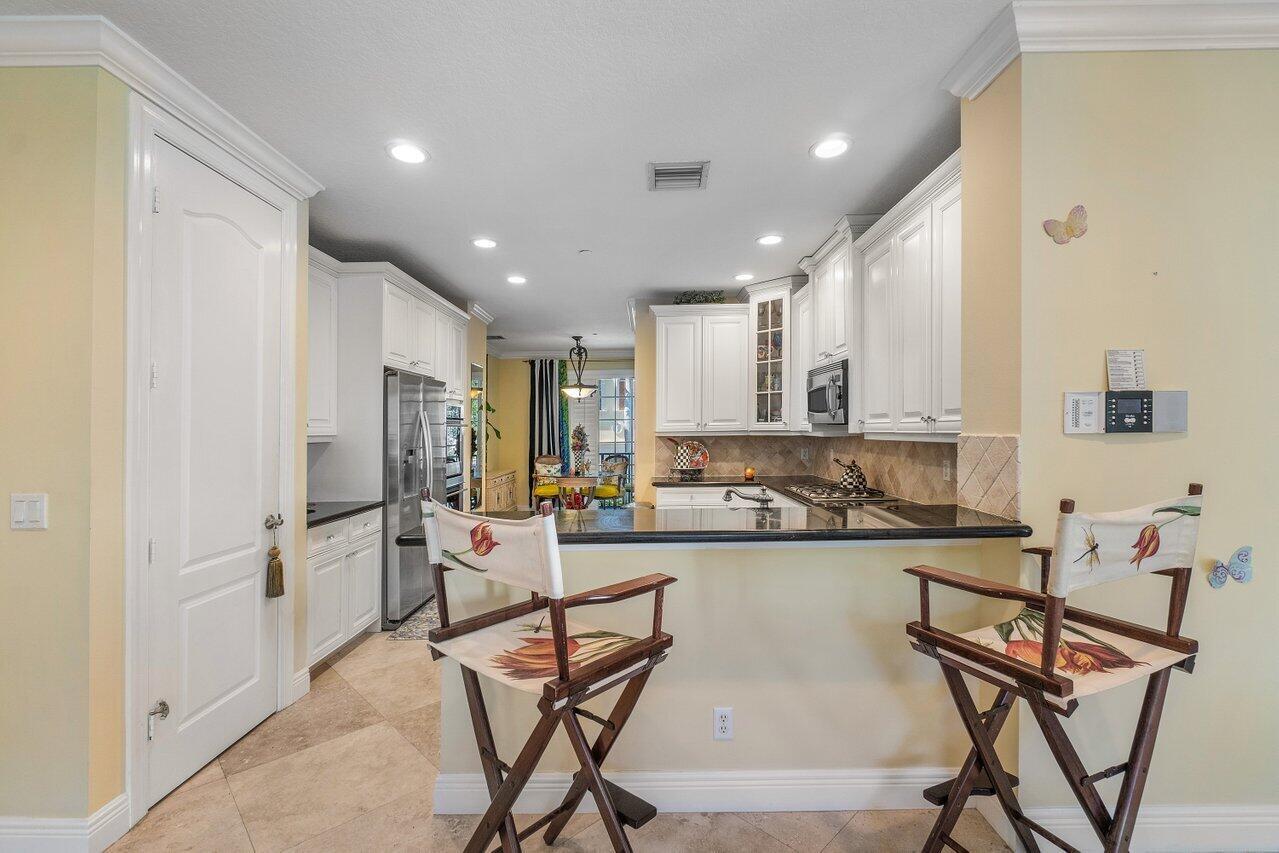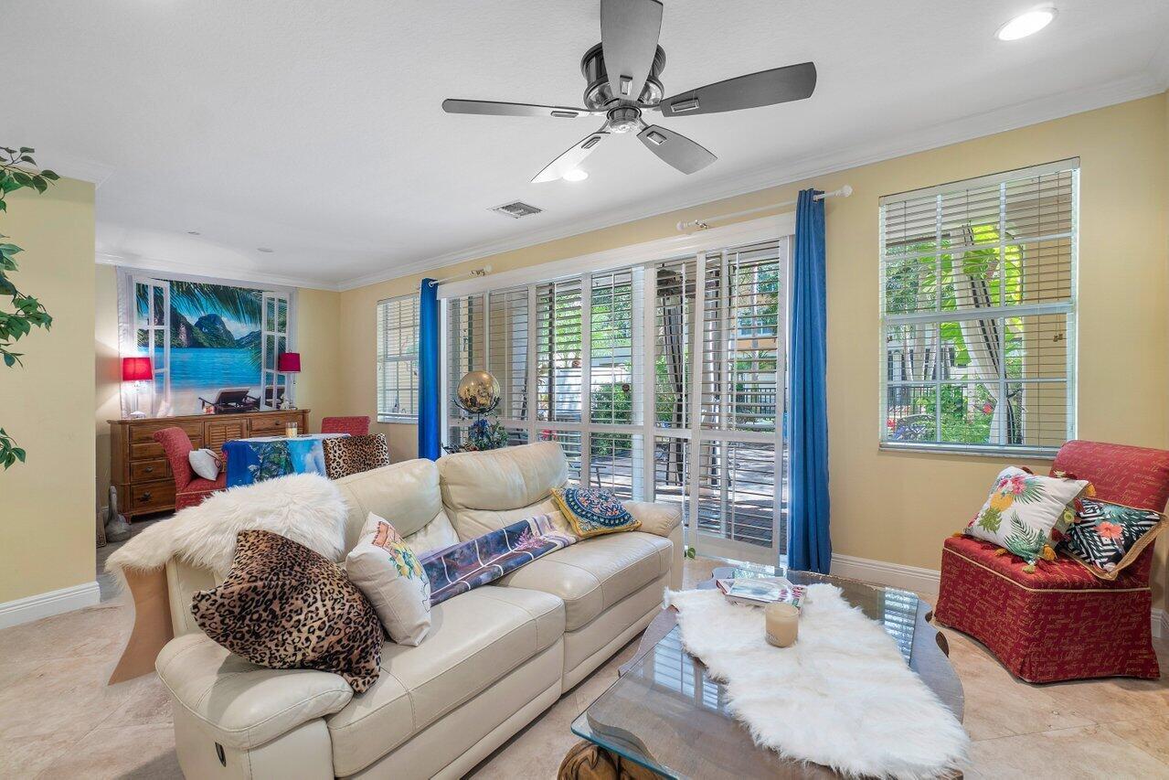 Stunning coastal home in private award winning Toll Brothers community, steps away from the inter coastal and minutes to the beach. Features 24/7 security/manned guarded gatehouse in a tropical location with easy access to everything desirable in Boca and Delray. Light and Bright open floor plan with beautiful Saturnia marble, premium grade travertine stone and polished granite throughout. Exceptional gourmet kitchen, with gas range and high end stainless steel appliances opens up to a large spacious family room, dining room and extended covered patio all with breathtaking views to the lush trees behind where you often find plump acrobatic squirrels having the time of their life in the paradise beyond. This rare Casa Luna model is exceptionally upgraded with designer touches everywhere you