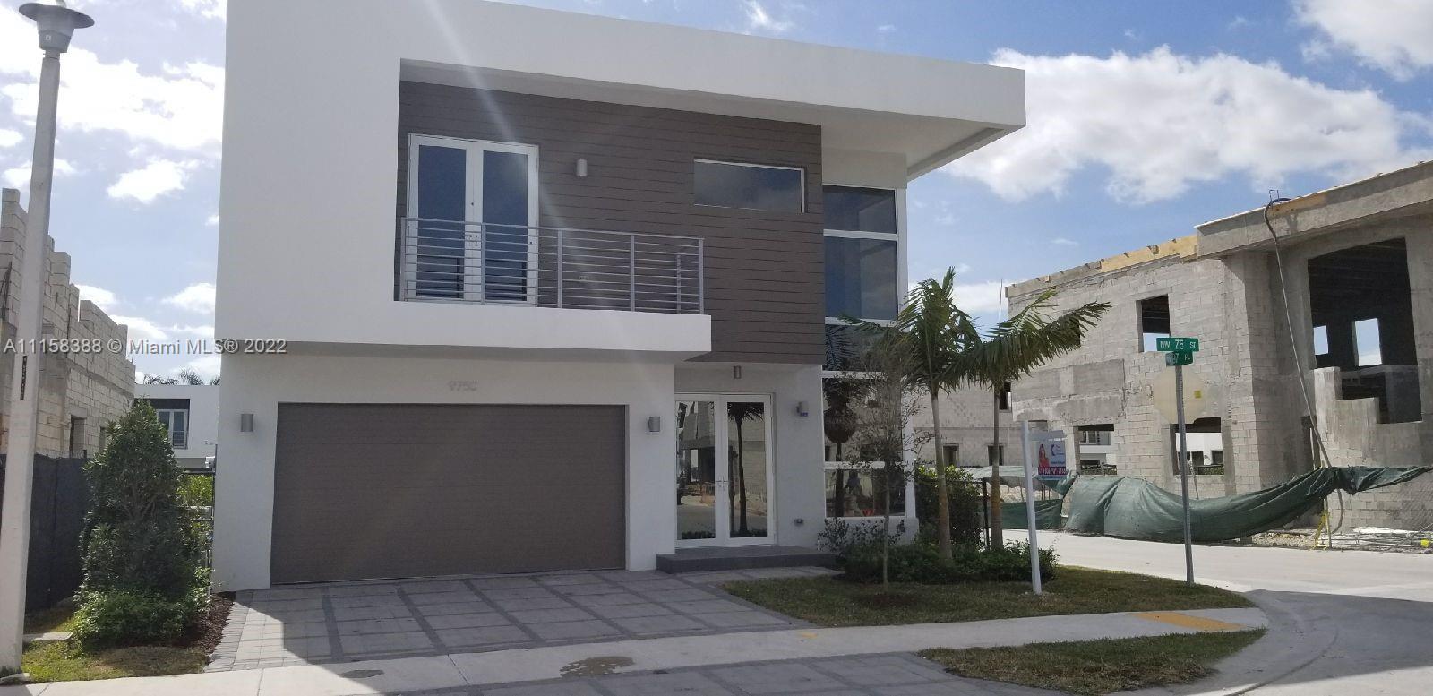 Modern Doral 45 two story home featuring 5bed/5baths. 1st Floor Bedroom. High Ceilings. Formal Living. Formal Dining. Family Room. 2nd Floor Laundry Room. Modern wood floors on stairway and second floor. 30 x 30 Porcelain Floors throughout 1st floor. Bosch Appliances & Quartz countertops. Gated community with 24/7 watch guard. Private pool w/ built in BBQ. Community pool, BBQ Gazebo. Access to clubhouse which includes fitness center, children's playroom, fitness center, business center, oversized pool, sun deck & spa. No back or side neighbors. Lots of Privacy.