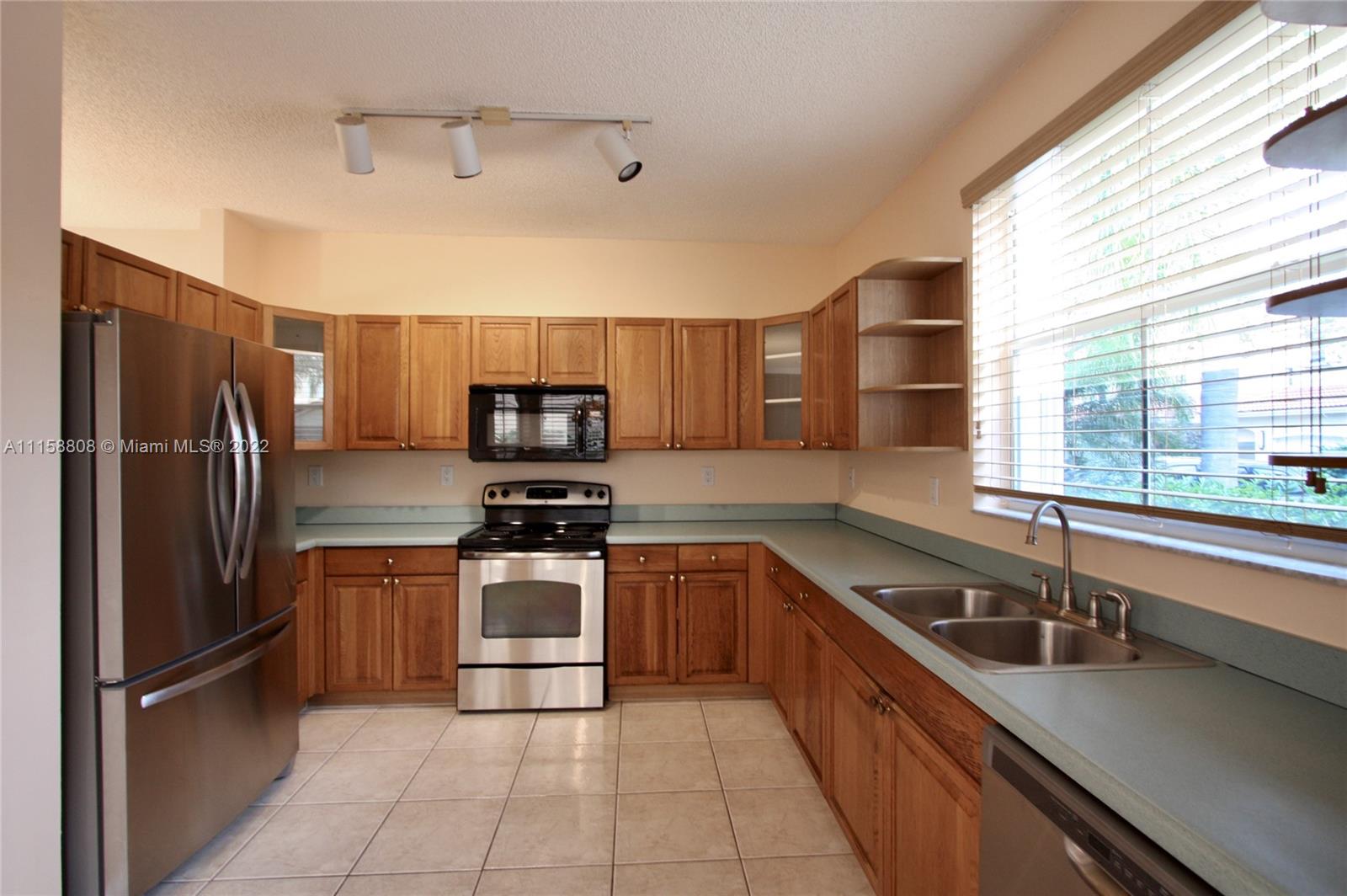 Spacious townhome in gated community near beach & Downtown Hollywood. Large living/dining room opens to the courtyard. The eat-in kitchen is in the front of the house with a window over the sink and a bay window facing the courtyard. Wood cabinets and stainless steel appliances. First floor has a large den/third bedroom, a full bath and a laundry room with full-size washer and dryer. Second floor has two suites - both have vaulted ceilings. The master has a large walk-in closet and bath with separate tub and shower. Largest courtyard of the townhome models. Full accordion hurricane shutters. New roof and gutters. West Lake Village has tennis, heated pool, Jacuzzi, exercise room, clubhouse, kids play area & security.
