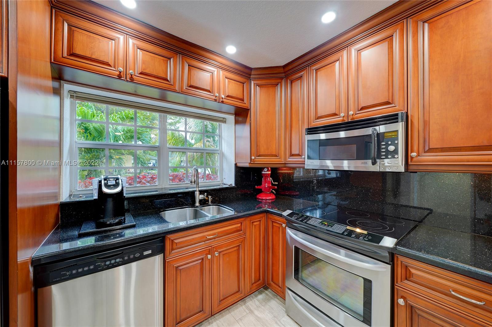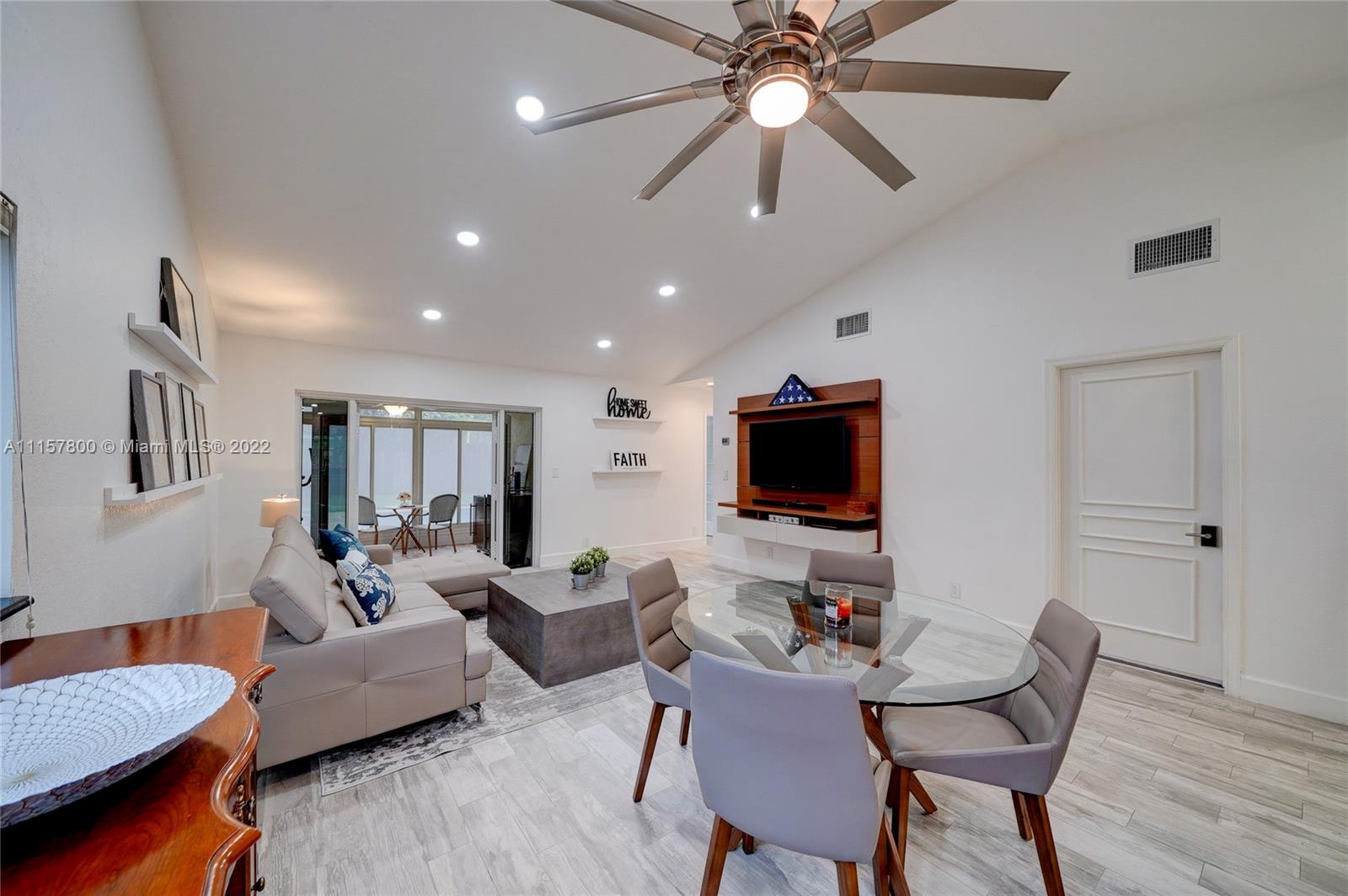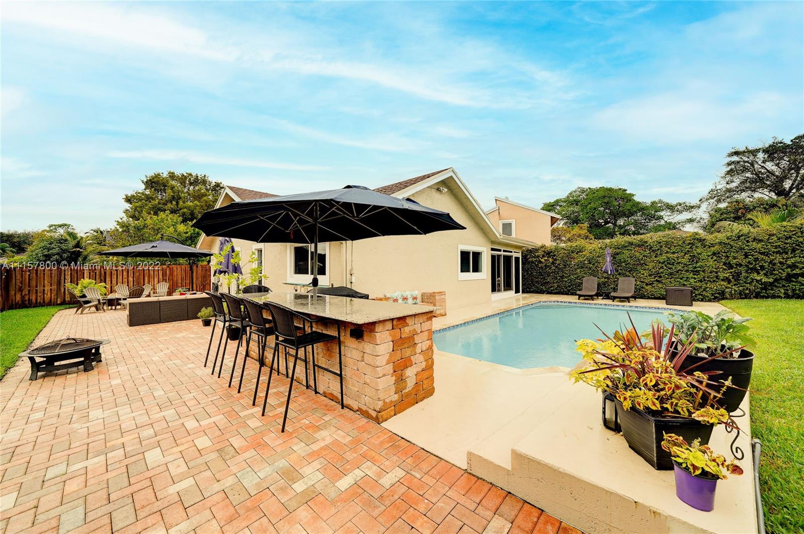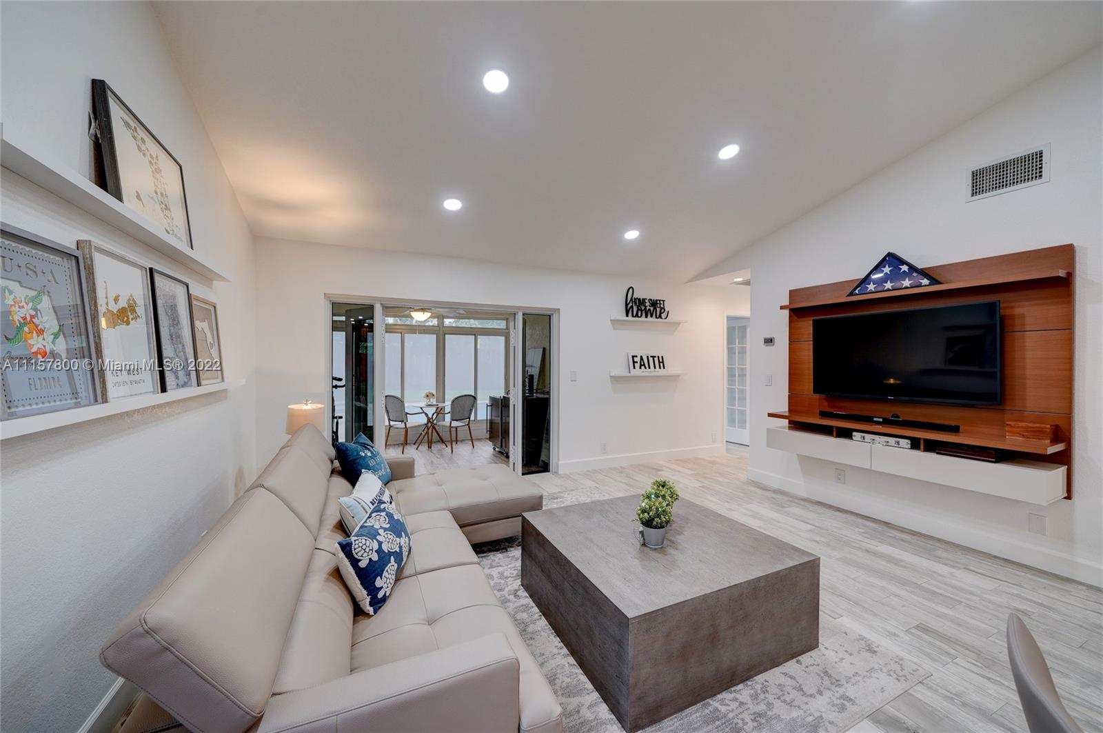 Newly remodeled 3/2 pool no HOA, fenced corner lot with ext. entertaining space, huge paved area, salt pool new Diamond Brite, large deck, LED pool lights, Wi-fi sprinkler, FL room, no popcorn new plank porcelain tile, impact glass/doors, ceiling fans, French BR doors, epoxy gar. floor, built-in work bench/cabinets, two-wall storage system, and overhead rack insulated impact garage door. Custom kitchen wood cabinets full ext. drawers, two lazy Susans, granite/SS. New bathrooms, frameless shower doors, tower shower with body massage jets. Upgrades galore, from outlets with built-in night lights to whole-house tile to exterior lighting. NOTE: All info except sq ft deemed reliable but not guaranteed. MLS defaulted the sq ft to an incorrect unchangeable number, but should say approx 1400 sq ft