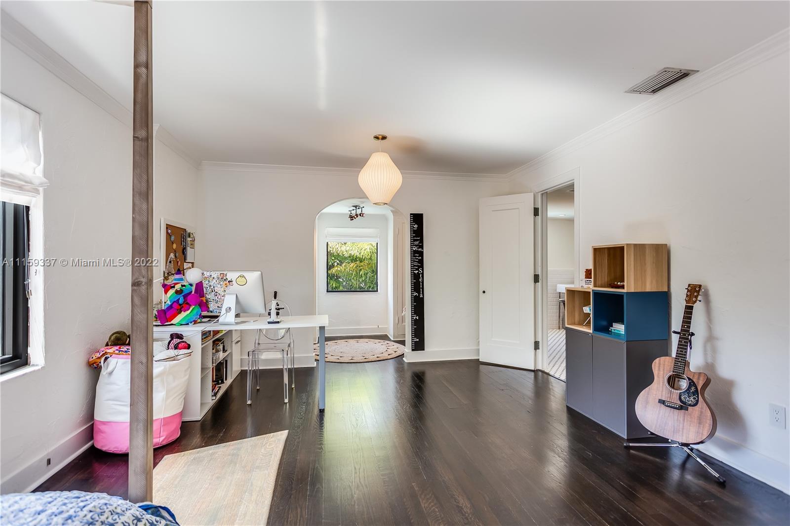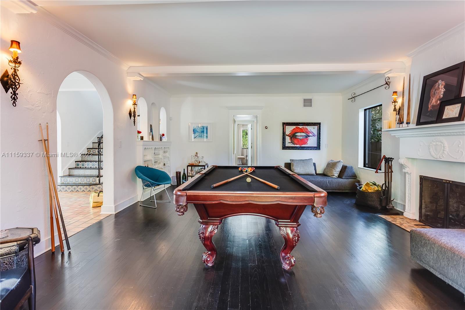 Stunning 5 bedroom/5 bathroom Mediterranean Miami Beach remodeled home which includes a separate guest house and full bathroom. Gourmet chef's kitchen features LaCornue range & hood combo, double ovens, & Subzero fridge. Large bedrooms. Master bath features a gorgeous solid copper soaking sub and dual head showers. 1st Floor guest room with private side entrance. Circular automatic gated driveway for easy in & out- fitting 5+ cars. Impact windows & doors throughout. Beautiful outdoor dining area. New heated saltwater pool with built in spa feature. Dual Zone Nest A/C, alarm system, new roof, 2 wood burning fireplaces, Pelican home water filtration system, and custom California Closets. No expense spared, this home is truly the beautiful Miami Beach house you've been looking for.