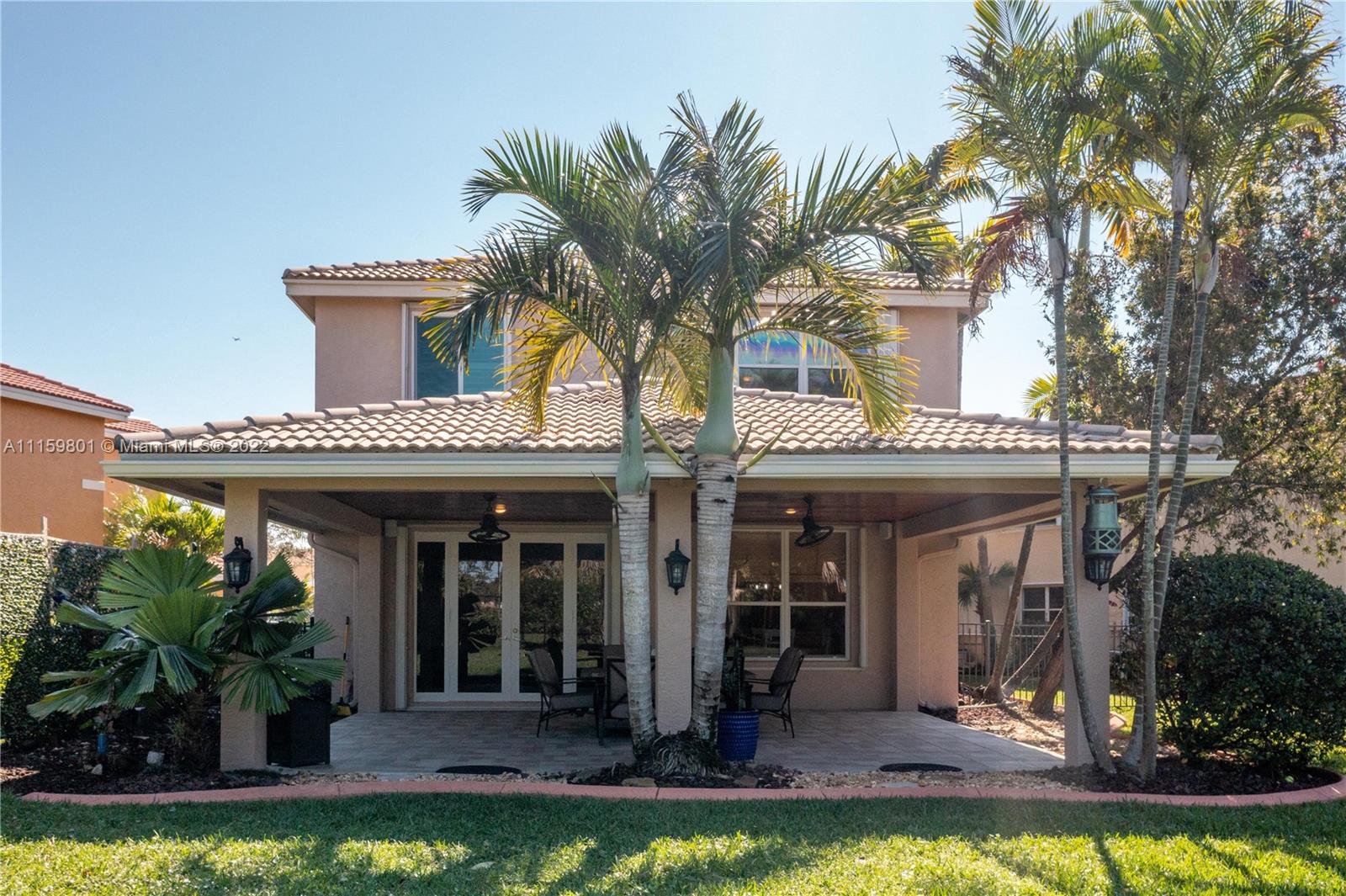 Elegant and spacious custom home nestled in Silver Shores community, offering unparalleled craftsmanship and exceptional amenities! This beautiful 2-story home has 4 bedrooms, 2.5 bathrooms, and 2-car garage. Features include a beautiful chef's kitchen with white tile counter tops, stainless steel kitchen appliances, 5.1 stereo surround sound speakers system installed in the family room ceiling and outdoors for entertainment, decorative plantation shutters in most windows throughout the house, partial impact windows and accordion shutters, plenty of natural light, expansive terrace overlooking the large backyard with beautiful palm trees and landscaping, perfect for entertaining and gatherings, plenty of space for a pool and/or perhaps building the oasis you always dreamed of.