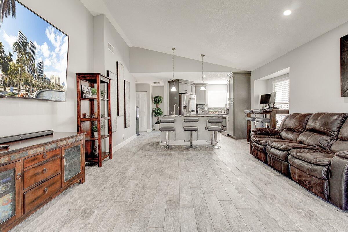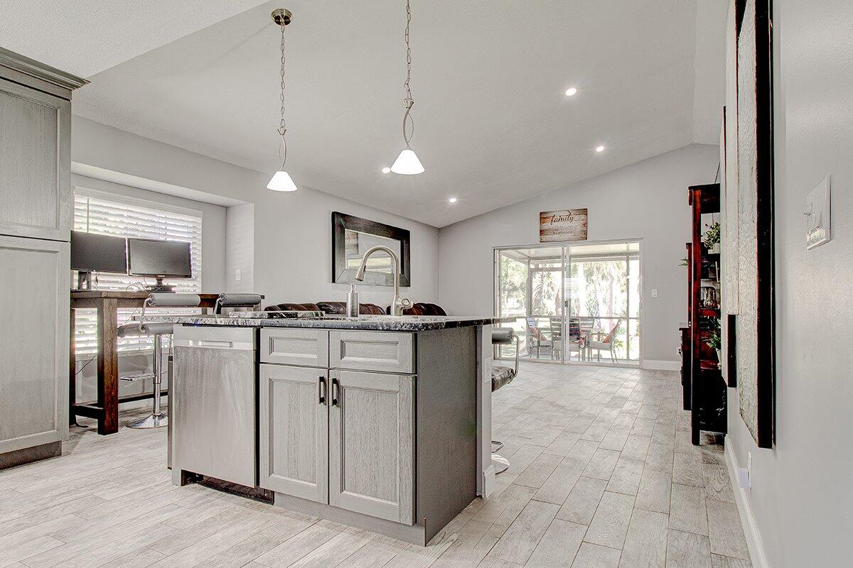 Remodeled 3 bed, 2 bath, 2 car garage home with end lot and screened patio with a great view of preserve. Many updates including wood-look tile flooring, opened kitchen with granite countertops and stainless appliances. New custom lighting and knockdown ceilings throughout, updated bathrooms, his and hers closets in master bedroom. Partially finished garage with additional storage room but easily converted back.Victoria Woods offers ample amenities such as pool, basketball, tennis, dog park, baseball field, playground and 24 hour manned security gate all for a very low HOA fee! Excellent central location convenient to Turnpike, 95, shopping, dining and more!