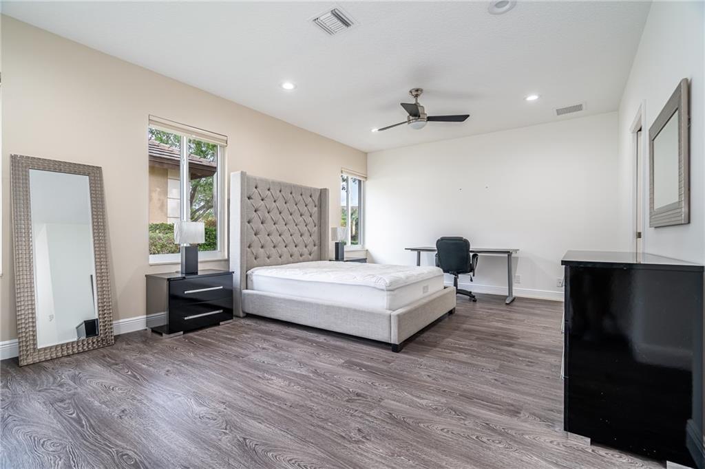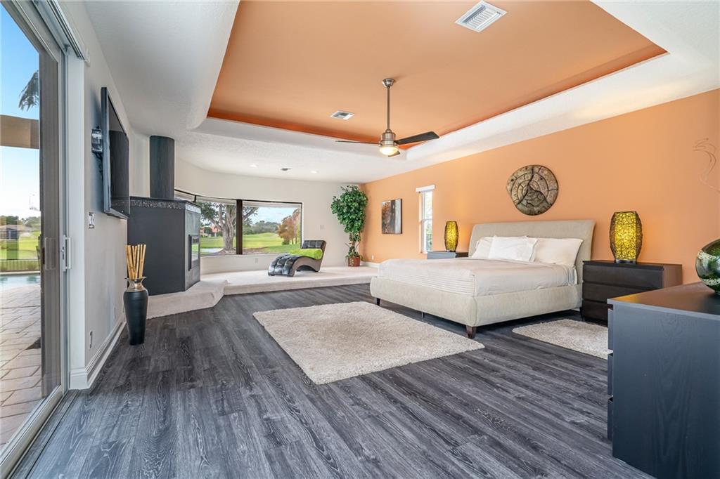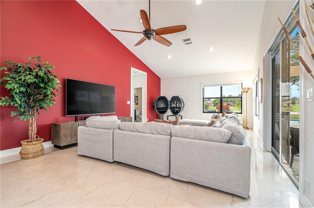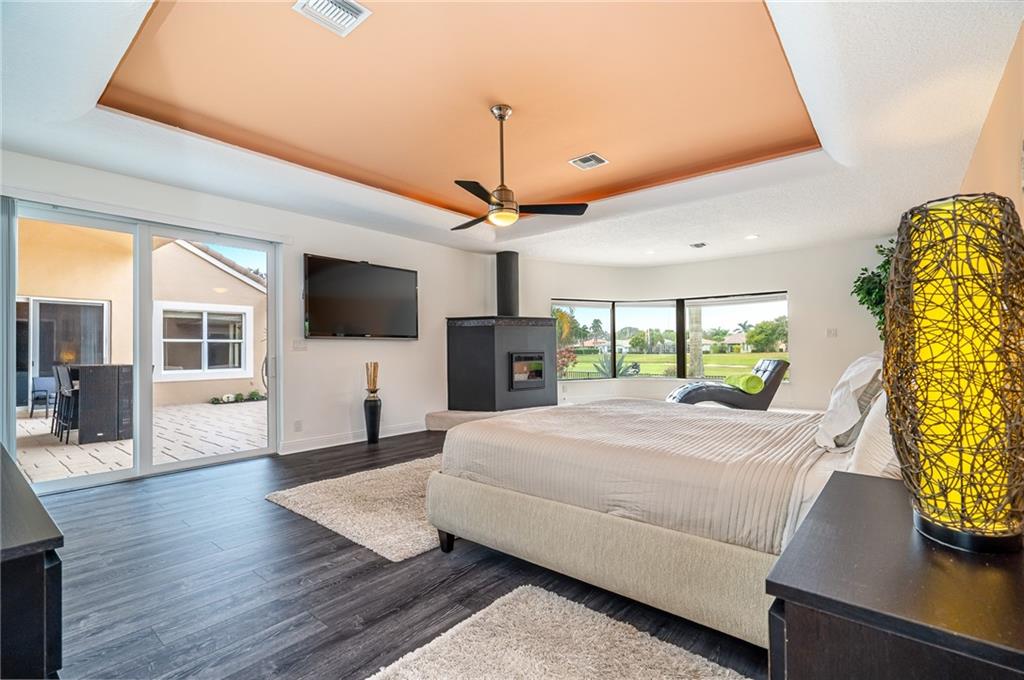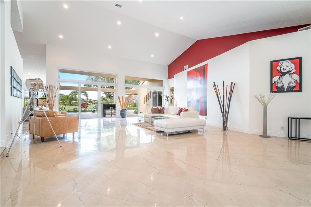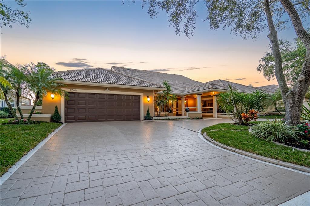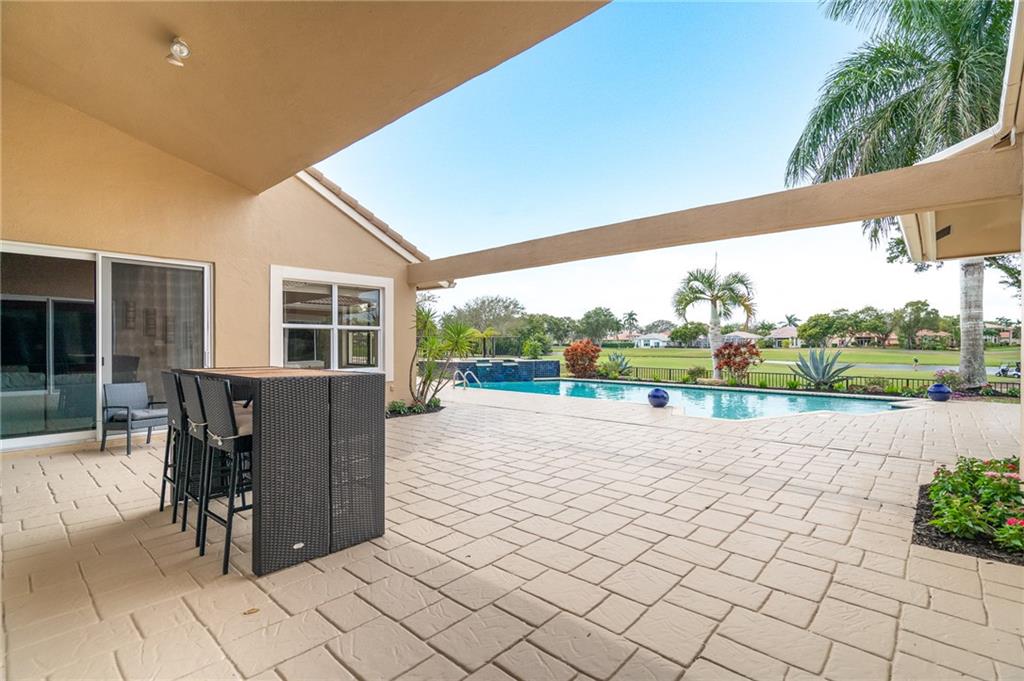 Welcome to one of the most impressive homes in the prestigious community of Eagle Trace in Coral Springs. This is currently the largest home offered in the community and is located in the Estate section. This home features an 8-car circular driveway. Walk across the bridge over a koi pond and waterfall and enter into a triple split floor plan home. This one story single family home has 4 spacious bedrooms, an office/den, 4 full baths, two half baths (one is a cabana), and an oversize 2-car garage. The view from the covered patio and pool/spa is magnificent, showcasing amazing sunsets over the golf course as well as a beautiful lake. This estate has a formal living room, dining room, family room, and eat-in kitchen. The roof was installed just 11 years ago.