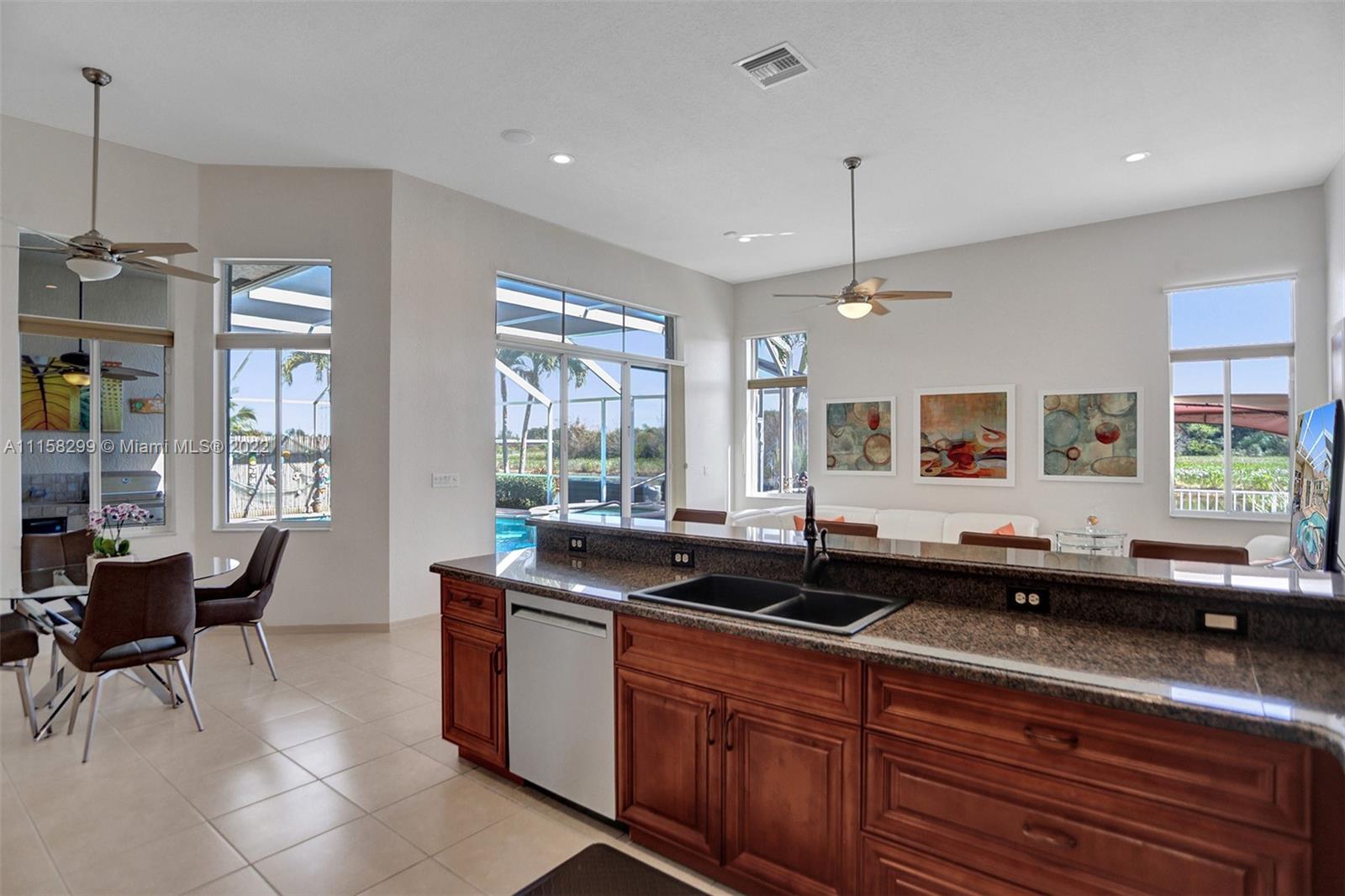 Amazing opportunity! Own highly desired & rarely available waterfront/pool home (La Hoya model) at coveted Laguna Isles, across from (no build) nature reserve. Boasting over 2,700 SF of bright & spacious (1 story) living space, 4 beds, 2.5 baths, heated pool & 2 car attached garage this fabulous home has it all. Foyer entrance, water views everywhere, 12' ceilings, grand open kitchen, wood cabinets, marble double counters, Black SS appliances, 2020 smart HVAC system, 8' wood doors, ceramic tile & wood floors. LG Washer/dryer & pedestals. Inviting large screened paver patio, covered grilling area, smart-self leveling/draining salt water pool, open brick patio & Gazebo. 100% storm ready, on demand 2018 Generac gas generator, surge protector, accordion shutters. Gas stove, oven & water heater