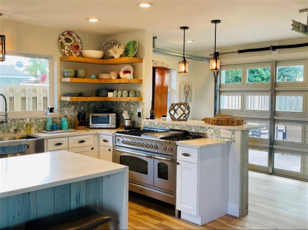Gorgeously remodeled 2899 sq ft under air courtyard pool home in desirable Cypress Lake by good schools, beaches & 95. Spacious kitchen features new white shaker, to the ceiling cabinetry (2020); 8 foot island; quartz countertops; new drawer style microwave; gas stovetop w/ dual electric ovens; glass tile backsplash & ocean accented hardware. This fun home was designed for entertaining w/ an open floor plan & unique glass garage door leading to large backyard & patio. Master downstairs, remodeled baths (2020), electric updates (2020), living/dining room w/ wood burning fireplace, tv/office area & additional entertainment area upstairs or can be used as additional bedroom space. Roof, 2 a/c units & hurricane windows/doors/shutters new in 2016.