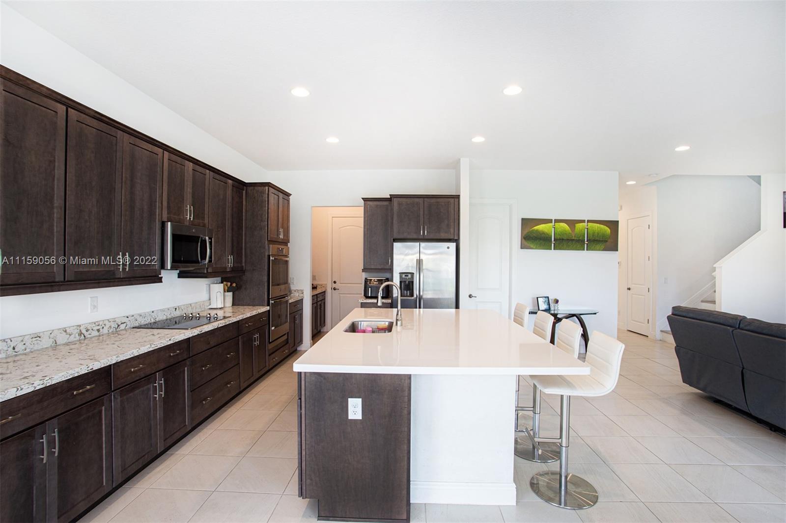 Spectacular 5 bedrooms, 2.5 bathrooms home in desirable Coral Lago /Coral Springs. Built in 2020, the open floor plan includes a spacious kitchen, SS appliances, quartz countertops, wood cabinets, a walk-in pantry, and an oversized island. The Master bedroom features a wood tray ceiling, crown molding, and a huge walk-in closet. Beautiful ceramic tile and laminate floors throughout. Loft on the second floor, now closed and used as the 5th bedroom w/o closet and an office/den on the lower level. Laundry room and a two-car garage. Plenty of lighting with big glass doors opening to a beautiful terrace/backyard overlooking the lake. The house is within walking distance to the Clubhouse with a catering kitchen, Party Room, Fitness Center, Pool, Spa, and Playground.