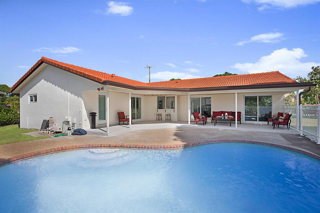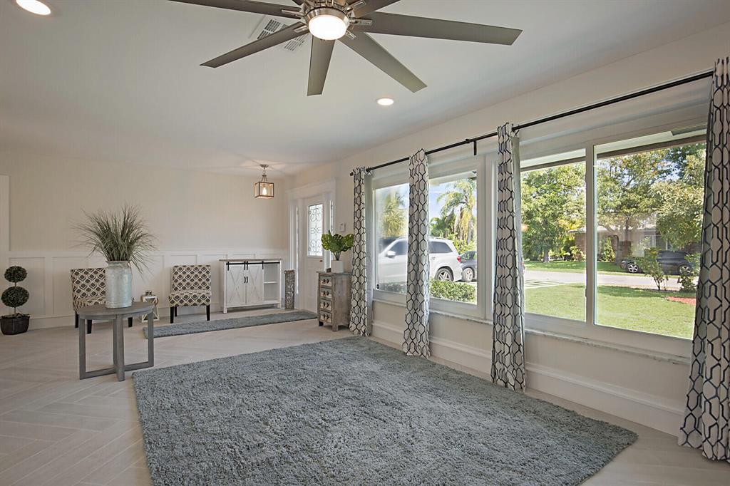 This East Boca 3 bed, 2 bath gem of a home has been fully renovated and features high end upgrades and design details throughout. Situated on an oversized corner lot, this home offers stunning curb appeal and fresh exterior paint. Upon entering you will be impressed with the open living space, high end wood-look tile, fresh neutral paint and luxurious architectural design upgrades throughout such as chair rail, wainscoting, custom door and window framing, and high-end ceiling fan in the living area. The brand new kitchen offers upscale stainless appliance and modern stone counters. A lovely coffee bar and mid-century fireplace complete the living area, while the dining room features built in storage along the tiled wall as well as a high end custom millwork accent wall. The fully upgraded