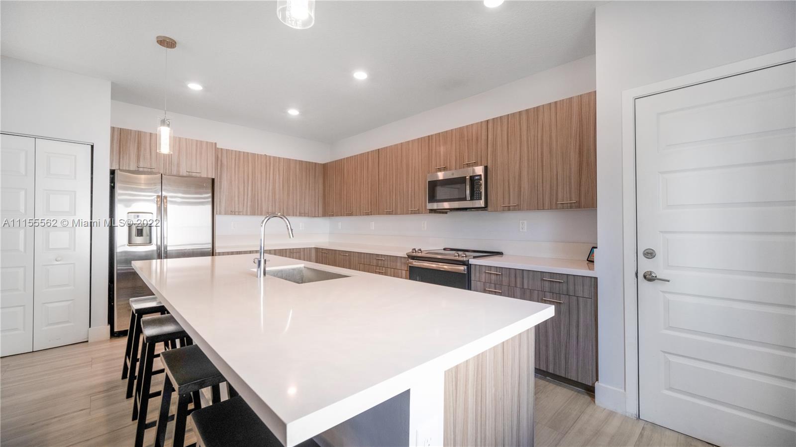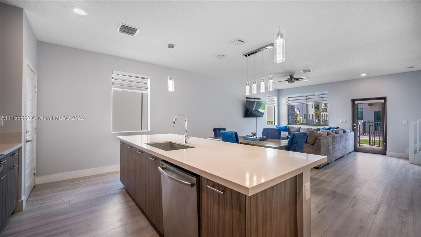 This three-story townhouse features 3 bedrooms, 2 full bathrooms, and 2 half bathrooms with a spacious 2 car garage. The property is located in a double-wide corner, with plenty of natural light. The first floor features a spacious open floorplan shared between the family room, kitchen and dining room. All three bedrooms are located on the second level. The primary bedroom features its own private balcony, two spacious walk-in closets, and ensuite bathroom with double vanities. The third floor is home to the media room and two beautiful patios, a covered patio with an outdoor kitchen, and an uncovered terrace, perfect for entertaining. Located in the heart of Downtown Doral, enjoy resort-style amenities, access to world-class education just steps away from restaurants, shopping and parks