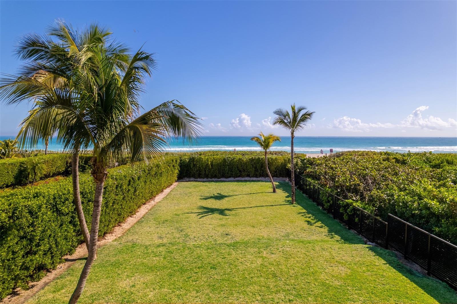 Live directly on the ocean with unobstructed views of the Atlantic Ocean and directly on the sand of Miami Beach, this beautiful two-story beach bungalow features four bedrooms and four bathrooms, a circular driveway, balcony and a two-car garage, in a private gated property framed by soaring palms. The open floorplan is filled with natural light and features a kitchen, living room and Florida room. The expansive backyard is perfect for entertaining or enjoy a tranquil life on the ocean on this 16,000 square foot lot. Minutes from exclusive shops and restaurants of Bal Harbour, parks and entertainment, this property is truly special, the best value property south of Golden Beach.