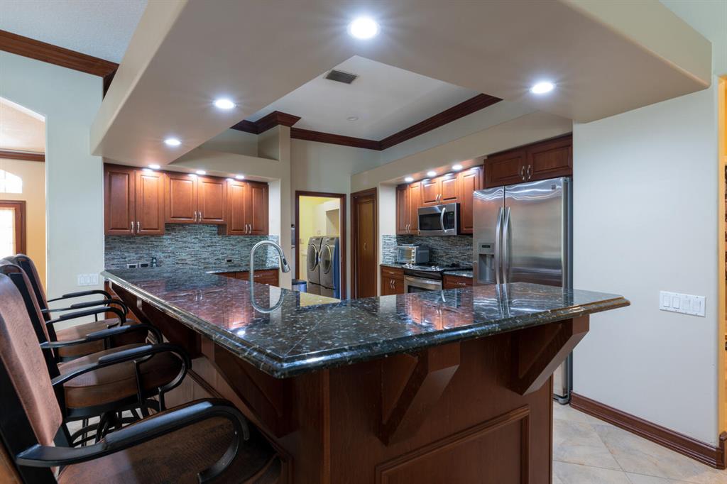 Beautiful pool home in the private gated community of Ironhorse next to the Grassy Water Preserve. Located on the 8th fairway of the 18 hole Arthur Hills Course. 4 Bedroom, 3 Bath, 3 Car Garage with pool. Total Sq. Ft. 3,949. Living Sq. Ft. 2,758. Lot measures 207 x 120. East front exposure. Highlights of this home include. Brick paver driveway and side walk. Large front and back yard with mature landscaping. Large exterior covered foyer. Pool and spa, backyard view upon entry into the living room. French doors. Crown molding. Tile and carpet flooring. Recessed lighting, Ceiling fans. The large living area has sliders to the lanai and pool area. Open dining area with built in shelving and granite counter tops. The kitchen has wood cabinetry, granite counter tops, full tile backsplash,