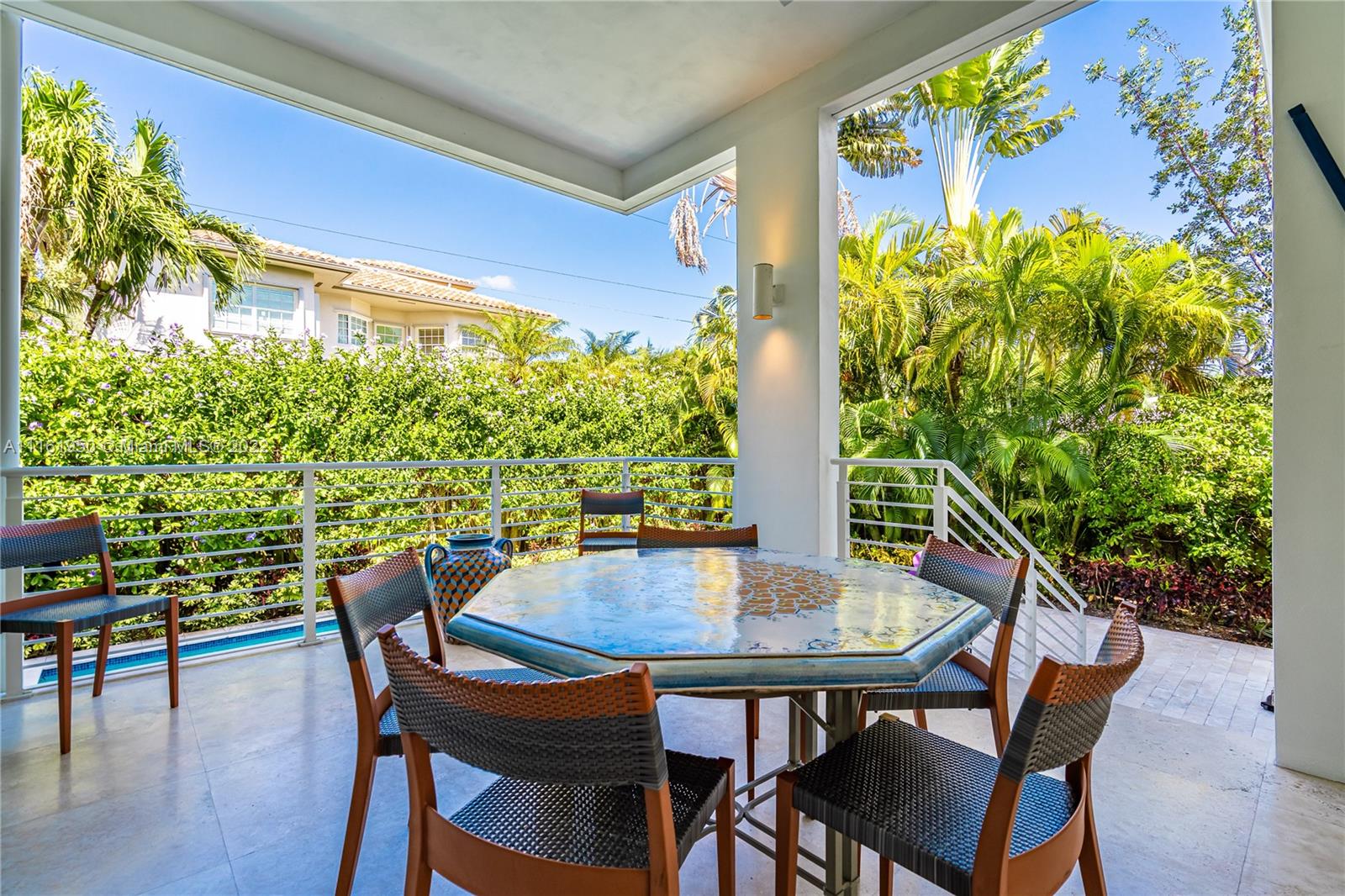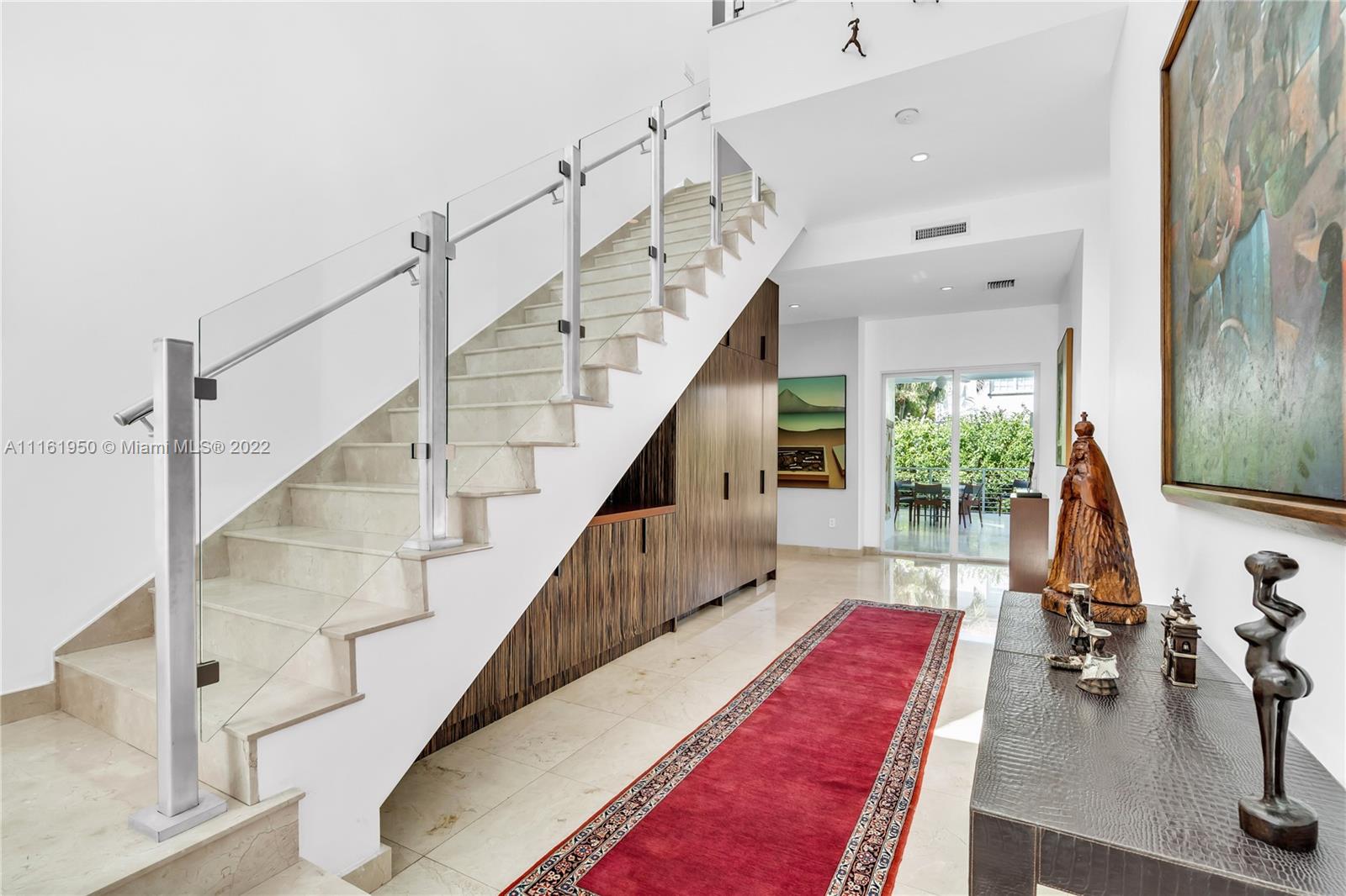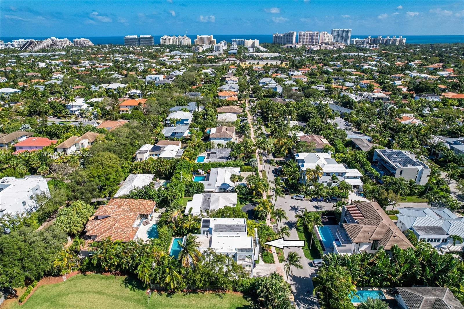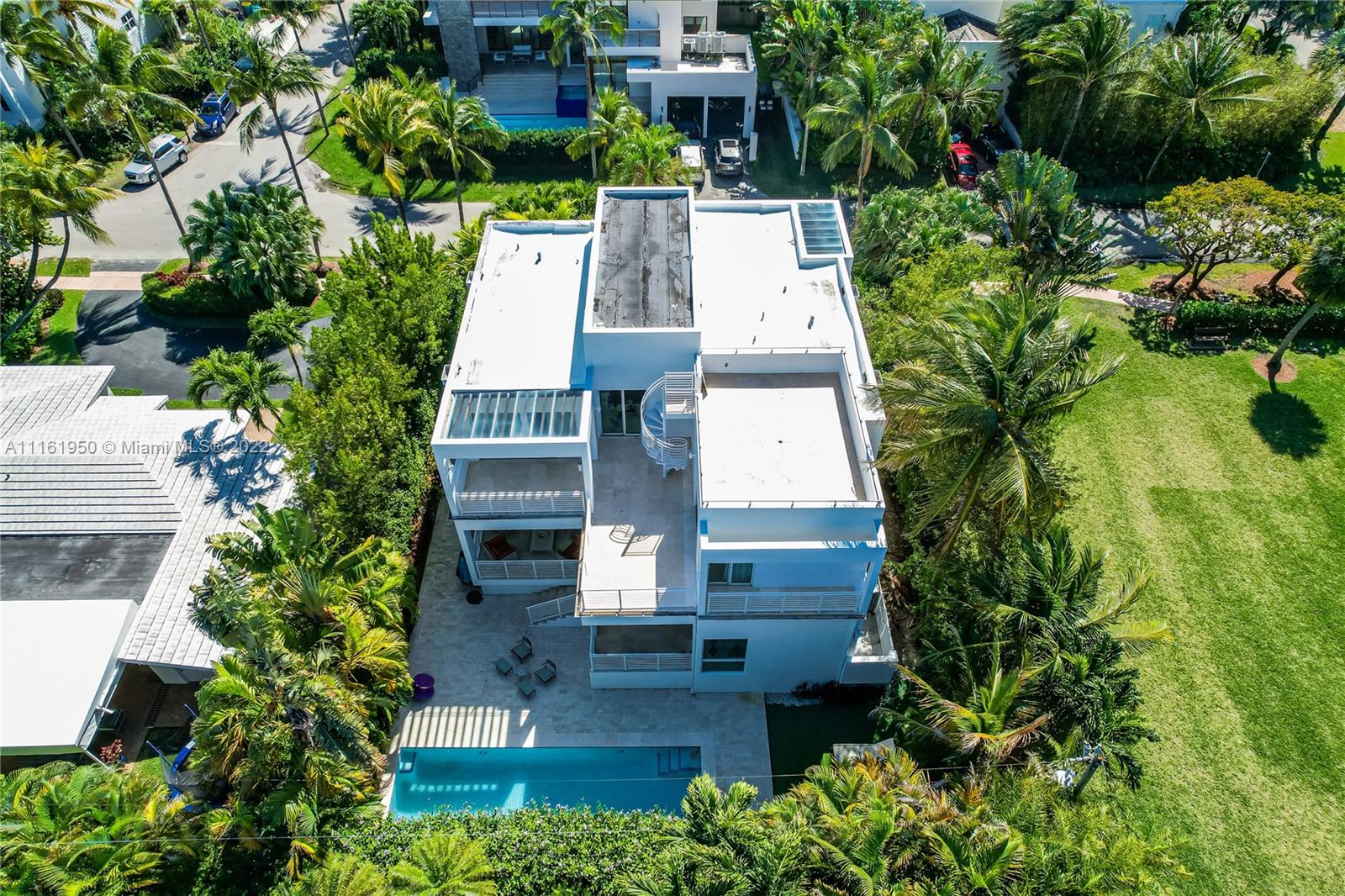 Beautiful modern home located in the heart of Key Biscayne just steps away from Harbor Drive and brand new Harbor Park. The property features 5 bedroom and 5.5 bathrooms. Very spacious and bright, ample living area overlooking a covered terrace on the pool. The large kitchen opens to a big dining area facing the garden that could be easily converted into a family room. Guest bedroom/home office with private bathroom located on the mezzanine. Separate home entrance from carport with lots of extra storage. On second level you will find the master suite and 3 other bedrooms with en suite bathrooms. A big terrace outside the master bedroom connects to the rooftop overlooking the key