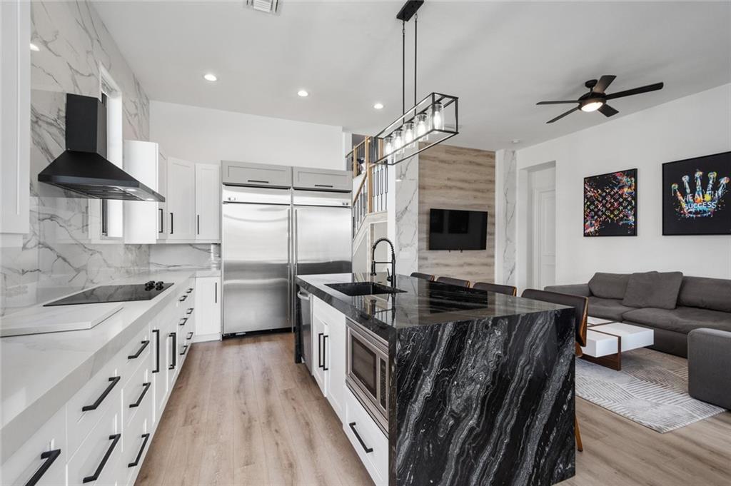 4 BED 3 BATH+PLAYROOM BED 5. OVERSIZED LOT, ON LAKE & CUL DE SAC. TOTALLY REDONE ZEN CONTEMPORARY WITH NEW PAINT ON THE EXTERIOR & INTERIOR, NEW GOURMET CHEFS' KITCHEN WATERFALL QUARTZ COUNTER TOPS, FEATURING CALACUTTA FULL BACKSPLSH, NEW 72” BUILT IN REFRIGERATOR, DOUBLE OVENS, COUNTER HEIGHT MICROWAVE OVEN, NEW OVERSIZED SINGLE BOWL SINK & INDUSTRIAL KITCHEN FAUCET, VENTED HOOD, 2 TONE WHITE & GRAY CABINETS SOFT CLOSE DOORS. NEW M BATH FLOATING VANITY SINKS, NEW FRAMLES SHOWER ENCLOSURE, QUARTZ WALLS, NEW FREE STANDING MODERN SPA TUB, RAIN HEAD SHOWER IN MASTER BATH. ALL GUEST BATHS REDONE WITH MODERN VANITIES, NEW QUARTZ. SHOWER ENCLOSURES. NEW CLOSET ORGANIZERS IN ALL BEDS. NEW FRONT LOAD WASHER & DRYER. OVER $300,000 IN NEW RENOVATIONS.