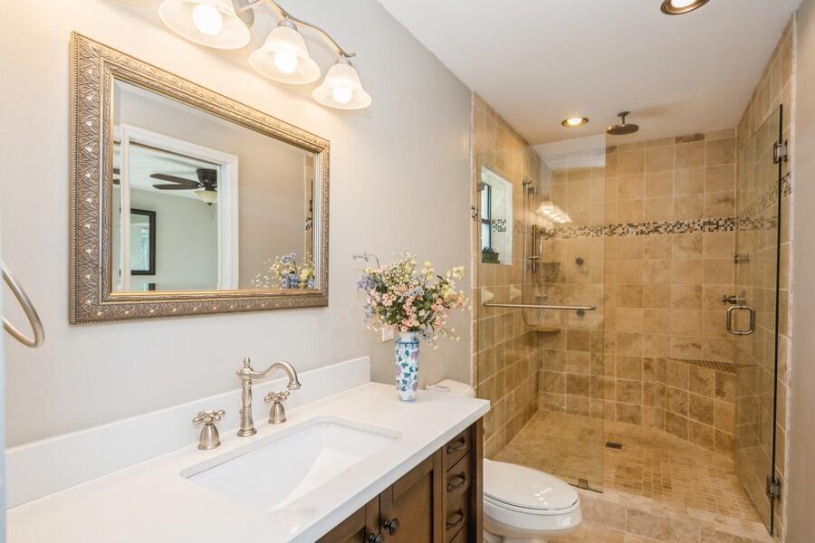 What a great find in the sought after, well maintained community of Ironwedge! With vaulted ceilings, skylights and a tiled open floor plan this home says welcome. An elegant wood burning fireplace flanked by modern plantation shutters that open onto one of the best tranquil lake views in the neighborhood. Spacious kitchen with solid wooden cabinets and granite counters with an extended bar top for happy hour or a quick breakfast. Beautifully updated bathrooms an oversized master bedroom with a vaulted ceiling, sitting area and small private balcony with lake views. Large garage with generous storage. Plenty of closet space and an attic. Centrally located to golf, tennis, community parks, shopping, fine restaurants and A+ schools. 15 minutes to the beach. Furniture negotiable.