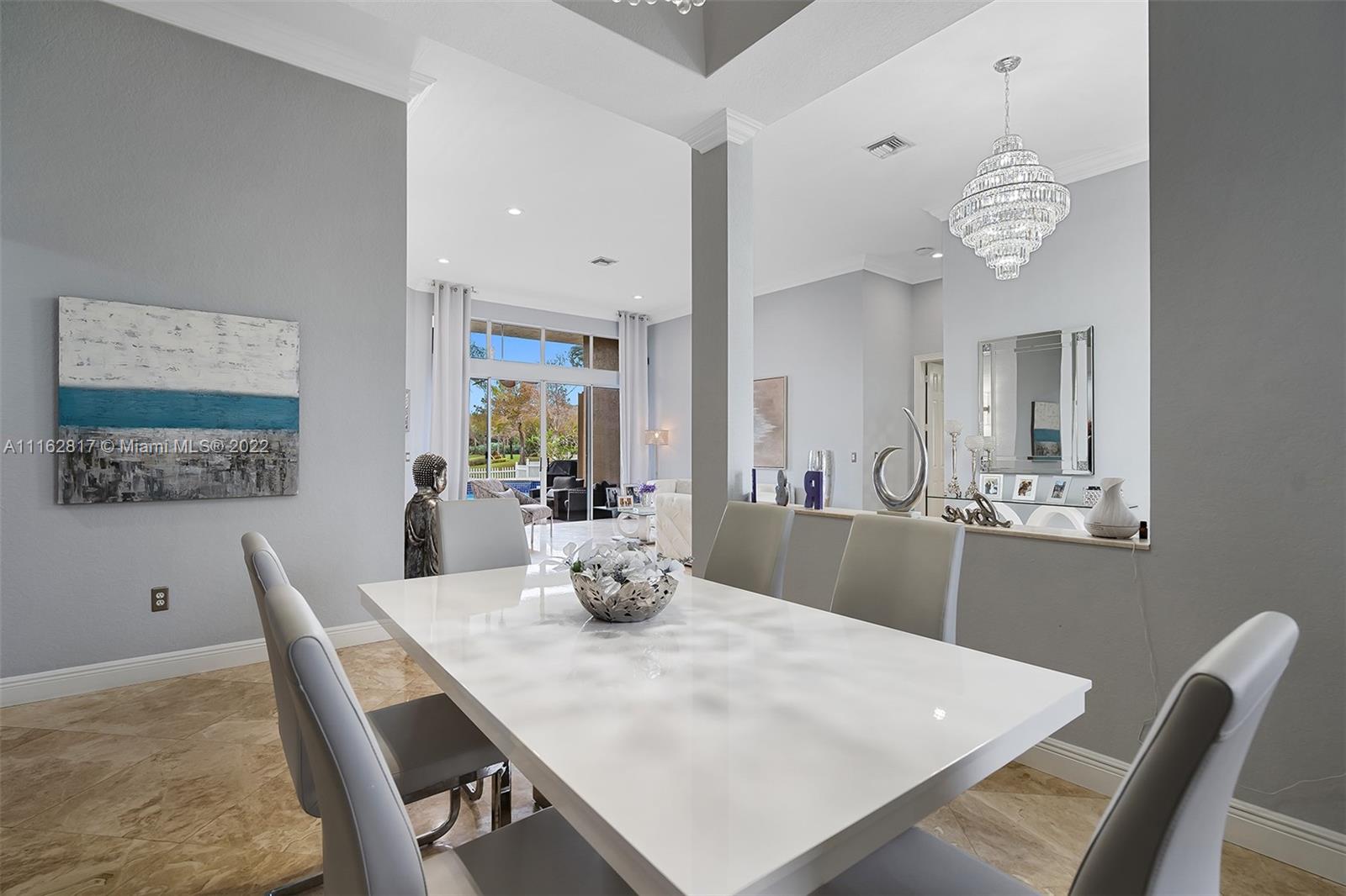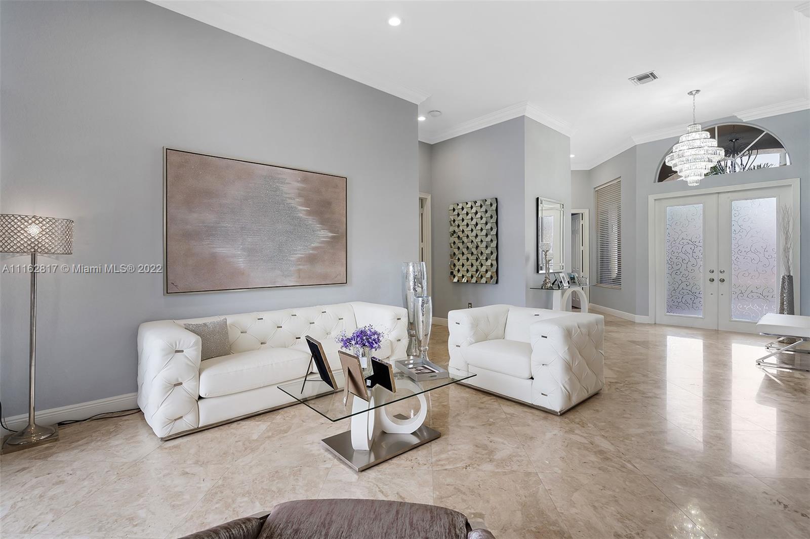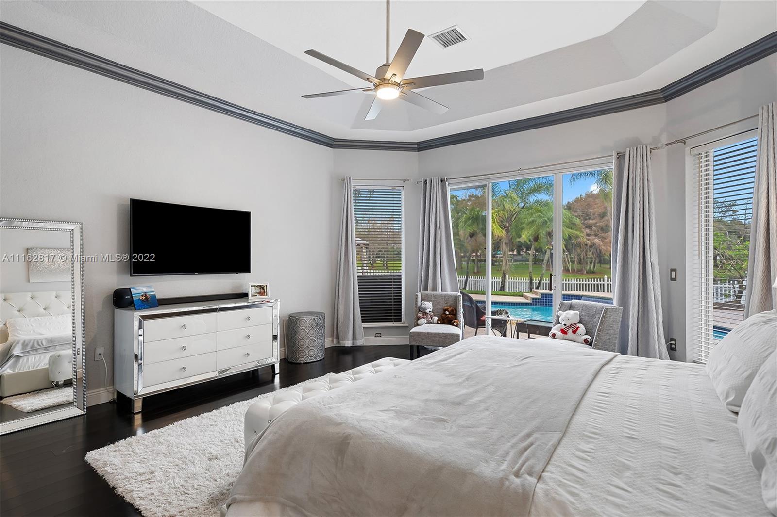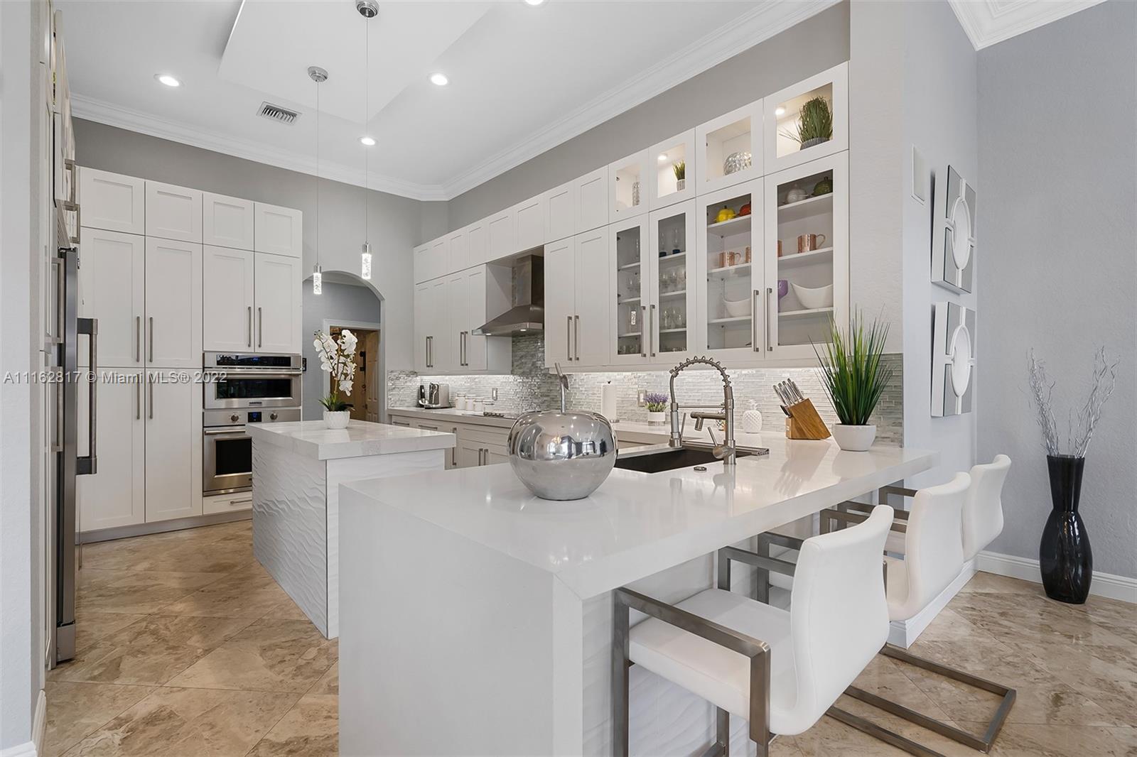 This is the one! Walk up to the covered grand entrance and open the doors to this stunning 5 bedroom, 4 bath waterfront pool home in Meadow Run on over 1/3-acre lot on cul-de-sac street. Marble floors throughout living areas, large master suite with beautiful bamboo floors and his and her walk-in closets, amazing updated white custom kitchen with quartz countertops, accordion shutters. Large patio area perfect for entertaining. Enjoy the serene water and park views from the master suite, living areas and kitchen. Meadow Run is a guard gated community, centrally located, close to shopping and major highways, top rated Parkland schools. See this beautiful home before it's gone!