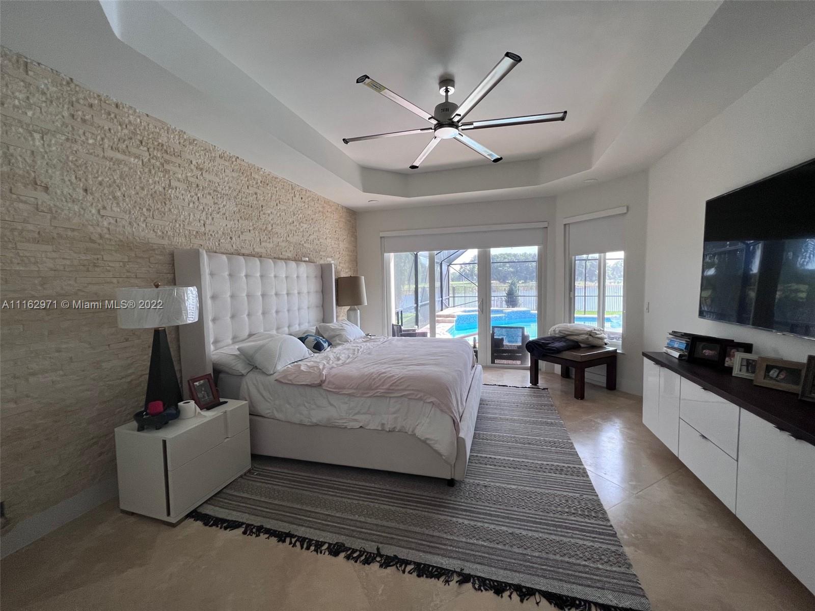 Exceptionally modern 5-3 One-story home with a 3 car garage, screened pool with fabulous lake and golf course view in exclusive gated Weston Hills CC. 12-15 feet volume ceilings, custom wood kitchen cabinets, stainless steel appliances, Calcutta countertops, and marble floors throughout. The 5th room is a den, which can be used as a small bedroom. Over-sized screened pool deck & heated diamond Brite pool, spa, and waterfall overlooking the lake and golf course.