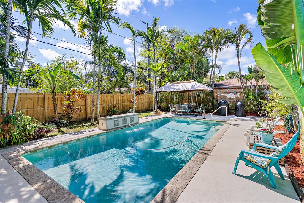 Charming Florida Living in the Historic District of Vedado.Lush Cozy home in peaceful-family friendly location. Quiet Vedado Park with beautiful, mature banyan trees maintained by City of West Palm Beach that includes playground, tennis court, basketball court and ball field.Neighborhood is nestled in corner of Parker and southern backing up to the Palm Beach Atlantic ballfields. Only neighborhood traffic. Brand new a/c and roof. Private fenced yard, with lush landscape and screened in patio overlooking pool with fountain. Pool resurfaced two years ago along with new pool pump and skimmer last year. Highly desired location, in the heart of West Palm Beach Conveniently close to I-95 and PBIAMinutes to local beaches.