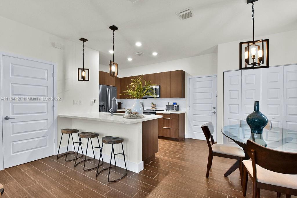 Contemporary 3/2.5 in the heart of Downtown Doral in Urbana! Corner unit located at the end of Paseo with 2 car garage. Property features upgraded flooring, and kitchen as well as impact windows and doors, modern finishes throughout the unit. Impeccable unit. Clubhouse features resort style pool, state of the art gym, basketball court, kids splash pad, private game rooms, and much more.