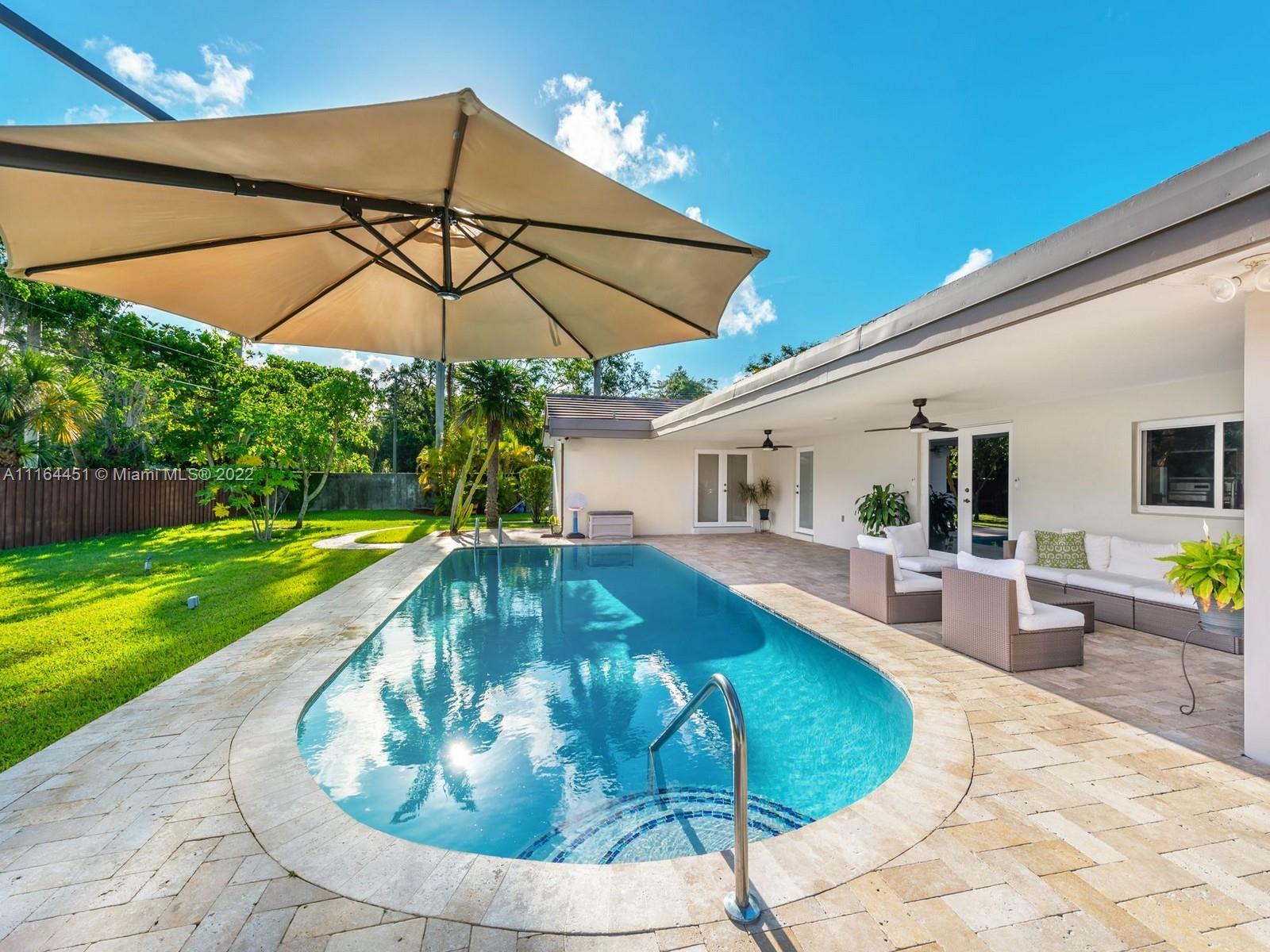 Spectacular one story fully-equipped 5 bed, 3.5 bath home, close to the best schools and parks Pinecrest has to offer. Featuring sleek European kitchen with high-end appliances designed with concealed cabinetry. Matte stone-colored floors throughout, for a warm yet modern timeless appeal. Family great room includes a fireplace and entertainment center. Control 4 system for audio, cameras, alarm and a/c control. Speakers in all social areas including patio. All impact windows. Spacious covered patio, stone pool deck. Fenced along with luscious green hedges great for privacy. Two car garage and a flat tile roof. Ready for move in.