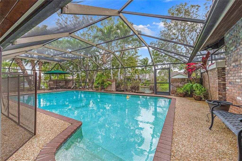 Rarely available, nestled in the exclusive neighborhood of Glen Isles (estates section of Cypress Glen), this beautiful home sits on an oversized, waterfront lot! Outstanding upgrades and features include: open floor plan with vaulted ceilings; gorgeous, double-sided fireplace in living room & family room; eat-in kitchen with center island open to the family room; large bedrooms (closet can be added to office/4th bedroom); beautiful master suite with spa-like bathroom (wood ceilings, skylights, etc.); walk-in closets; accordion hurricane shutters; cabana bathroom opens to the large, covered patio; screen-enclosed, oversized pool and absolutely stunning water views! This home exudes charm and is unlike any other you'll see! No HOA! Conveniently located near shopping, dining and more!