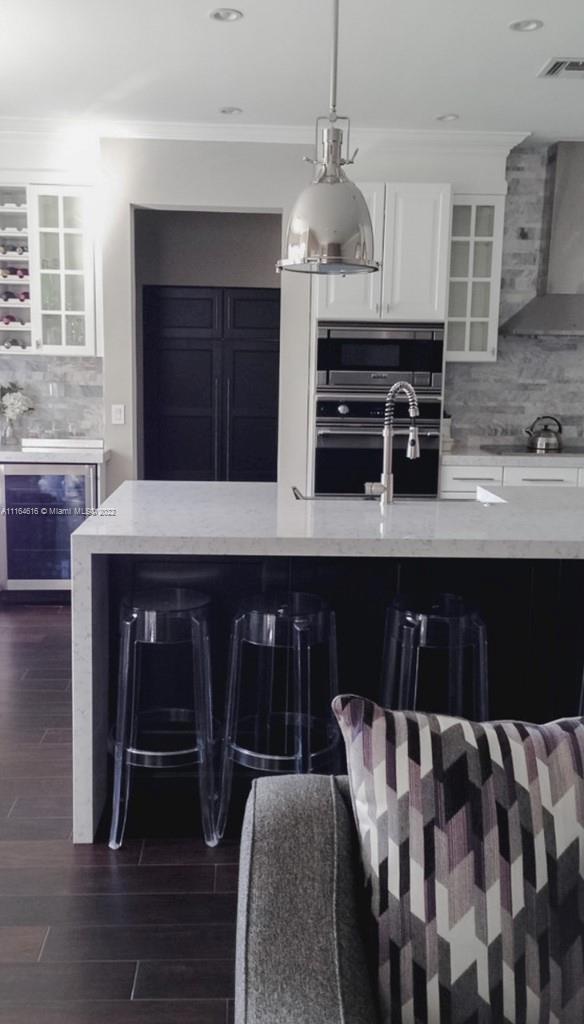 Gorgeous 6/4 completely remodeled designer home with fountain lakefront views in the highly sought after Silver Shores community w/incredible nightly views of cotton candy sunsets. Brand new roof, fresh exterior paint, large covered pergola w/ tiled floors, custom closets come w/ lifetime warranty. Garage w/ epoxy flooring. High end Sub-Zero refridgerator, Viking appliances, Quartz countertop, waterfall island, marble backsplace, Restoration Hardware light fixtures. Hurricane proof French doors and bay window. Large oversize master with sitting area, custom closet, his and hers bathroom! 2 bedrooms w/ full bath on 1st floor w/ its own entrance. Perfect for in-law/guest quarter. Gated 24/7 security w/guard, resort style clubhouse. Won't last long!
