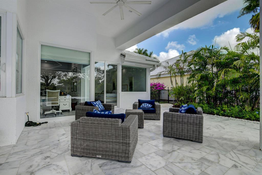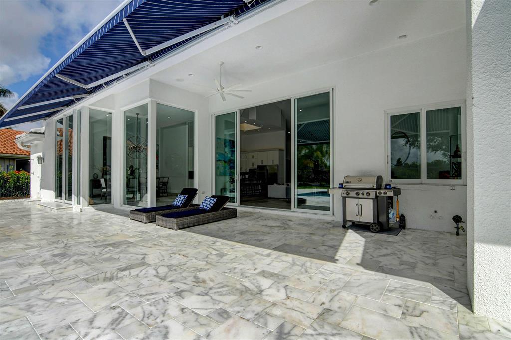 Spectacular! Like new construction! Completely renovated - high end - clean neutral tones. Impact windows and doors, high ceilings. no steps. Quiet perfection on almost half an acre, overlooking serene golf course. Spacious new chefs kitchen -extra large fridge, induction stove, island. Separate office (could be 4th bedroom) Split bedrooms all ensuite, large laundry room, open concept for entertaining & easy living. Gorgeous huge backyard -new saltwater pool, patio, irrigation, landscaping, driveway, covered & open patio & grassy yard! New furniture negotiable. Bocaire CC mandatory membership - 239 homes boasts resort style amenities, championship golf course, tennis, fitness, high end dining & friendly community. A rated schools, close to beach, restaurants, shopping. Won't last!