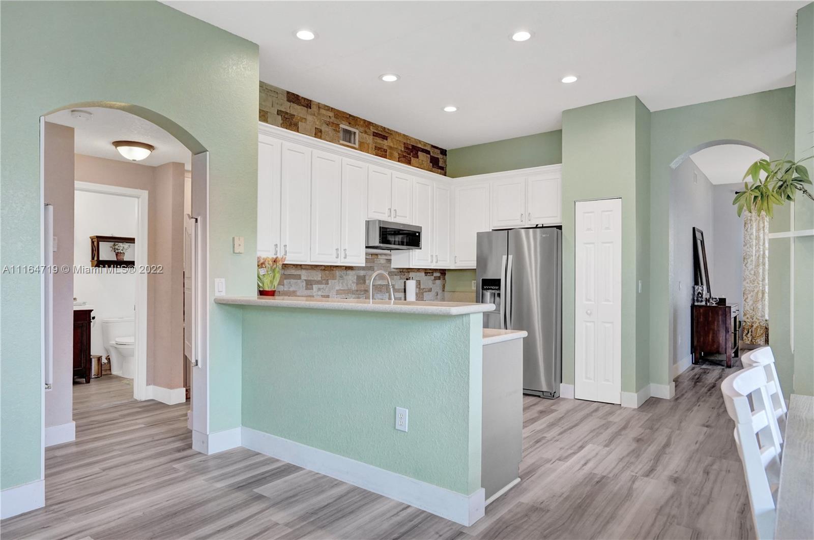Gorgeous 4 bed/3 bath with a great floor plan in the desired neighborhood of Pembroke Pines. This home has a spacious kitchen that opens up to the large family room, renovated bathrooms, new laminate flooring, air handler and water heater. Huge master bedroom with tray ceiling, decorative custom wall treatment and closet has built in shelves. Private fenced patio with room for a pool *** Residents Enjoy: Gym, Aerobics, Sauna, Tennis, Racquetball, Basketball, Soccer, Volleyball, Pools, Jacuzzis, Picnic Areas & Playgrounds. ***HOA Includes: Security, Landscaping, Cable, Internet & Alarm***. Convenient to Shopping, Dining, Travel and “A” Rated Schools and plenty of green space for jogging and walking in a family friendly environment.