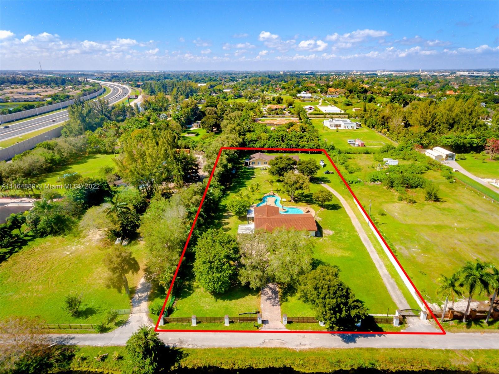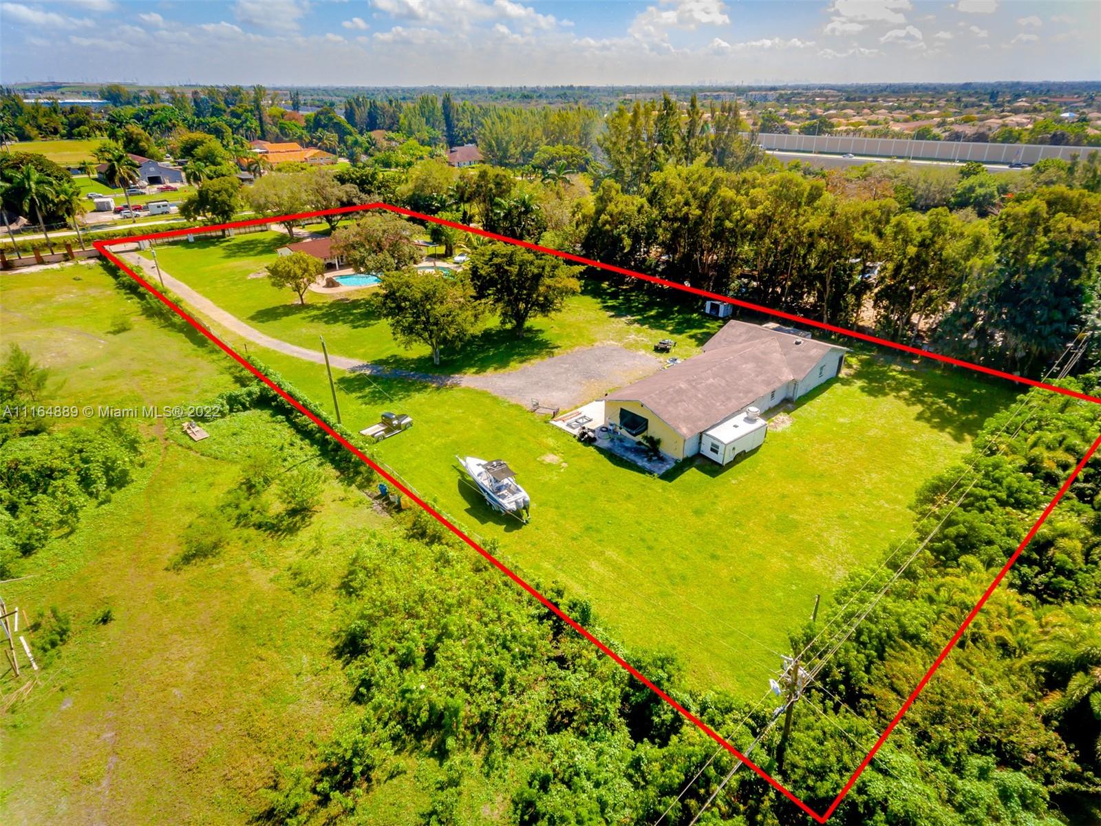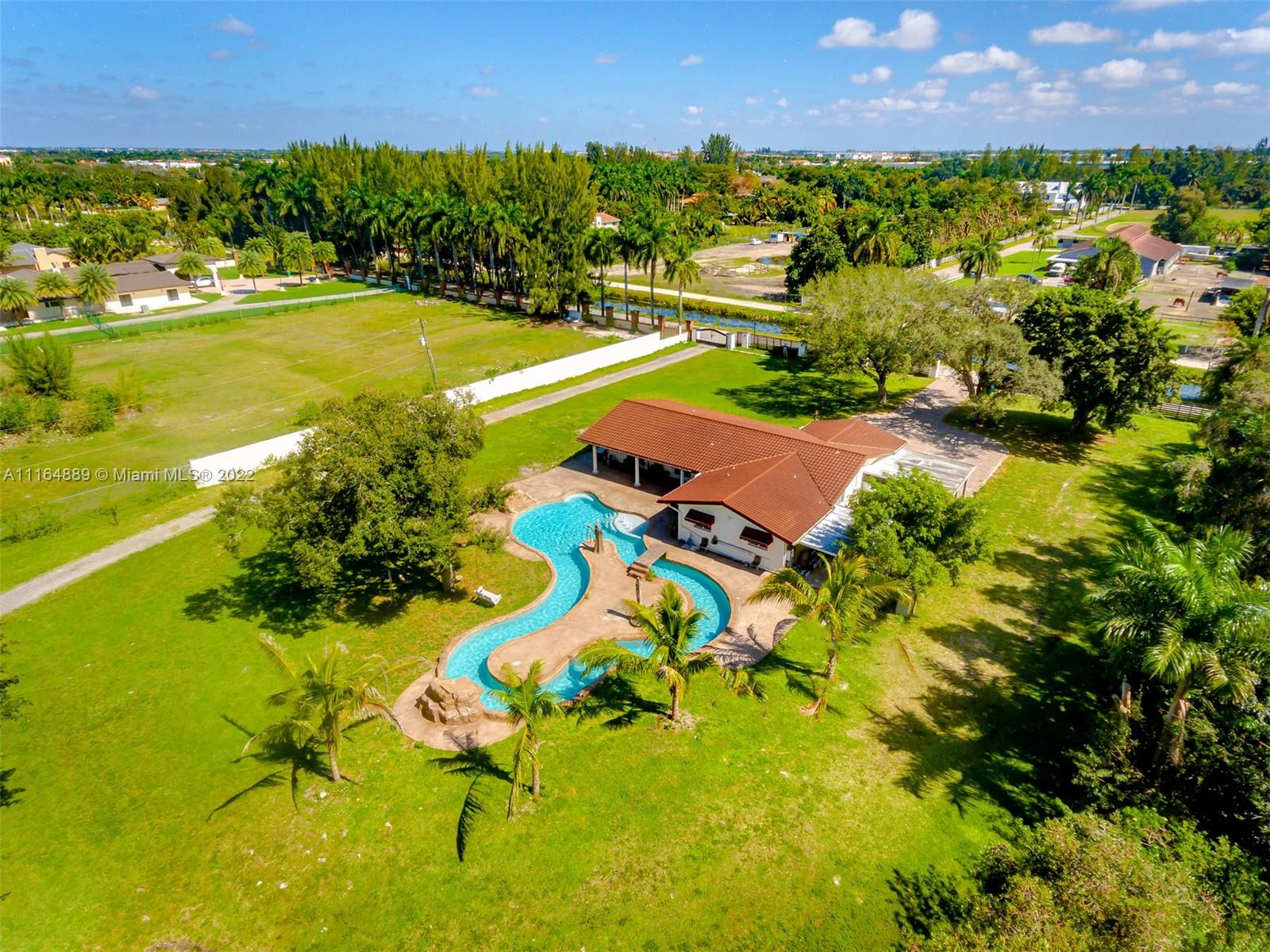 Welcome to PAradise! Beautiful 5/3 bedrooms split plan on 2.5 acres Ranch style home with pool. New Metal roof , Impact windows and doors! Custom Swimming Pool (Over $100k) with Lazy river and waterfalls and light show! LED Recessed lighting, Lovely wood terrace; perfect for entertaining! Rectified porcelain floors. Updatesd bathrooms with frameless glass doors, Detached Garage can hold up to 9 cars; or can be converted into a HUGE Guest House/ In-Law Quarters or you can keep as-is for the toys! Horses Permited; Bring Your Horses, Golf Carts, And RV'S! NO ASSOCIATION.
