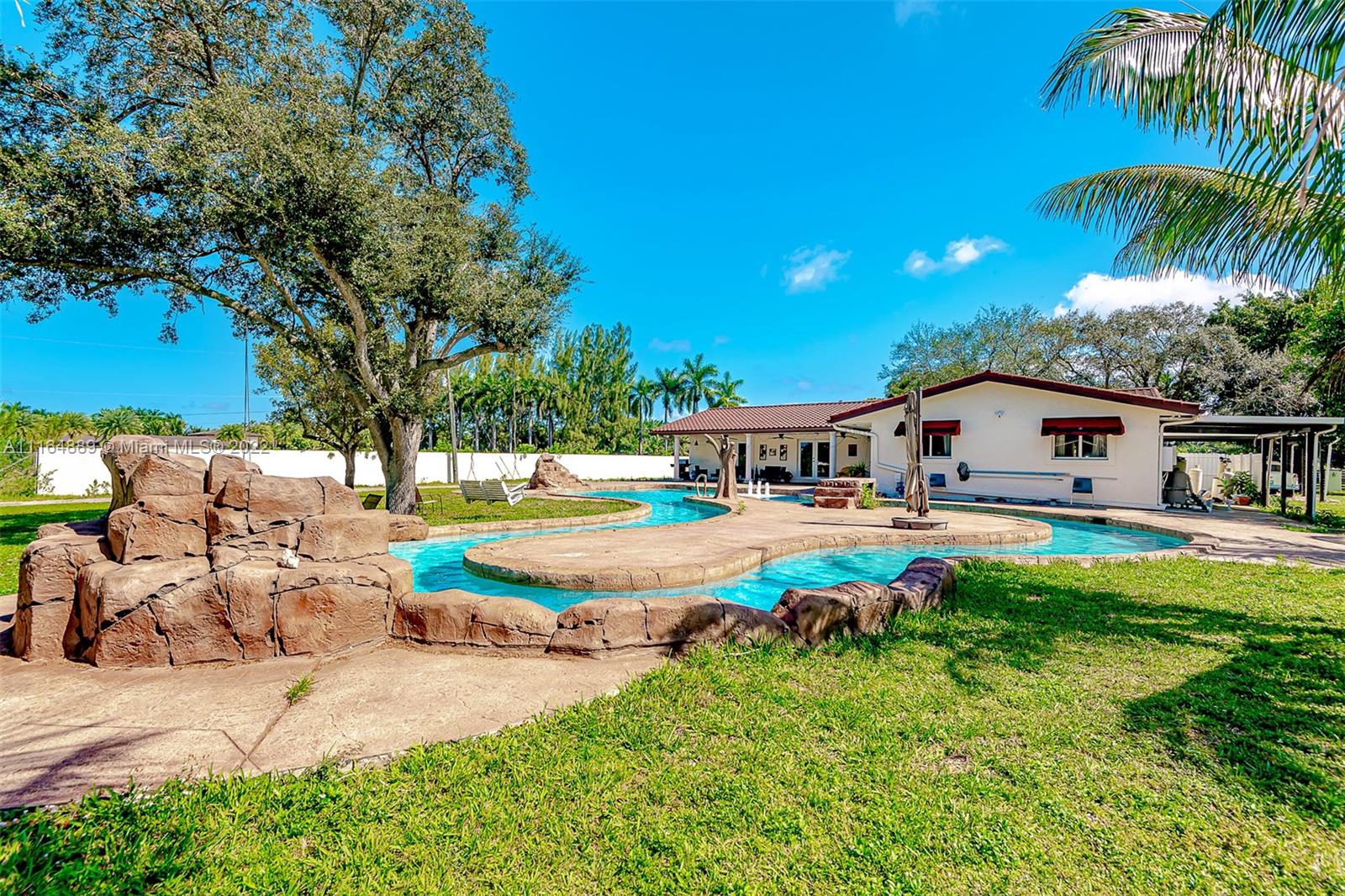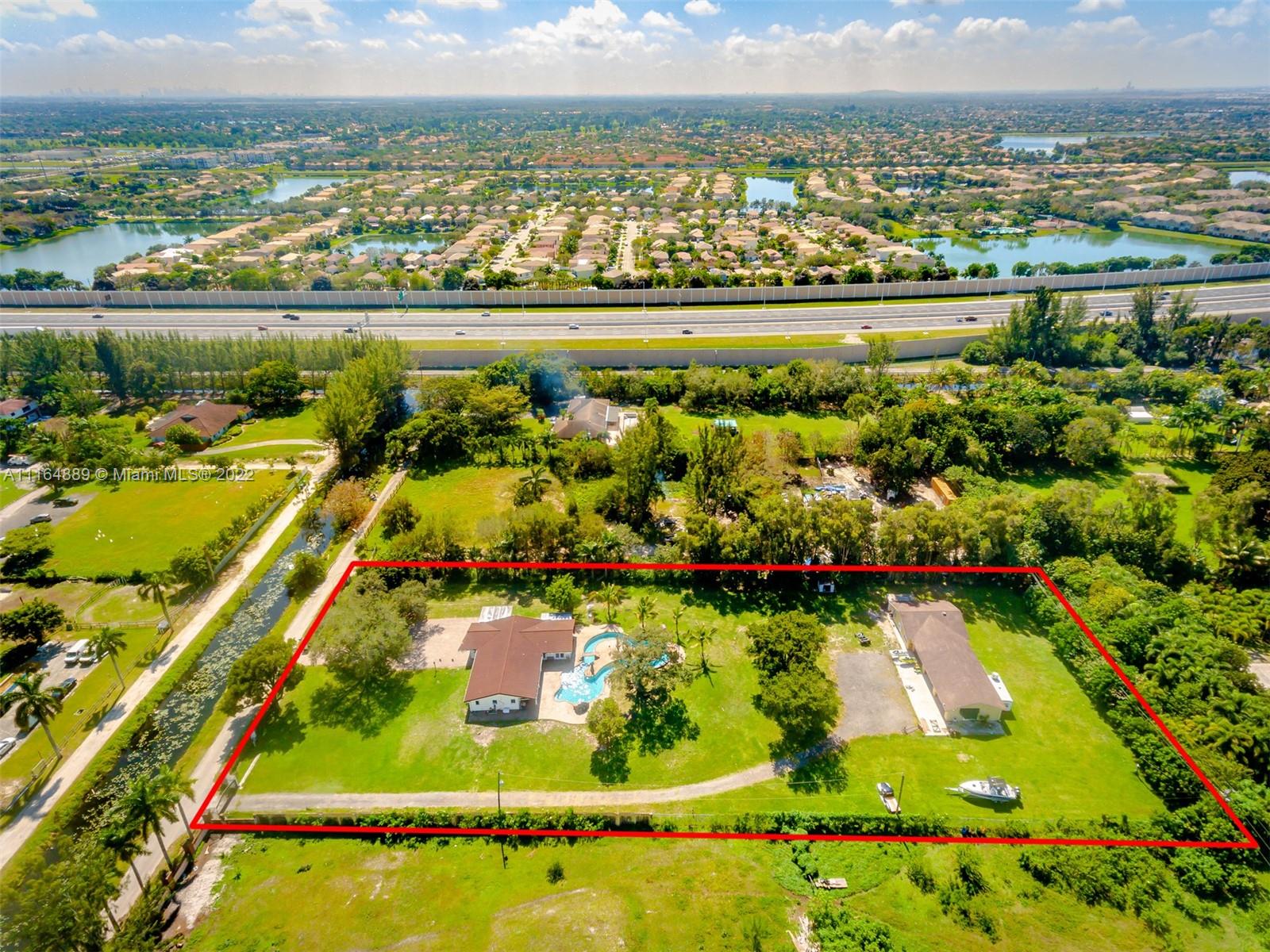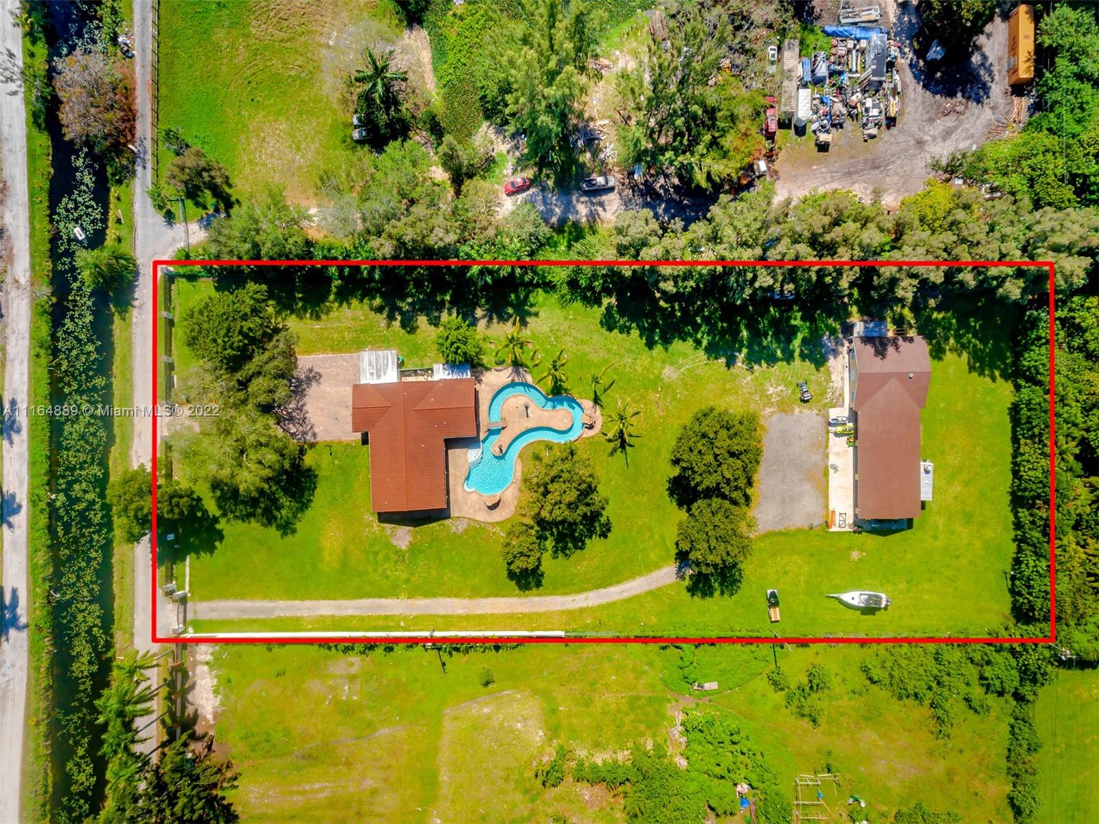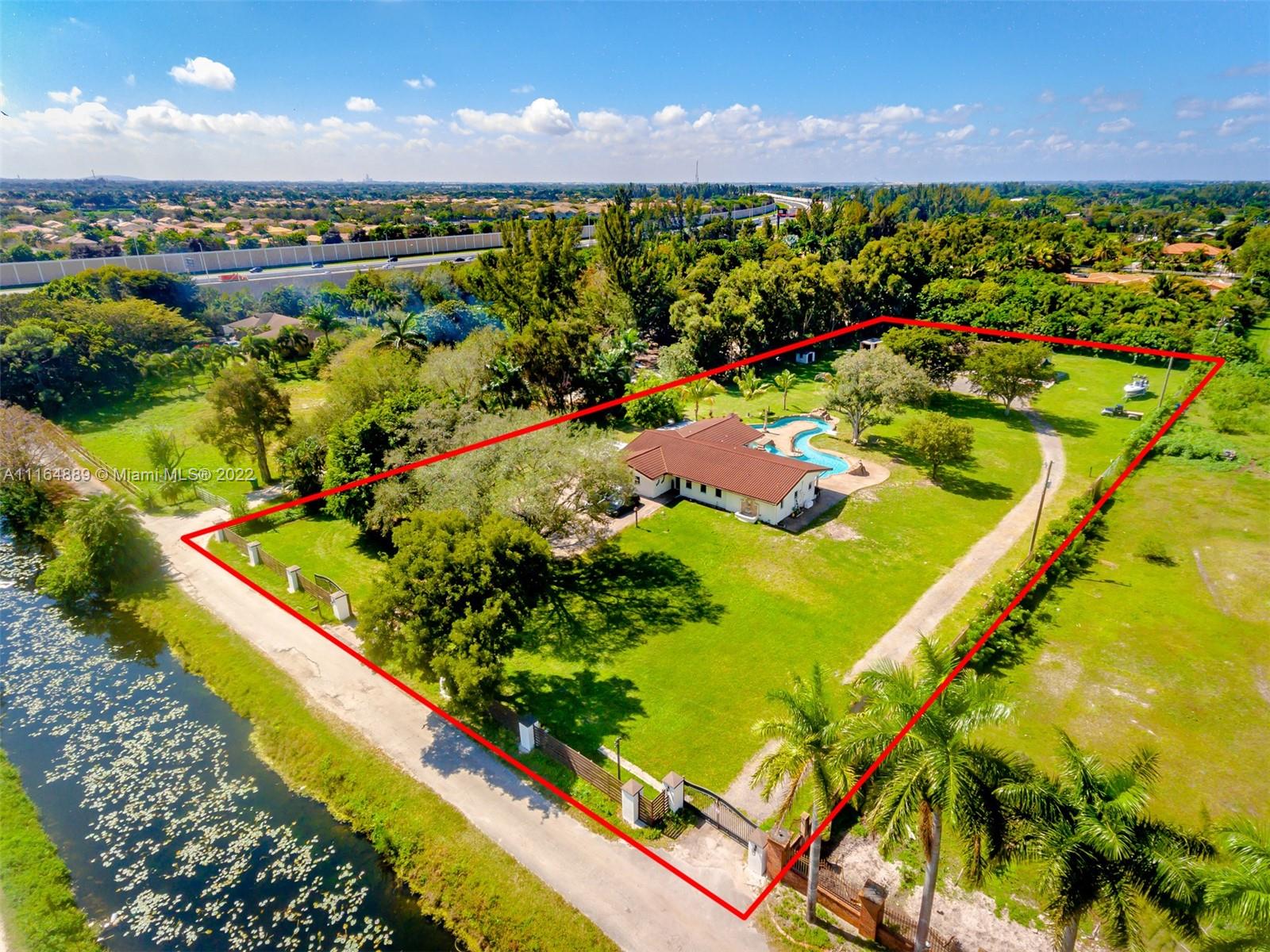 Welcome to PAradise! Beautiful 5/3 bedrooms split plan on 2.5 acres Ranch style home with pool. New Metal roof , Impact windows and doors! Custom Swimming Pool (Over $100k) with Lazy river and waterfalls and light show! LED Recessed lighting, Lovely wood terrace; perfect for entertaining! Rectified porcelain floors. Updatesd bathrooms with frameless glass doors, Detached Garage can hold up to 9 cars; or can be converted into a HUGE Guest House/ In-Law Quarters or you can keep as-is for the toys! Horses Permited; Bring Your Horses, Golf Carts, And RV'S! NO ASSOCIATION.