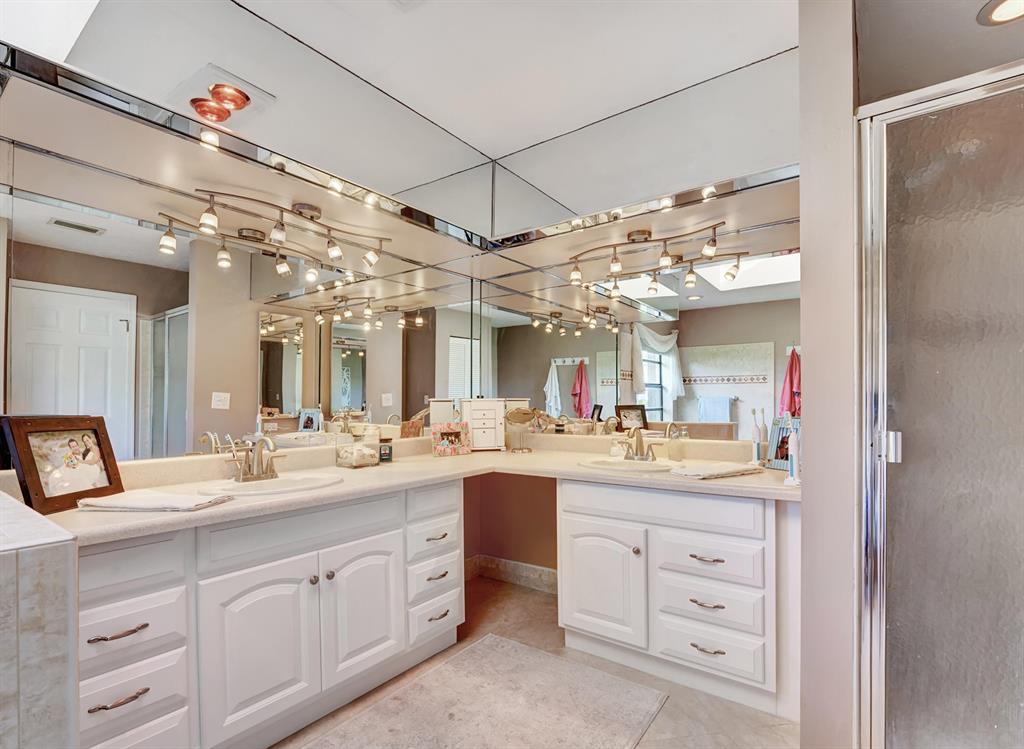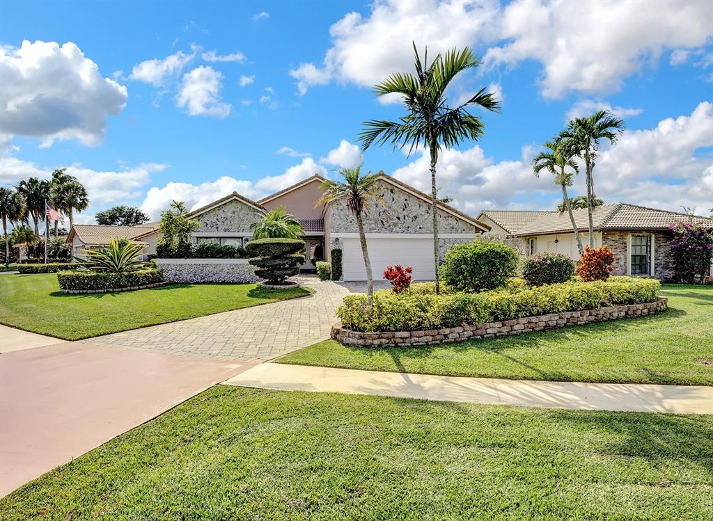 Welcome home to this gorgeous and rare 3 bedroom, 3.1 bath single family lakefront home located in beautiful Boca Greens Country Club. Close to some of Boca's finest attractions and A rated schools, this 24/7 manned gated community offers something for the whole family, from dining to the golf course. This spacious corner lot home features an open split floor plan with 2 master bedrooms, a fully updated kitchen with top of the line appliances, updated bathrooms, soaring ceilings and tile throughout. Vaulted ceiling, living room and dining room with a wet bar hookup, laundry room, and a bonus room, perfect for a den, play/exercise room or kitchen expansion. Hurricane Shutters w/ a generator hook up for the house.