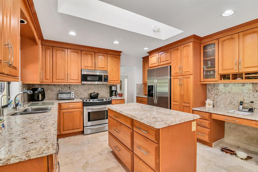 Fully renovated home with pool in the centrally located, yet private and serene community of Estancia. This home is perfectly appointed on a cul de sac and sits on an almost 1/2 acre lot, with over 5,000 sqft of living space. The upgraded exterior features a beautiful stone facade, finished porches, designer landscapes & oversized 2-car garage. Inside, you will be greeted by open concept living with high end Saturnia marble & Spanish porcelain floors throughout, centered around a dramatic,18ft natural stone fireplace, cathedral ceilings, central bar & chef's kitchen. The grand, master suite with pool view features dual walk-in closets and expansive toto bathroom. The remaining bedrooms are oversized as well, feature walk in closets and designer baths.
