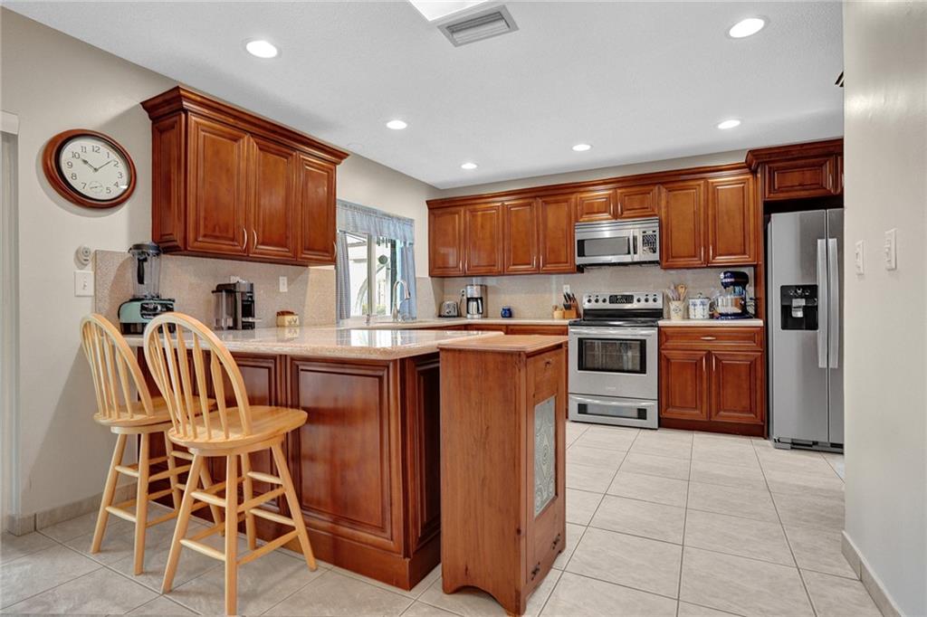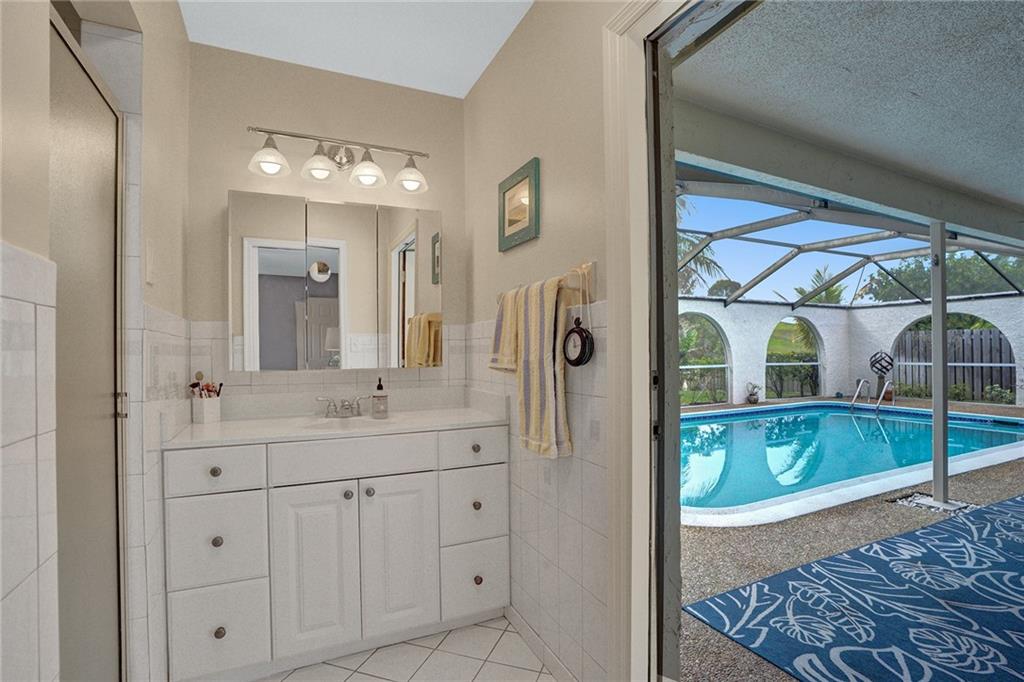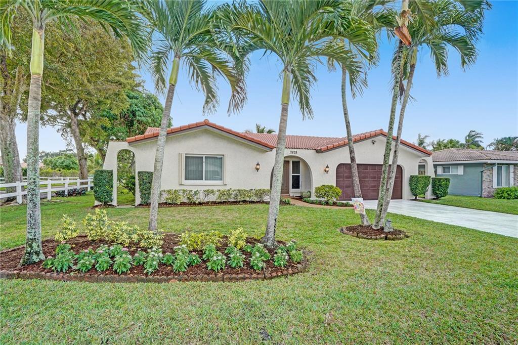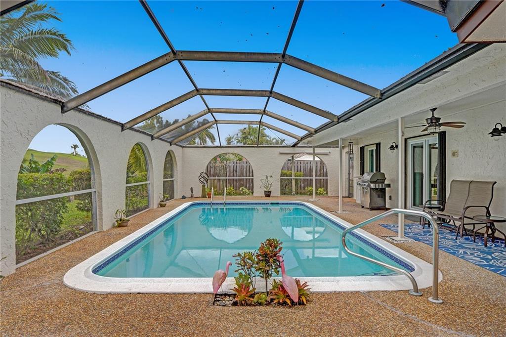 Welcome Home! Freshly painted inside/outside this 3 bedroom/2 bath home offers a spacious floorplan with lovely views of the screened-in heated pool and garden, thru new impact sliders and eat-in gourmet kitchen. The patio overlooks a serene canal, fruit trees, and Three Friends Park. Home features all Impact windows/doors with shutters, 2017 AC, 2021 Refrigerator, 2015 Electric upgrade, 2015 new Skylights & Flat Roof (2021 resealing done), 2002 Barrel tile roof just inspected and new fascia added, 2019 Pool Pump, 2017 Pool Heater. Sparkling tile floors throughout, large poolside Primary bedroom & bath with custom walk-in closet, large laundry room w/ 2016 Washer/Dryer, and 2-car garage complete the picture in this sought after community of Westchester in Coral Springs CC West. No HOA.