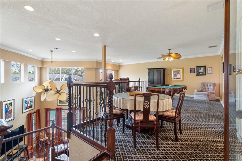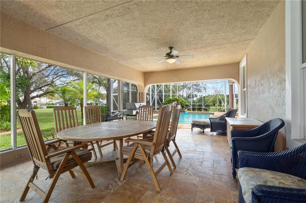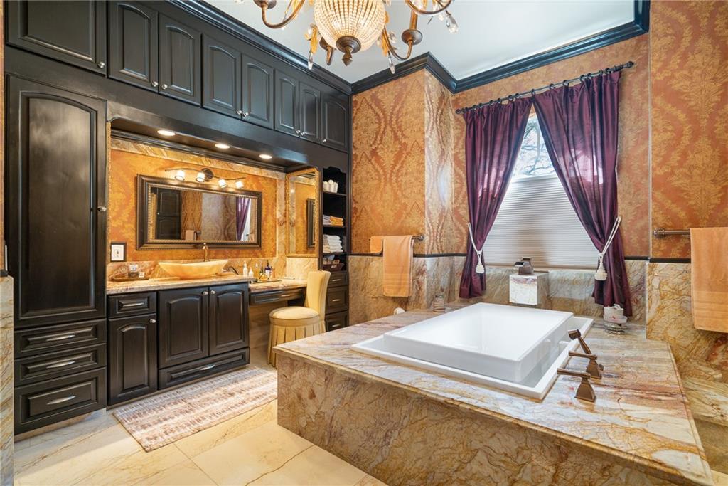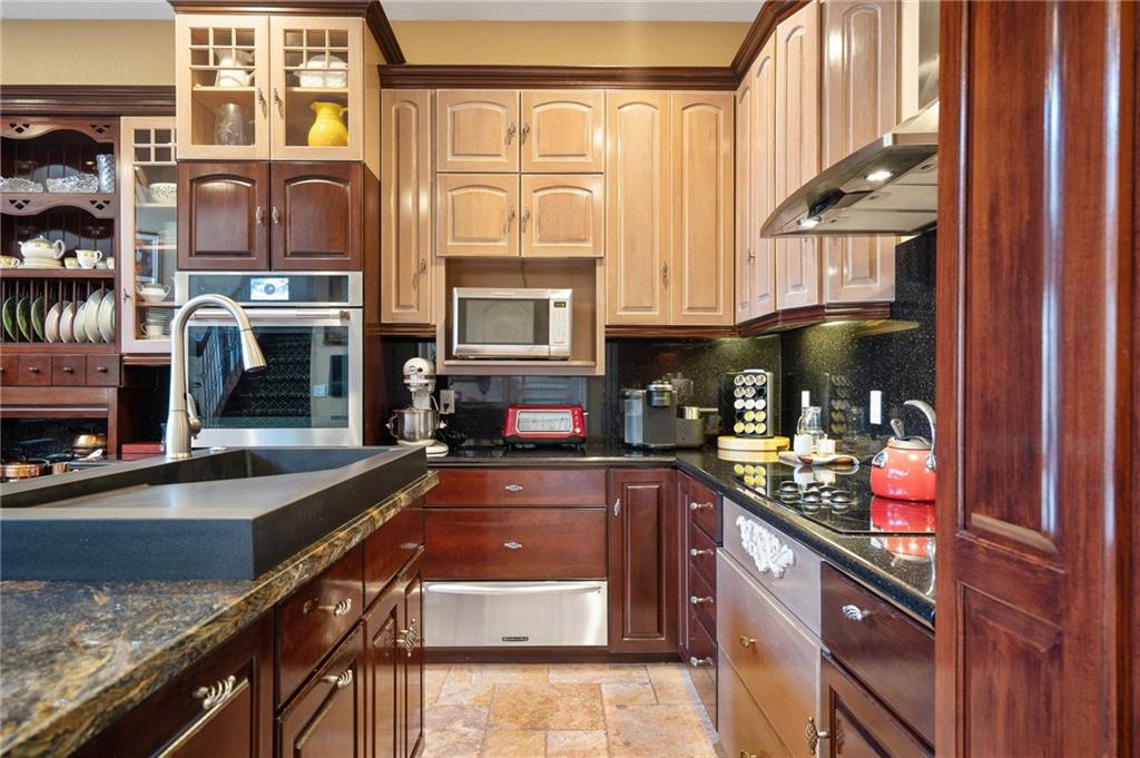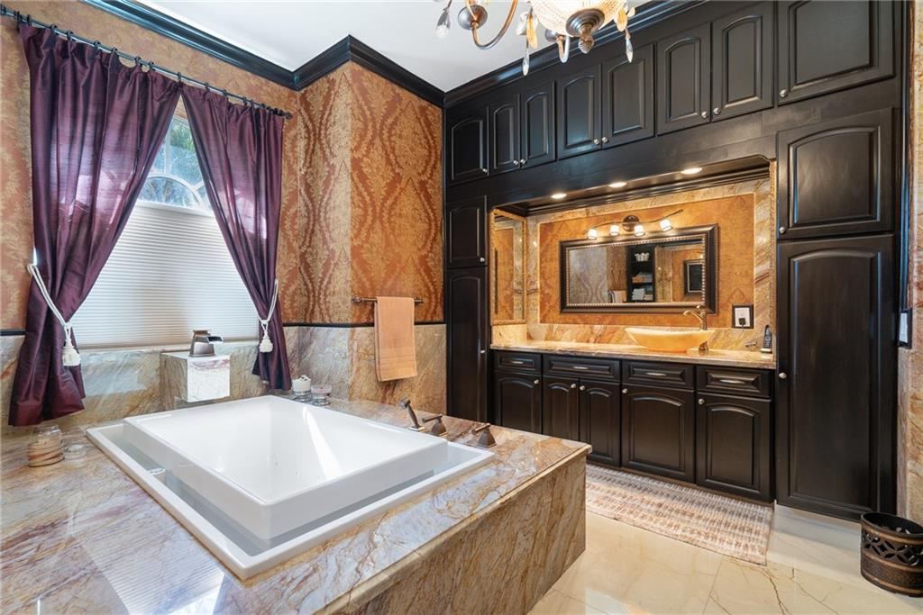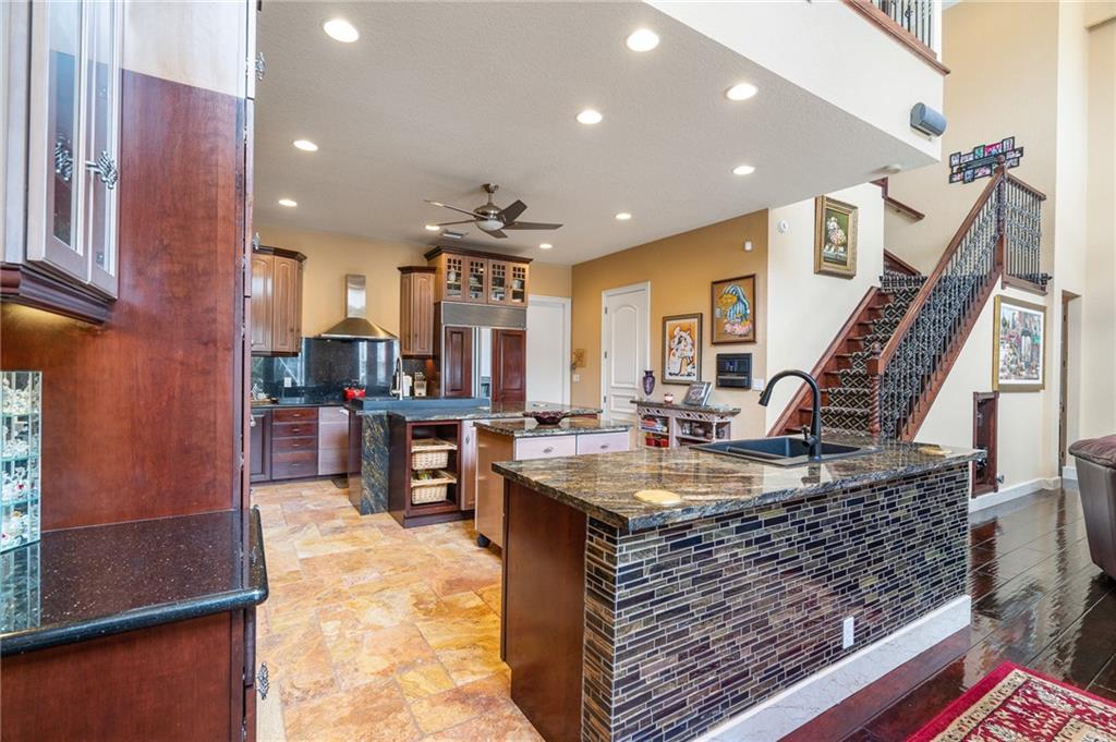 This ½ acre+ property sits on a prime lot, the front overlooking the 15th green and the back overlooking the 12th tee box and fairway of the Eagle Trace Golf Course. It only has neighbors on one side, offering a lot of privacy. The 15+ car driveways and rear patio have been redone in marble travertine. Walk through the beautiful carved wood hurricane-rated doors into a home that has been put together with love since being built as an entertainment paradise. Ceilings downstairs range from 22-30’ high. The unique master bath offers a soaking tub with a spillover feature. It was completely renovated 7 years ago with marble throughout. The kitchen boasts 2 sinks, JennAir double oven, Sub-Zero refrigerator, warming drawer, and beautiful granite countertops.