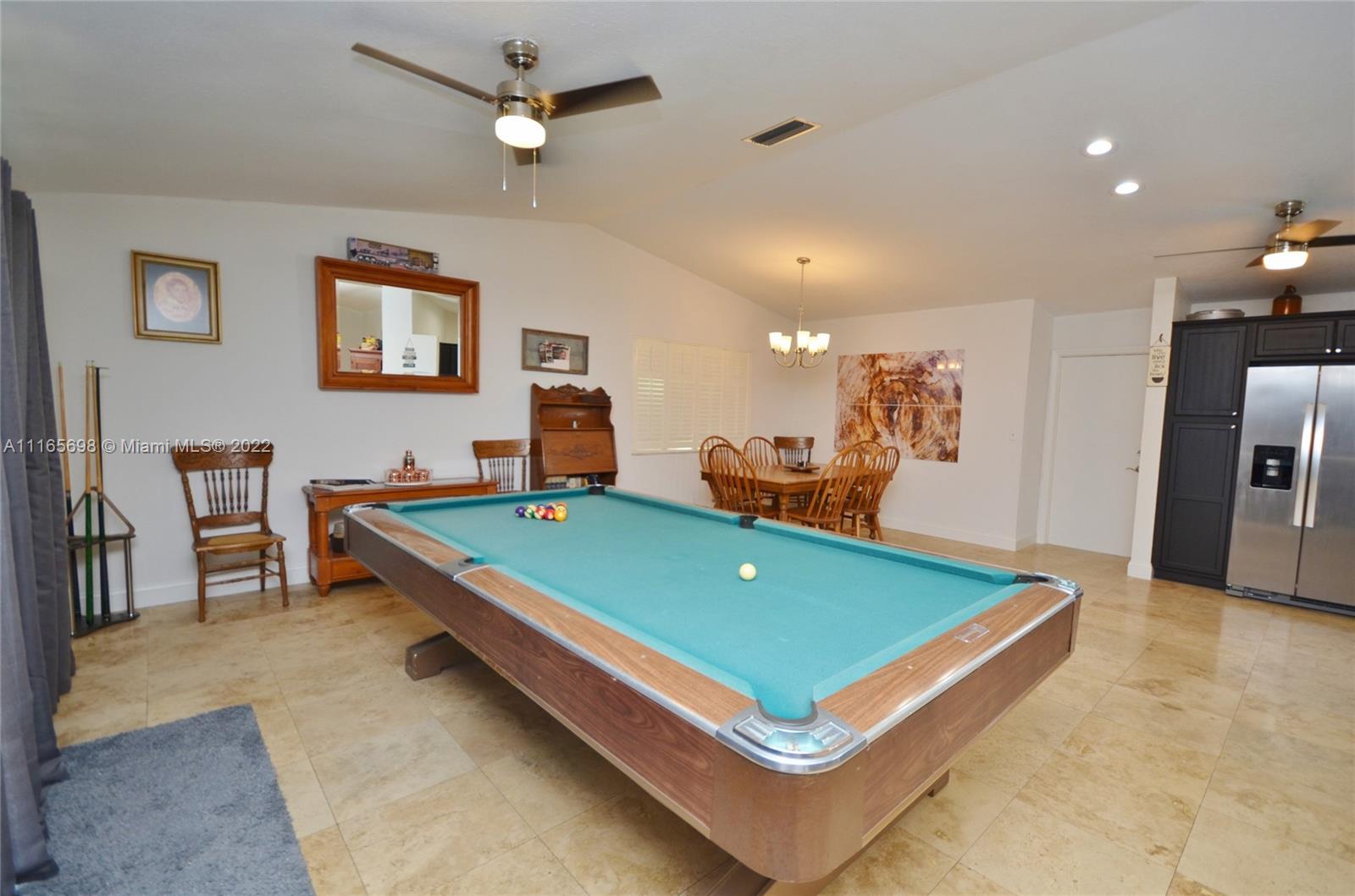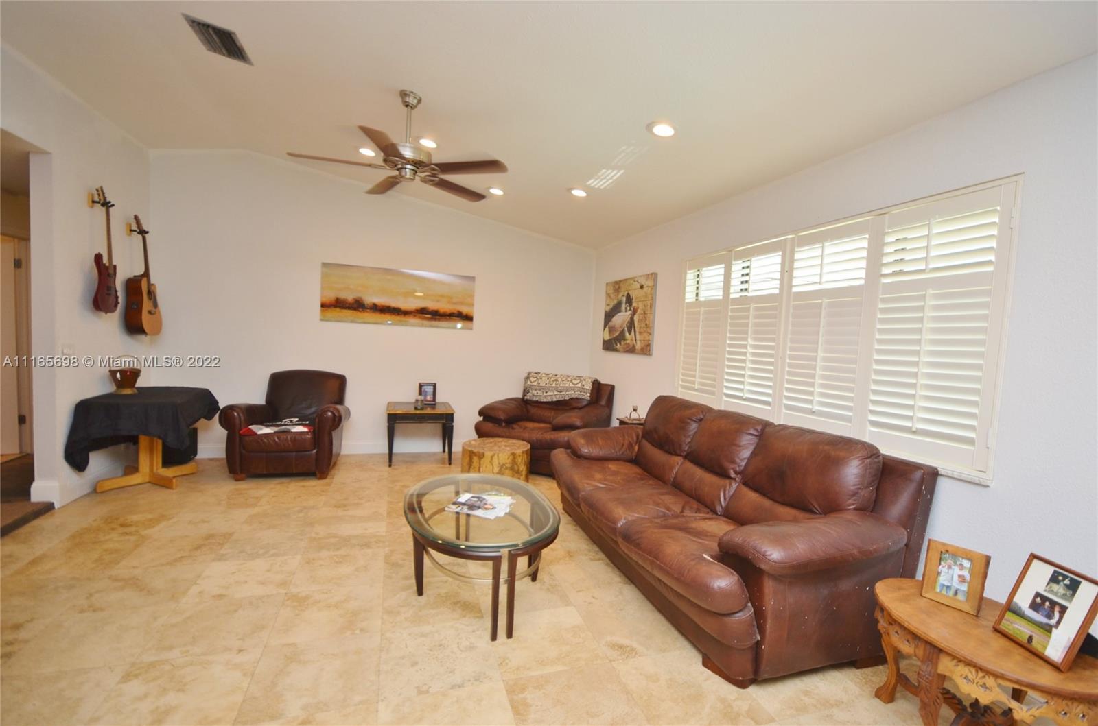 "Beautiful home featuring screened in pool with large patio, perfect for entertaining"! Much desired "Open Floor Plan", Kitchen, dining area, living room and family room all open with continuous Travertine Marble flooring. Brand new kitchen, only 3 weeks old, Stainless Steel Appliances. All 3 bedrooms are spacious with wood flooring. Bonus room could be office, craft room or playroom. Exterior and Interior newly painted. Circular drive, Hurricane Resistant double Front door. Storm shutters for all other windows.